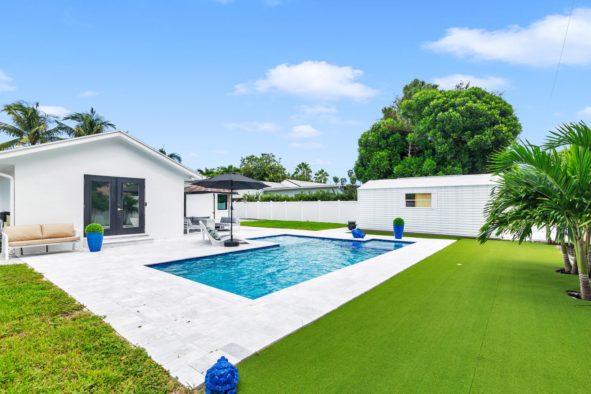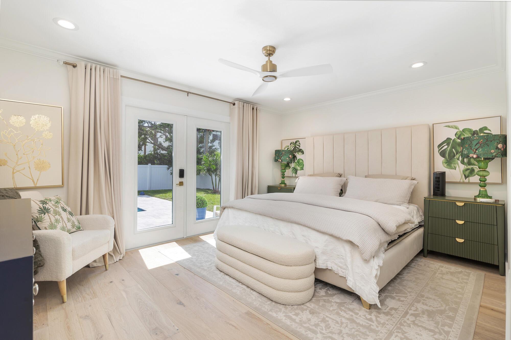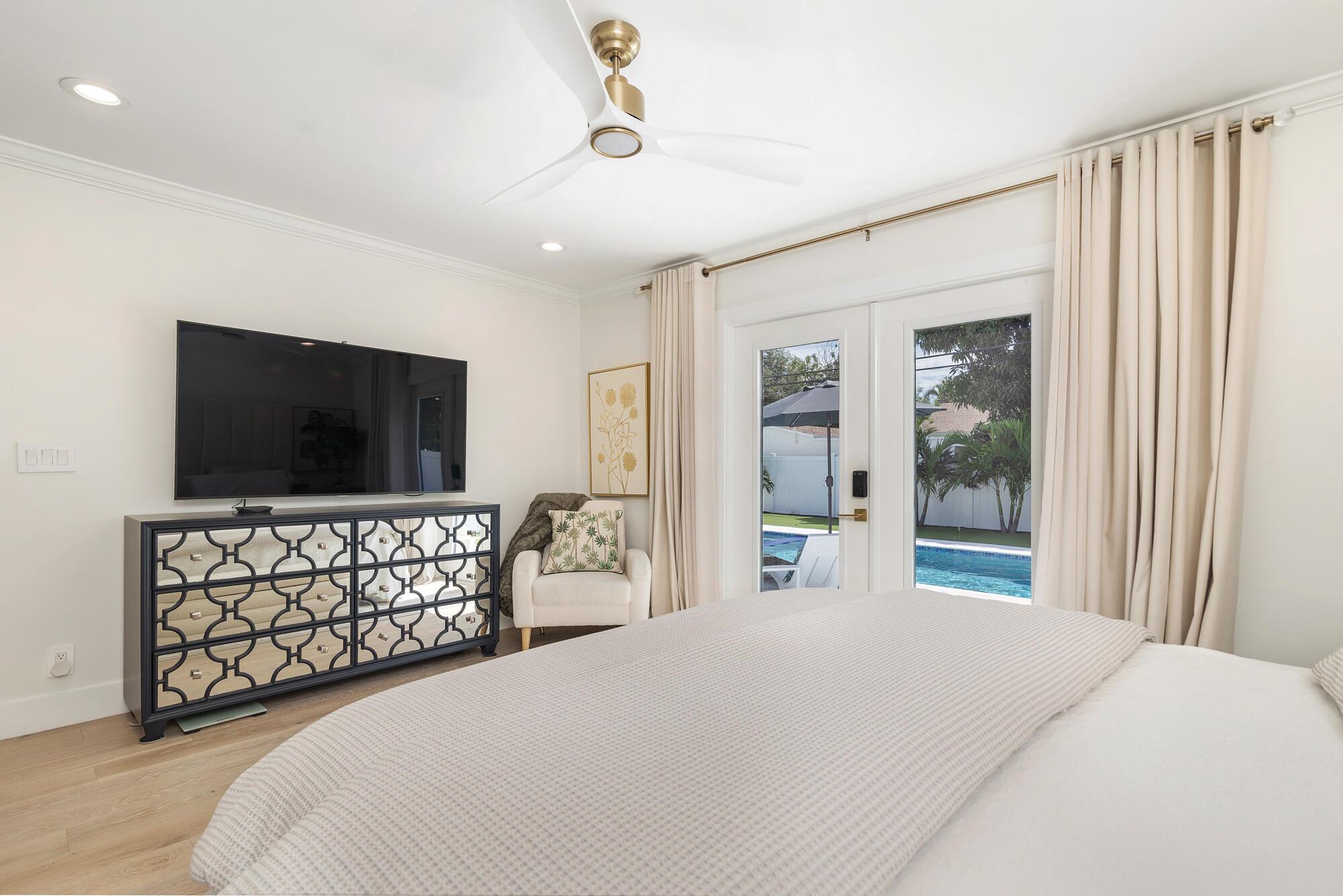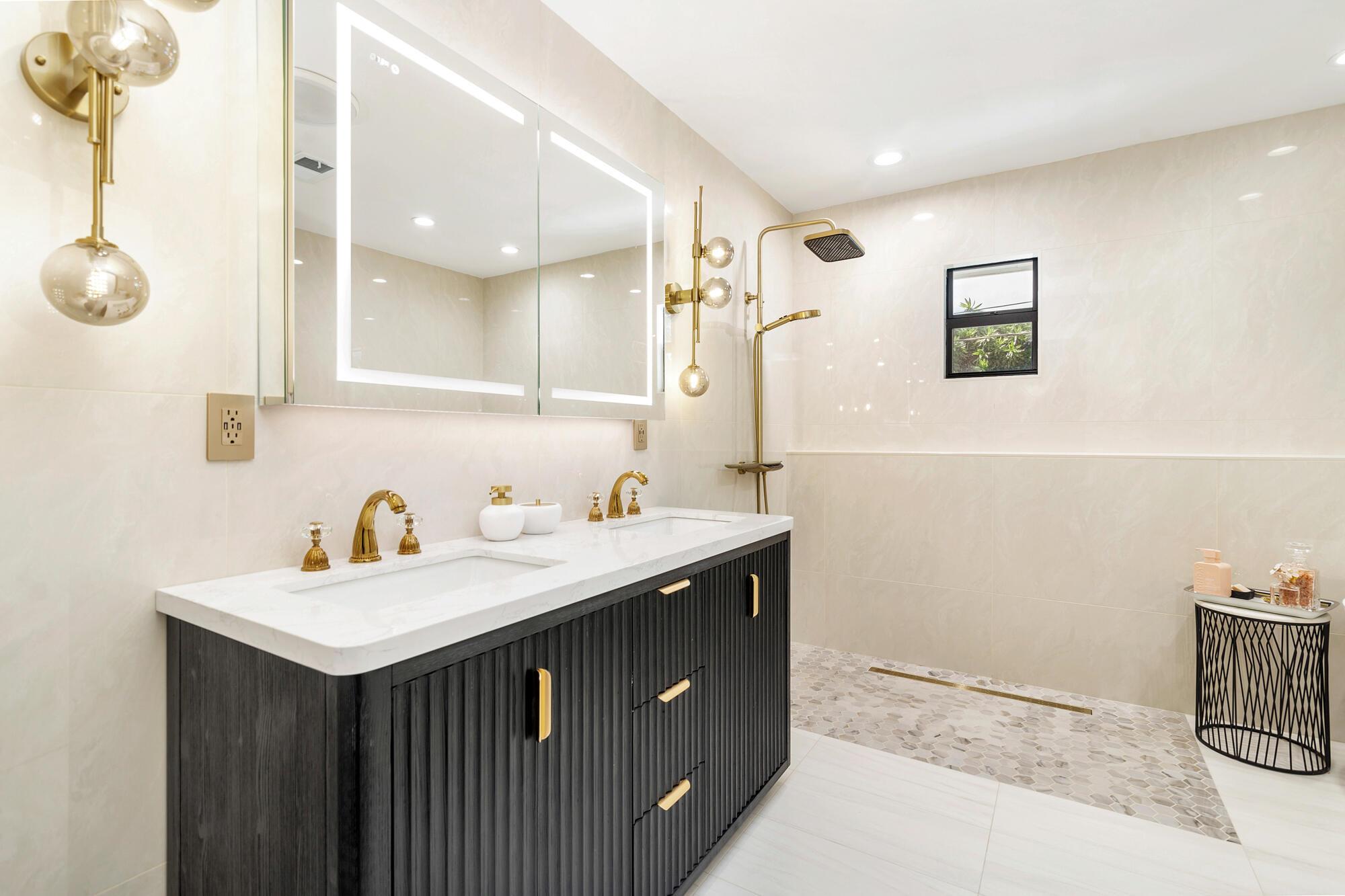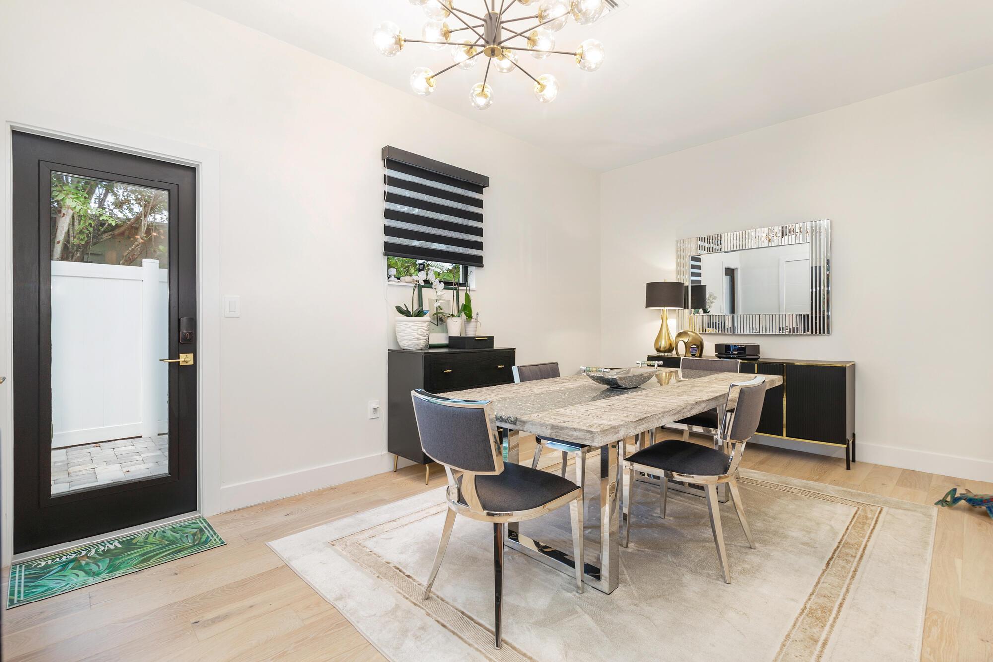 This beautifully renovated one-story residence, set on an oversized 9,750 sq. ft. lot, offers 3 bedrooms, 3 baths, and a thoughtful layout designed for modern living and effortless entertaining. Step inside to find a light-filled interior where recent updates elevate every space. New tinted impact windows, custom wood flooring, updated lighting with dimmer and Alexa-enabled switches, and custom cabinetry throughout create a refined yet comfortable atmosphere. The inviting living room features a wood-burning fireplace and a custom coffee bar, while the dining area and sunroom are adorned with electric window treatments. The chef's kitchen is equipped with Platinum Cafe GE appliances, a gas range with pot filler, wet bar with wine fridge, two-drawer fridge/freezer, and all new plumbing and