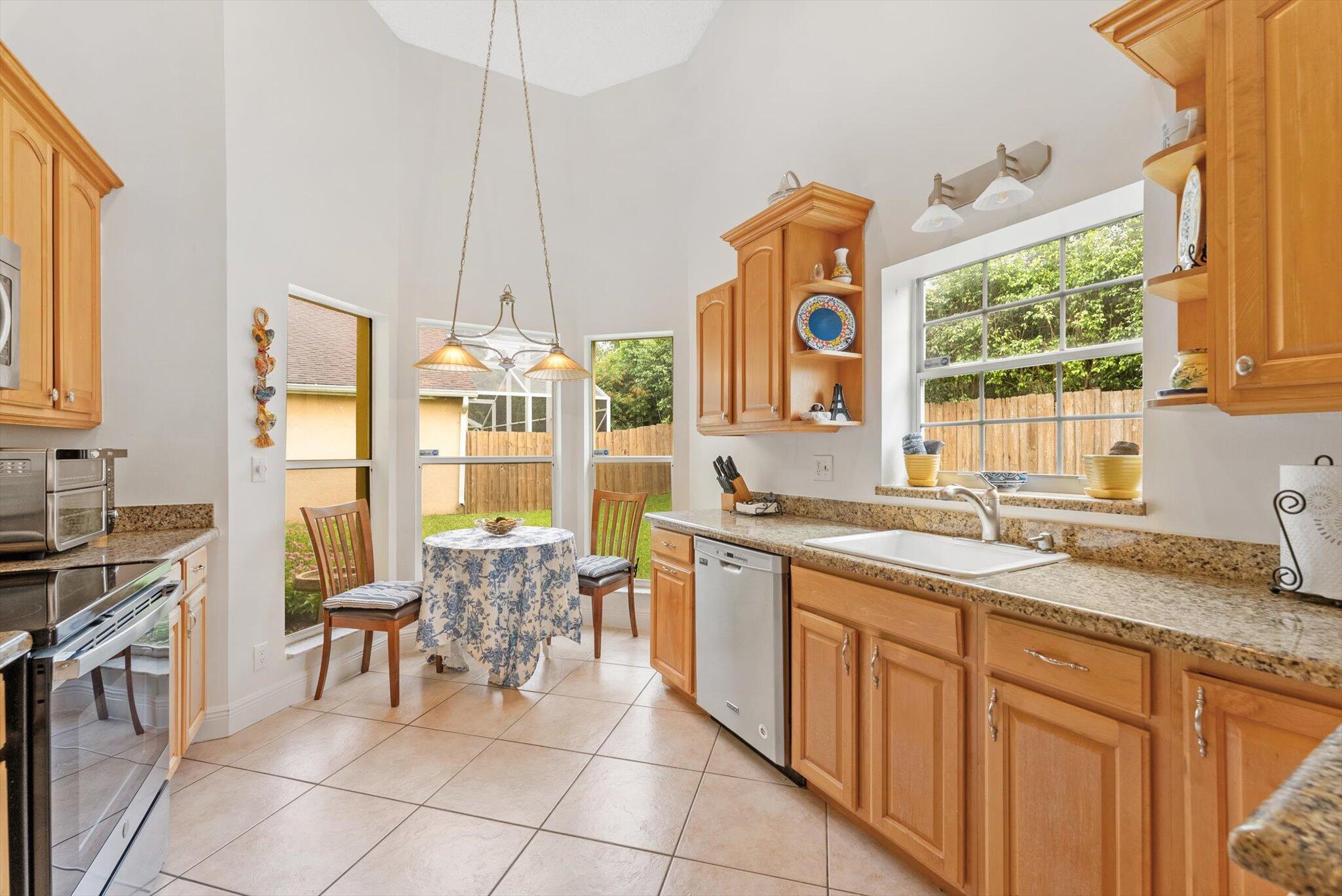 This is the one you've been waiting for! Welcome to this beautifully maintained, move-in ready 3 bed, 2 bath home in Boca Landings featuring a Brand-NEW 2025 Roof, AC-2022, & storm shutter protection. Inside, enjoy 13 ft vaulted ceilings, tile floors in the main living areas, laminate wood in bedrooms, and two tastefully updated bathrooms. Bright & charming kitchen boasting granite counters & wood cabinets. Screened lanai/patio overlooking the fully fenced backyard which offers privacy and plenty of space to play or entertain. Spacious layout with living room, formal dining room and family room connecting the open kitchen. Formal dining room can also be used as a den, office or even converted into a 4th bedroom. Low HOA Fees cover cable package, amenities and common areas.