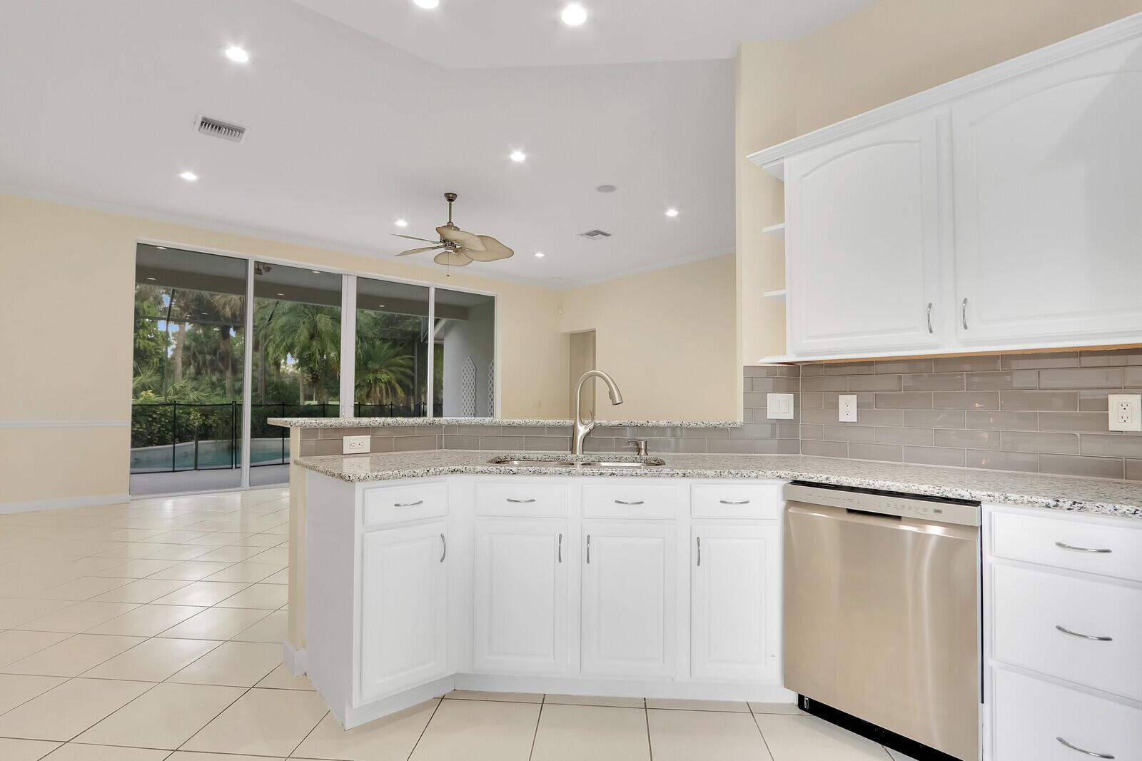 This is the popular Medina Floor plan with a pool. Two bedroom suites + den or possible 3rd bedroom, with a convenient powder room just outside its door. The kitchen has been updated to include all new appliances, new countertops and white cabinetry. The great room has four sets of sliding doors which pocket, opening the ''outside in'' during our perfect winter weather. The spacious main suite has new carpeting, his and her closets, with the bathroom having two lavatories, walk-in shower and garden tub. The screen enclosed patio has a nice covered area to enjoy views of the pool and Wanamaker golf course!