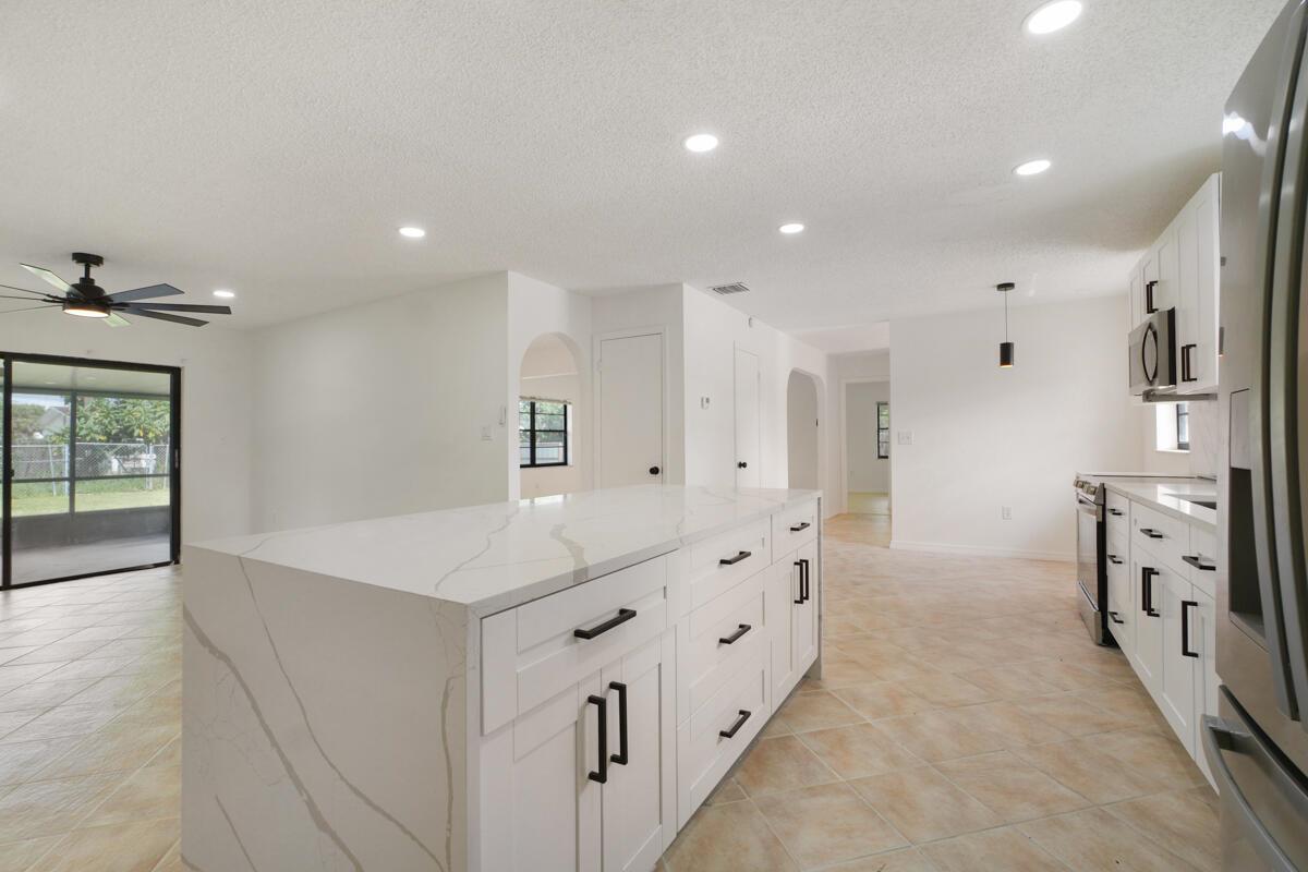 Beautifully updated 3-bedroom, 2-bath, 2-car garage home with new roof, new A/C, new water heater, and new appliances. The kitchen offers shaker cabinets, quartz countertops, and a large island that flows into open living areas with modern lighting and tile flooring throughout. Fresh paint and stylish finishes create a bright, move-in ready feel. Outdoor living features a screened covered patio, fenced backyard, and detached storage shed. Conveniently located near Crosstown Parkway and US-1, providing quick access to shopping, dining, parks, schools, medical facilities, and a short drive to the beaches. With no HOA, this home offers both comfort and flexibility in the heart of Port St. Lucie.