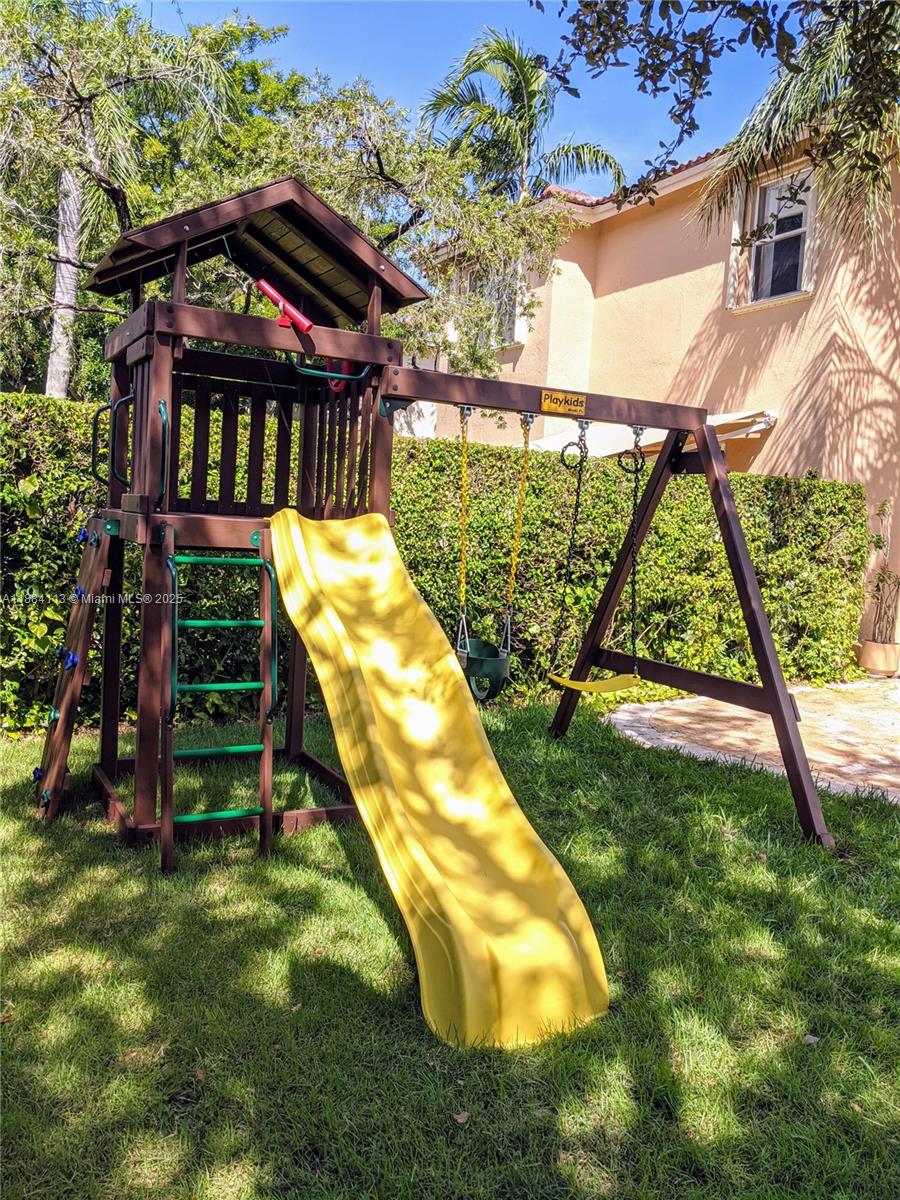 Welcome to this beautiful 4 bedroom, 2 1/2 bath home located at Opal Creek in Weston! This home is located in a gated community and boasts both formal living and dining areas as well as a family room. A private backyard with patio area and playground as well as a 2 car garage complete the home. It has crown molding, granite countertops in the kitchen, as well as recently installed floors, roof and bathrooms. The home also has impact windows and doors. This community offers an entrance gate with 24/7 security guard, pool, fitness room and playground. New water heater and appliances were bought in 2023. In short, this is a light filled home located in an impeccably maintained community and close to top rated schools as well as steps to shops and restaurants.