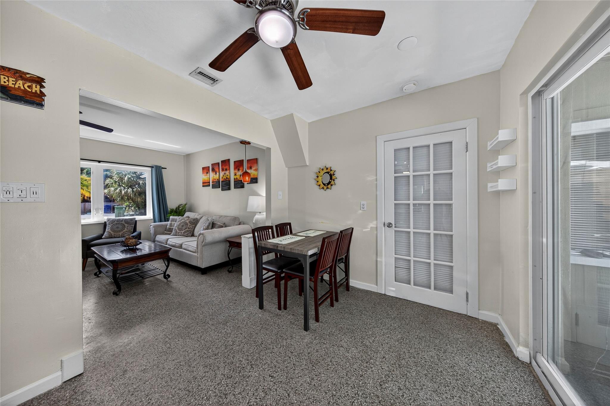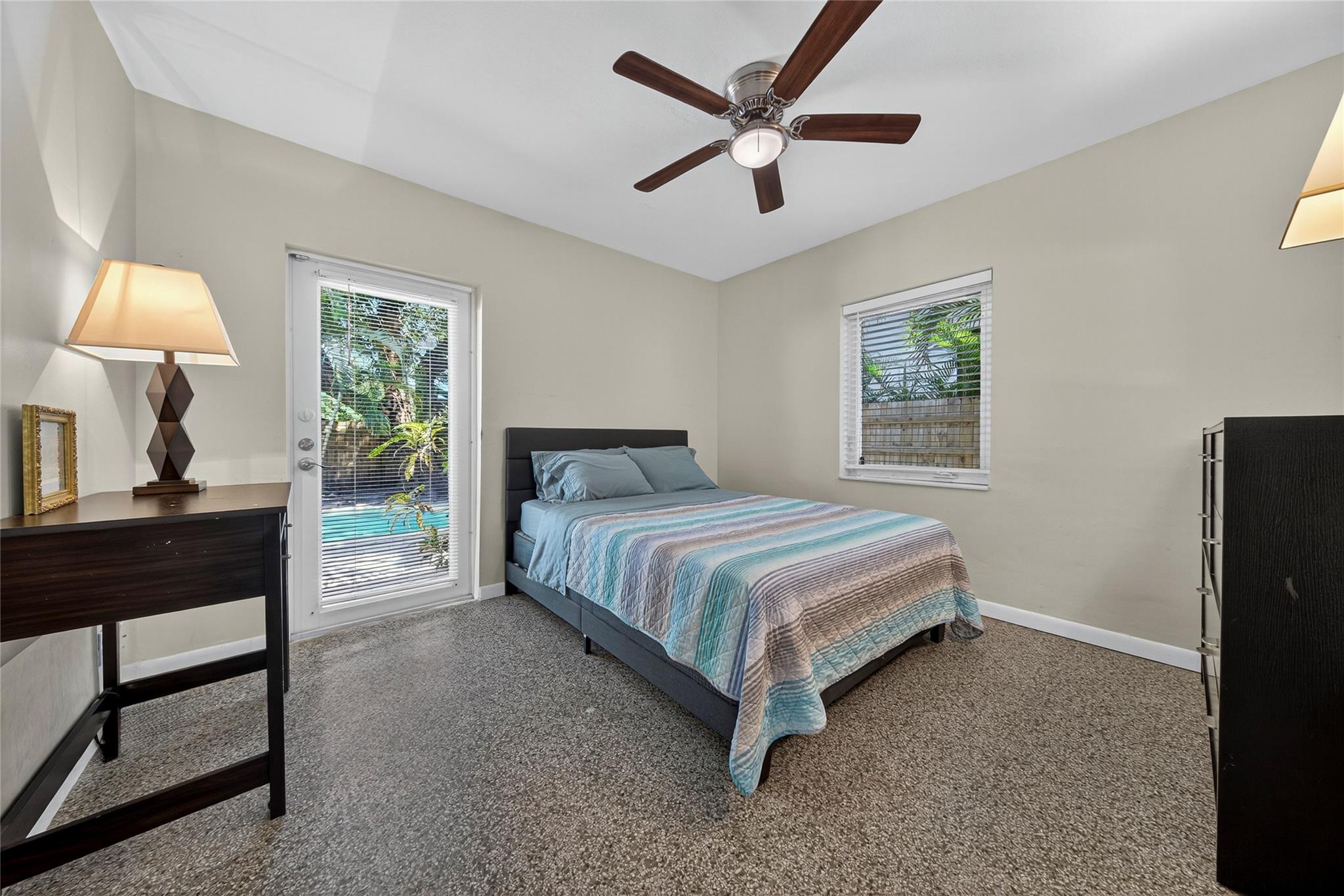 HIGHLY desired Poinsettia Heights neighborhood gem! Updated kitchen with granite counters, large pantry and snack counter facing the beautiful pool area. Primary suite offers renovated bathroom with walk-in shower and walk-in closet split from the other two bedrooms. Nicely updated guest bathroom has a tub and shower combination and large linen closet. Extra closet in the hallway. VERY good condition terrazo flooring throughout. Large heated pool with relaxing WATERFALL FEATURE and hot tub are in a VERY private backyard. Home offers a ton of natural light, a carport and a nice circular driveway made out of pavers. Ideal for a primary home, second home or short term rentals! No HOA. Close to the beach, downtown and 15 mins to the airport.