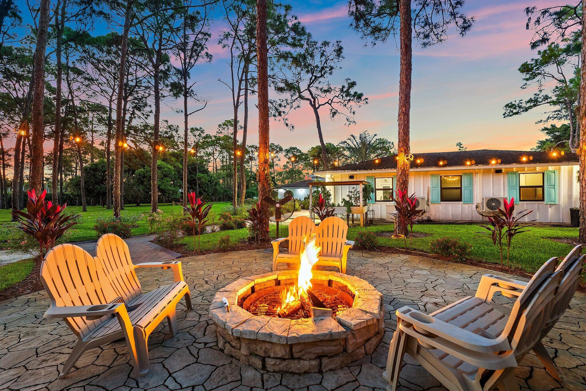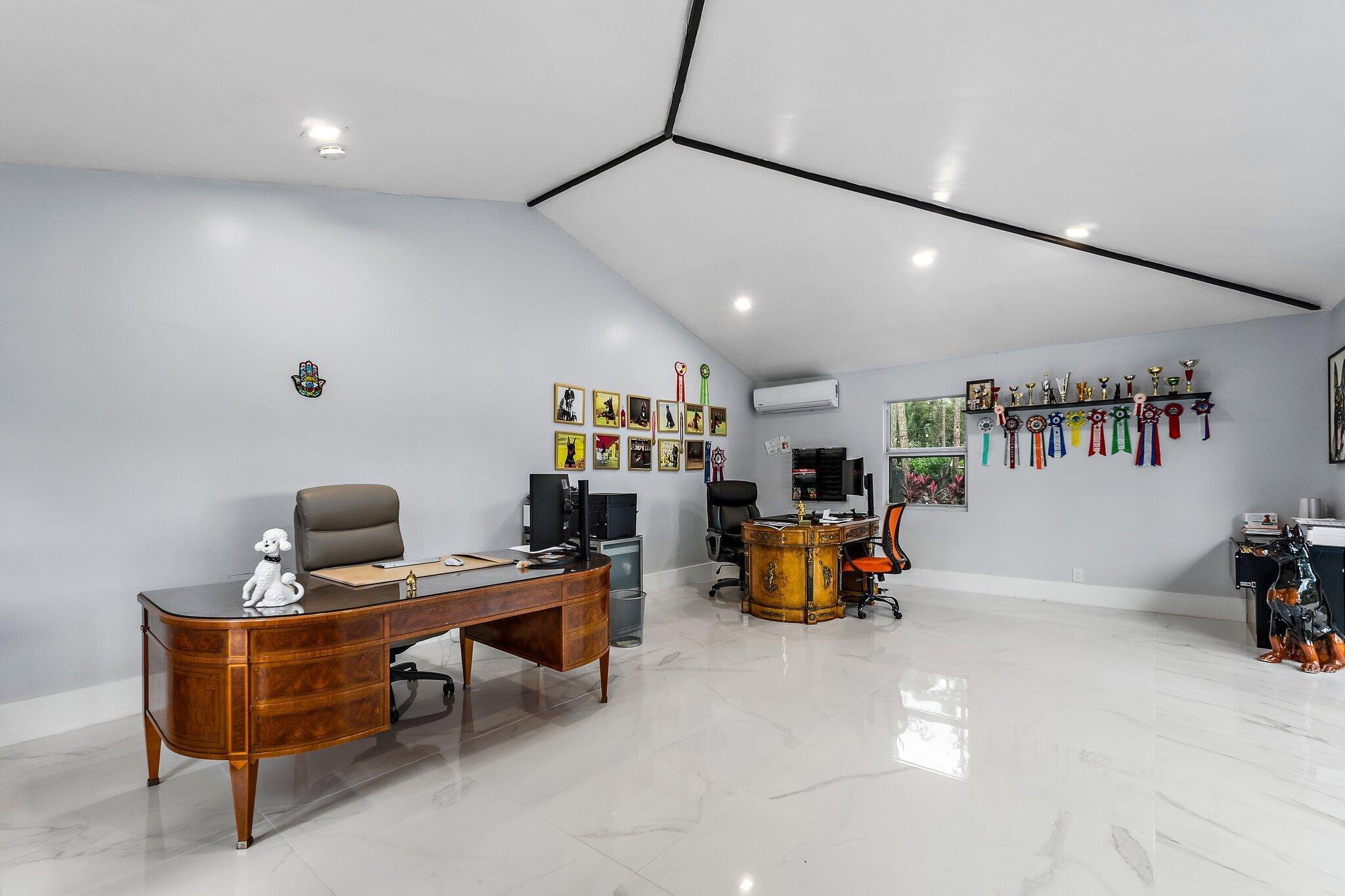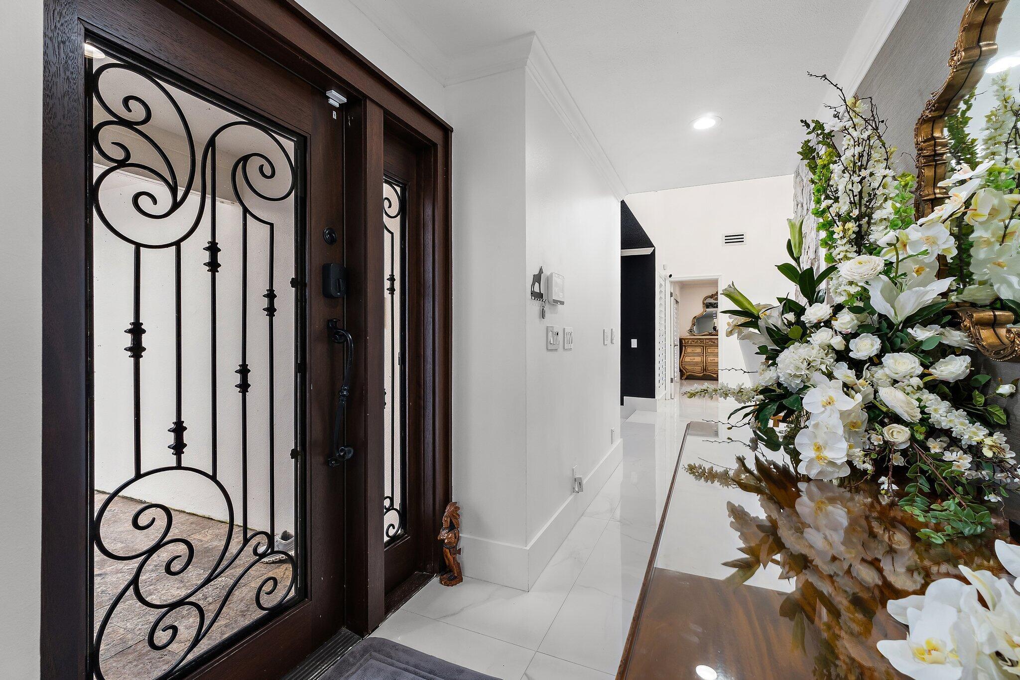 Welcome to a truly rare offering - a stunning 5.11 acre gated estate that offers luxury, privacy and tropical serenity in beautiful Palm Beach Gardens. Tucked away under lushly landscaped grounds, this exceptional compound features a recently renovated main residence, a spacious 1 BR guest cottage w/ kitchen and a separate office/bonus building - all masterfully integrated into a private sanctuary like no other. The main house has been updated to provide every modern convenience while maintaining timeless elegance. Design elements include double height ceilings in main living areas, sleek marble-look porcelain floors and full impact windows and doors throughout, creating a light fulled, airy ambiance. At the heart of the home, the true chef's kitchen is a culinary dream, outfitted with