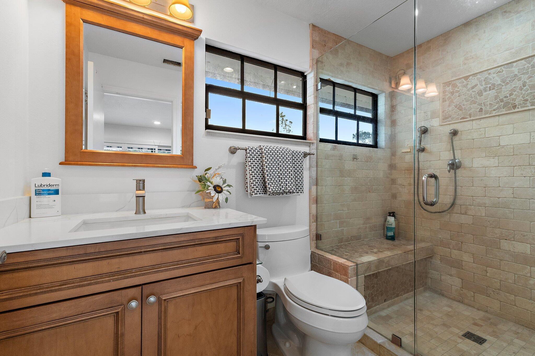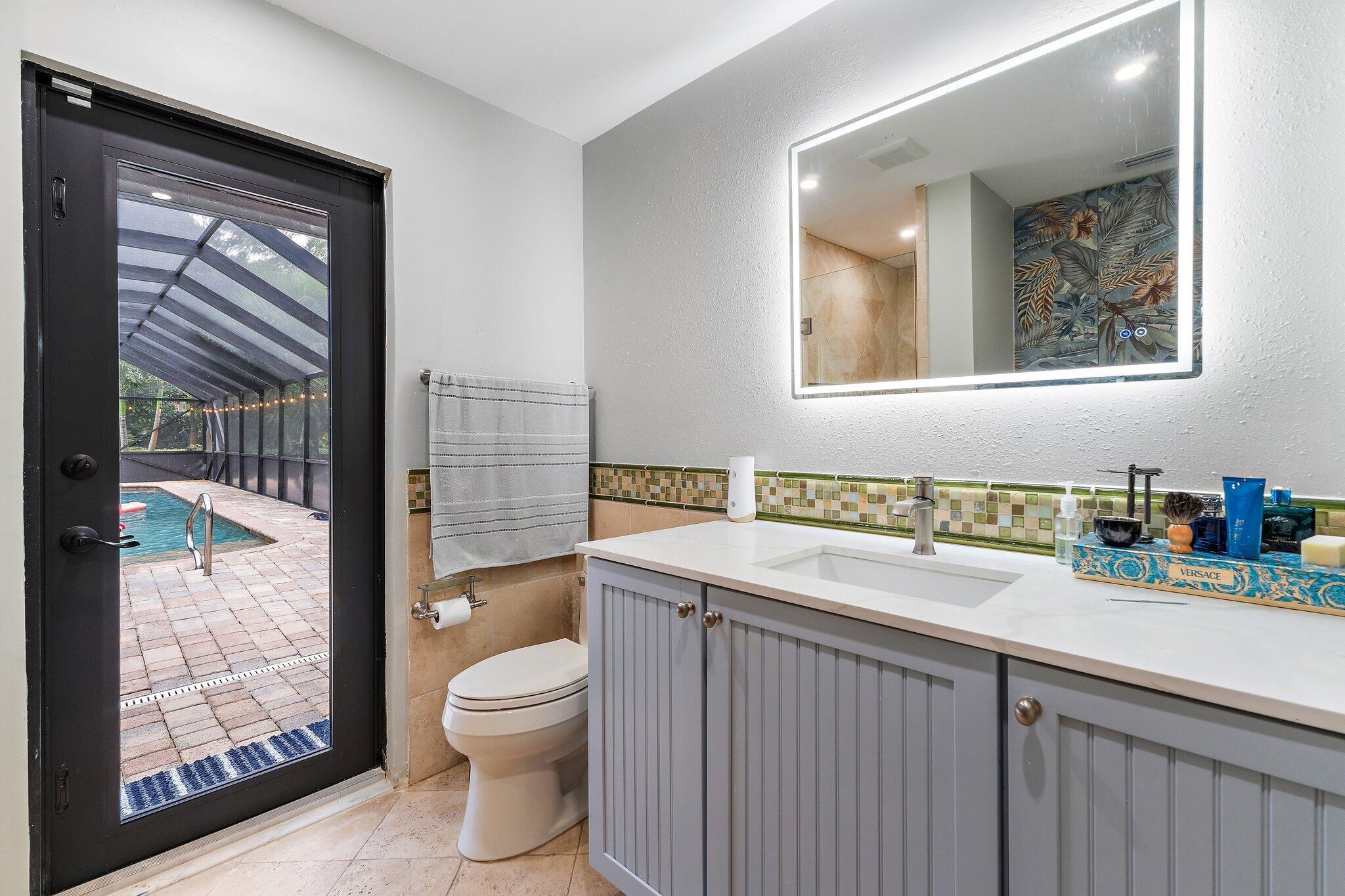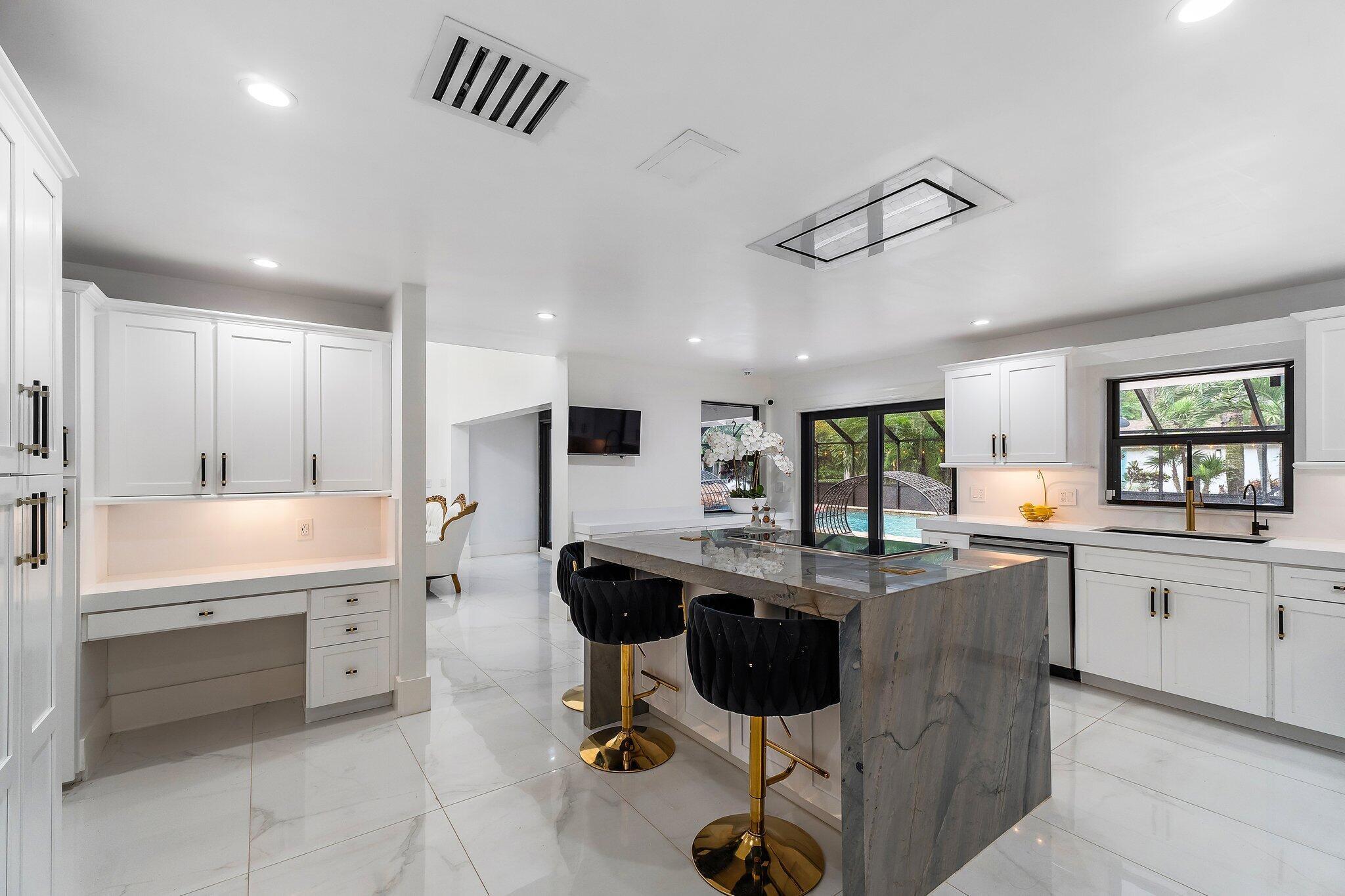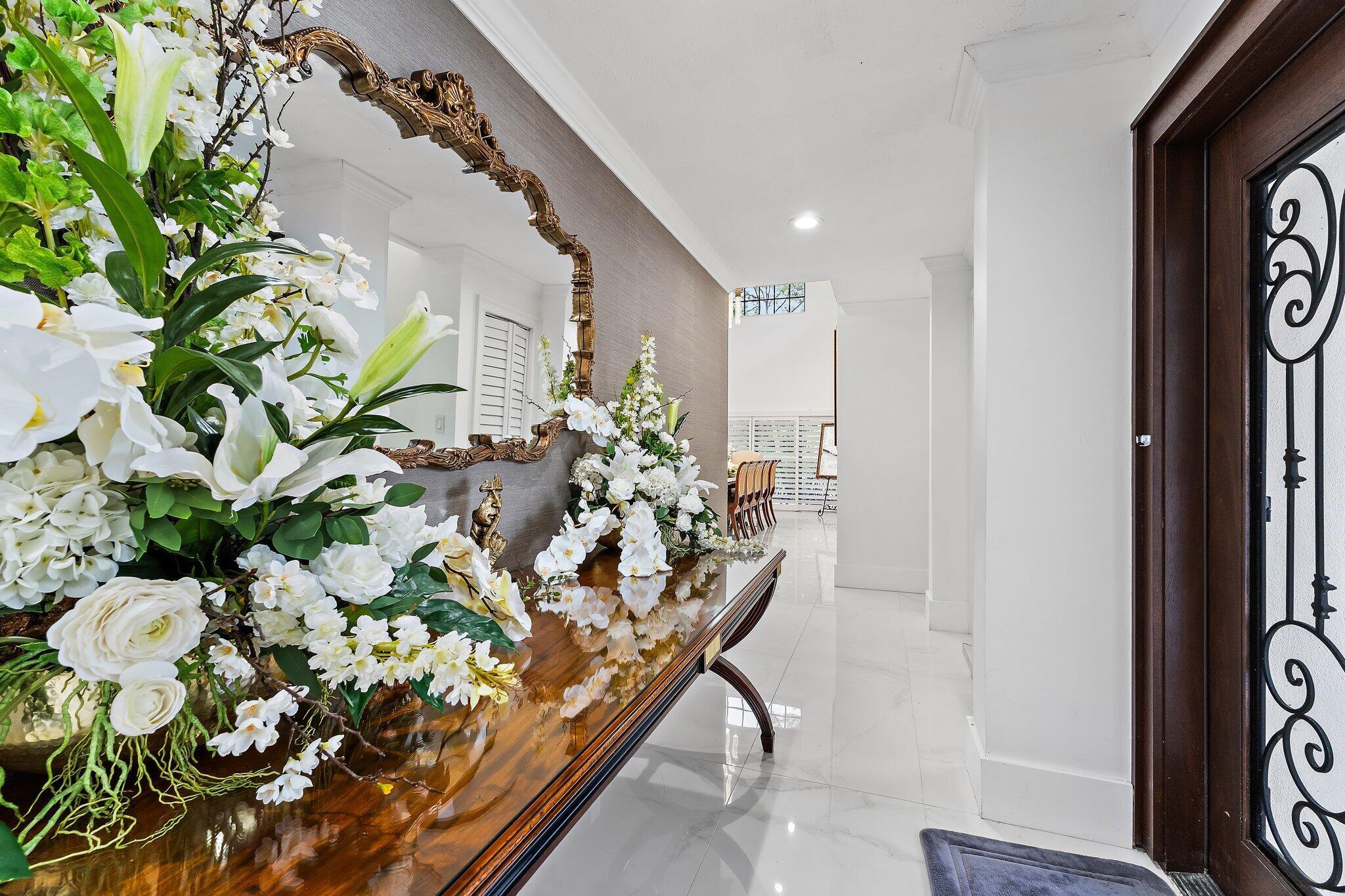 Welcome to a truly rare offering - a stunning 5.11 acre gated estate that offers luxury, privacy and tropical serenity in beautiful Palm Beach Gardens. Tucked away under lushly landscaped grounds, this exceptional compound features a recently renovated main residence, a spacious 1 BR guest cottage w/ kitchen and a separate office/bonus building - all masterfully integrated into a private sanctuary like no other. The main house has been updated to provide every modern convenience while maintaining timeless elegance. Design elements include double height ceilings in main living areas, sleek marble-look porcelain floors and full impact windows and doors throughout, creating a light fulled, airy ambiance. At the heart of the home, the true chef's kitchen is a culinary dream, outfitted with