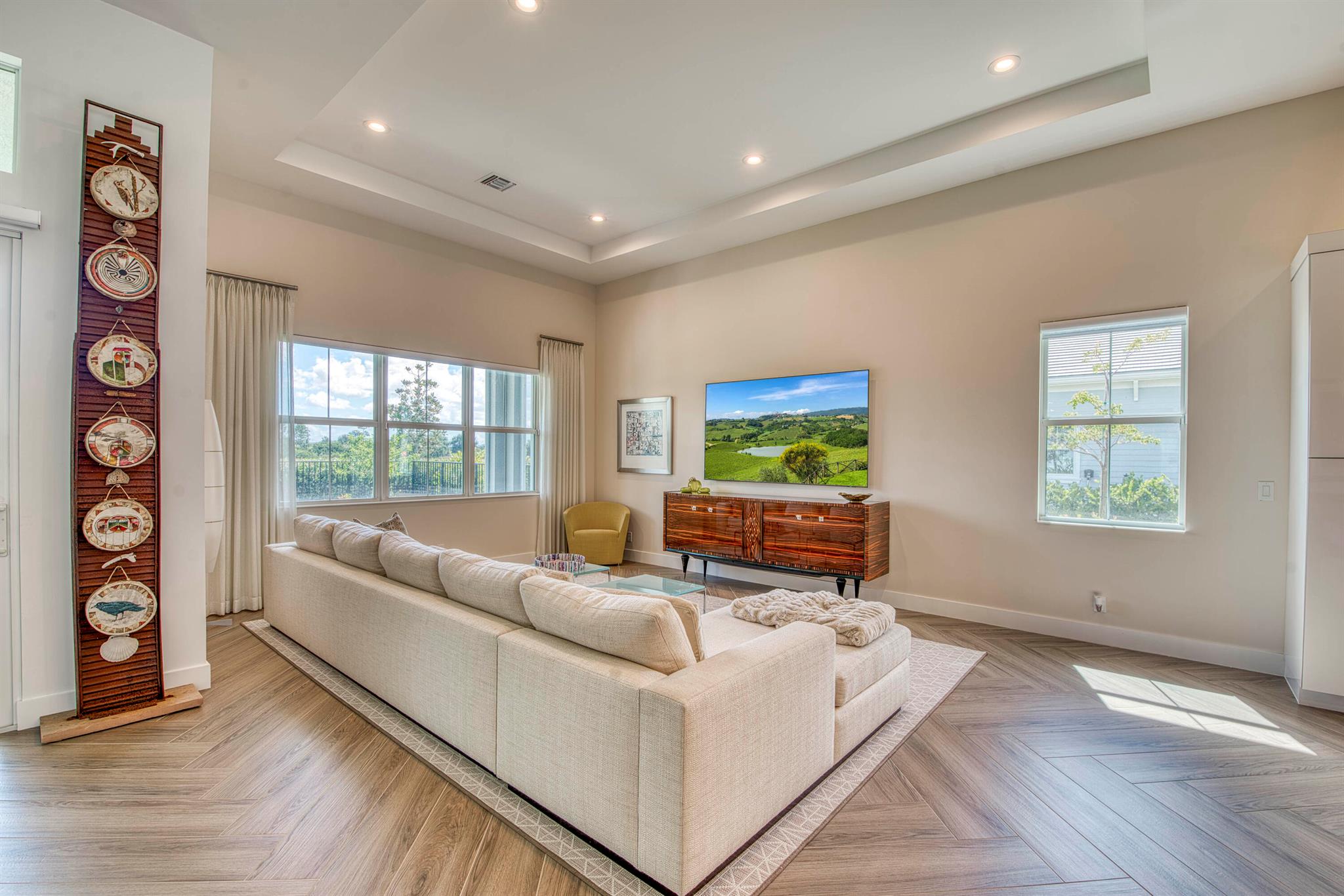 This Lewiston Expanded model offers 2,790 square feet of thoughtfully designed living space on a 7,679-square-foot lot with tranquil preserve views and of the golf course at a distance, creating a serene backdrop for everyday living. Appointed with a whole-house generator and water system, phantom screens, and an EV charging outlet, it effortlessly blends modern convenience with refined luxury. Inside, the home is beautifully finished in a soft linen-inspired palette, with smooth ceilings and walls and elegant ceramic wood-look tile set in a herringbone pattern throughout. Sunlight fills the open-concept living area through expansive windows, highlighting the