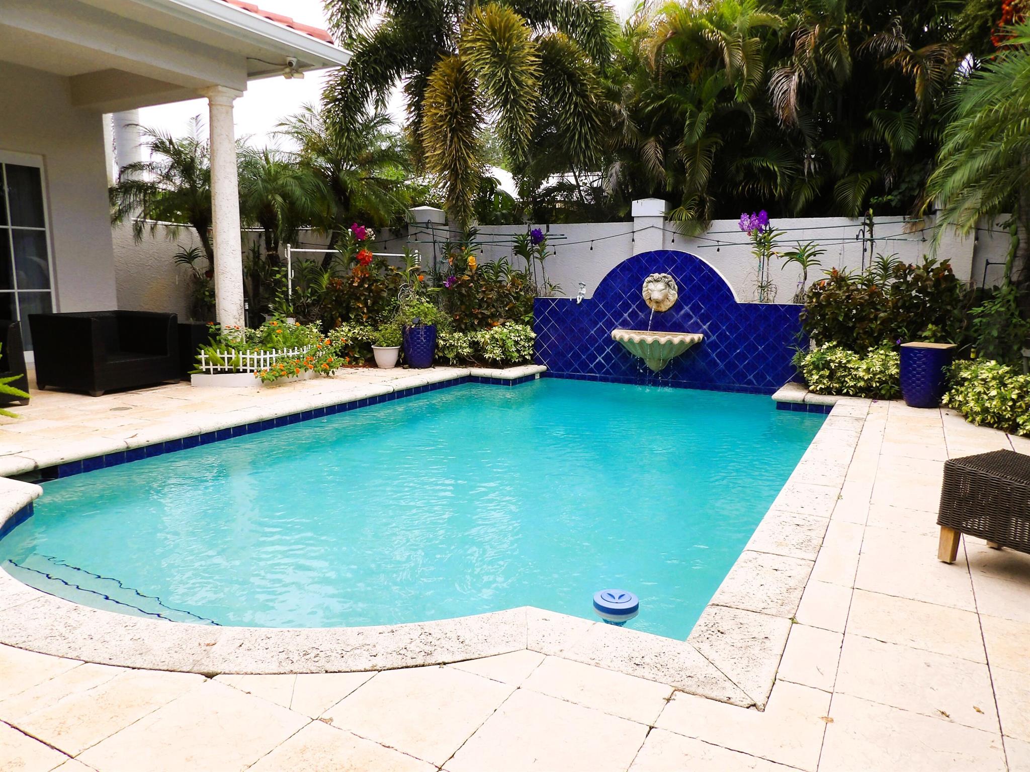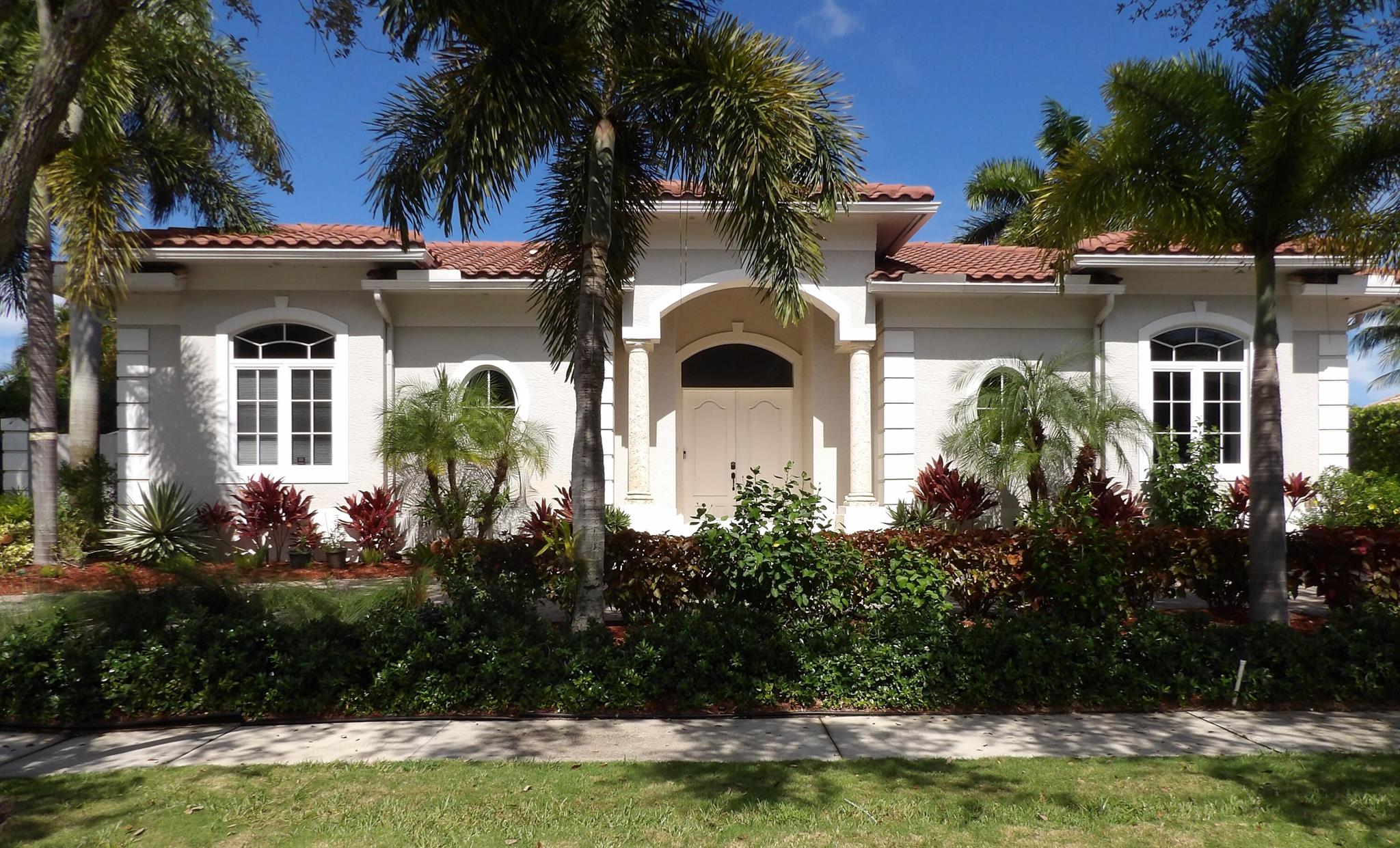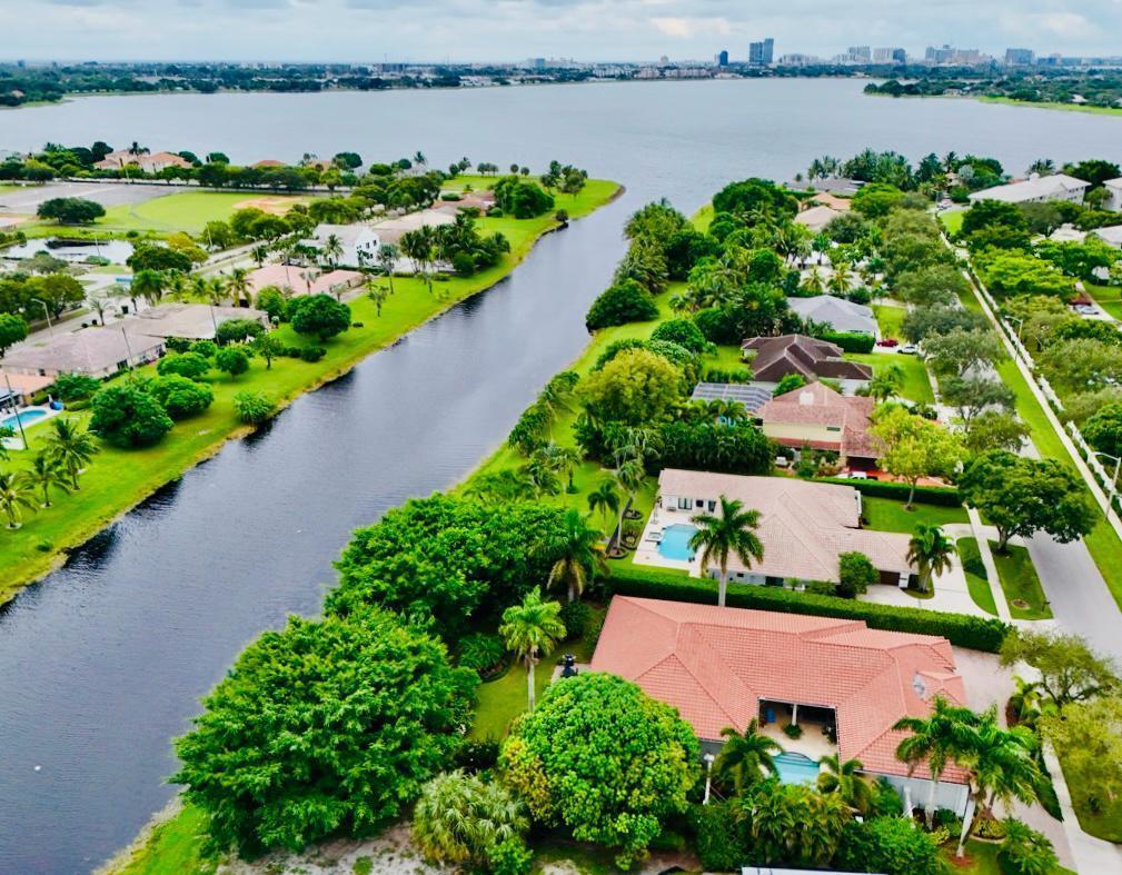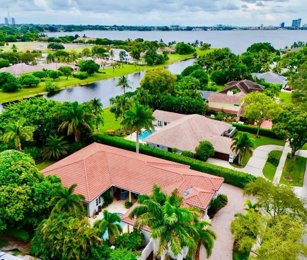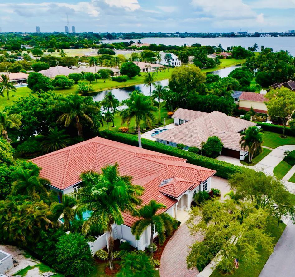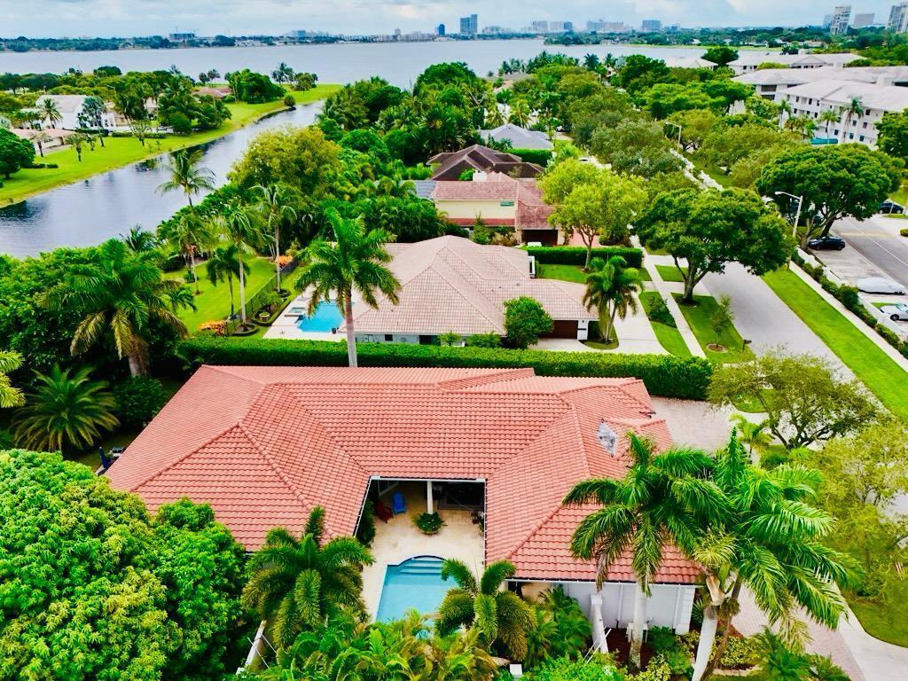 Elegant custom estate in prestigious Presidential Estates, built in 2008 with hurricane-safe construction rated to 240 mph. This home offers 4 spacious bedrooms, an office, and 3.5 baths. The classically center courtyard true private retreat features a private guest quarters, pool, fountain, and summer kitchen--perfect for entertaining or relaxing. Inside, a brand-new quartzite gourmet kitchen pairs with solid wood cabinetry, seemles tile flooring. Elegant details include Egypcian marble thougout, Swarovski crystal chandeliers, and gold accents for timeless sophistication. Set on a 110x137 lot plus a 1/4-acre canal easement with direct access to Lake Mangonia, two kayaks included. Just minutes to downtown, beaches, airport, and premier shopping. This home offers both luxury and convenience