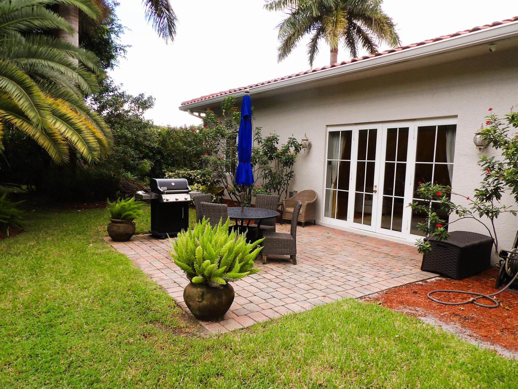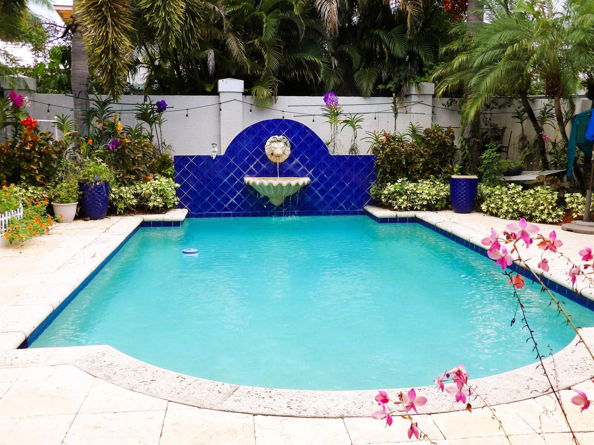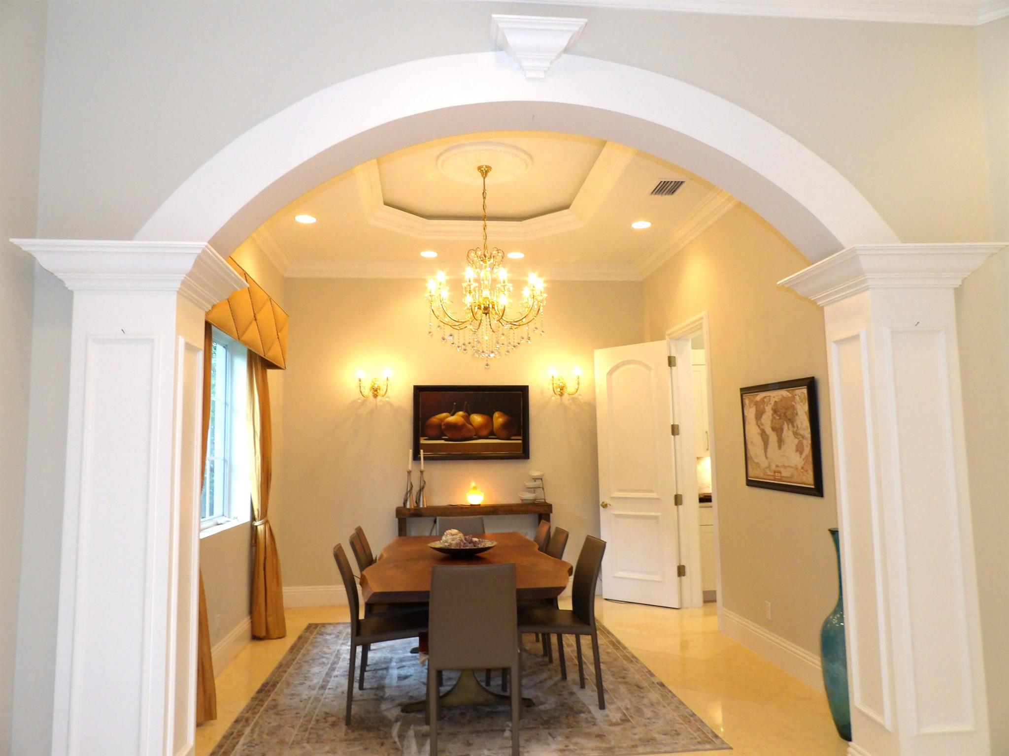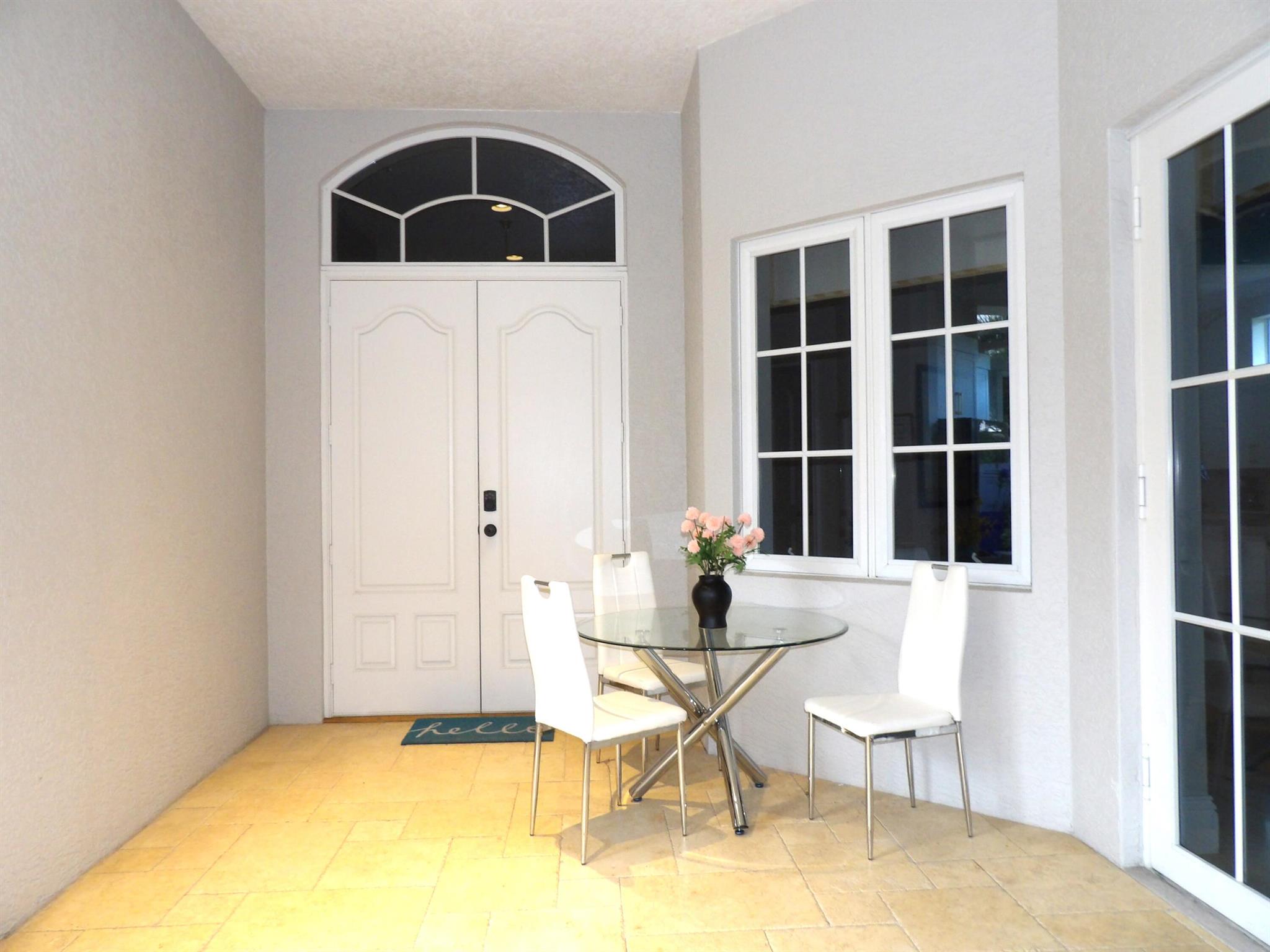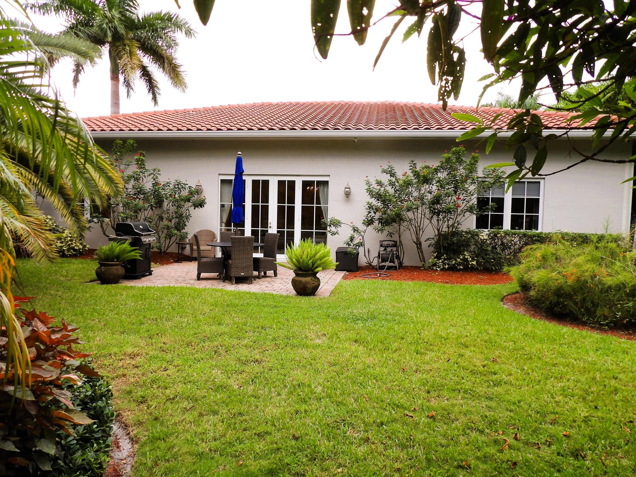 Elegant custom estate in prestigious Presidential Estates, built in 2008 with hurricane-safe construction rated to 240 mph. This home offers 4 spacious bedrooms, an office, and 3.5 baths. The classically center courtyard true private retreat features a private guest quarters, pool, fountain, and summer kitchen--perfect for entertaining or relaxing. Inside, a brand-new quartzite gourmet kitchen pairs with solid wood cabinetry, seemles tile flooring. Elegant details include Egypcian marble thougout, Swarovski crystal chandeliers, and gold accents for timeless sophistication. Set on a 110x137 lot plus a 1/4-acre canal easement with direct access to Lake Mangonia, two kayaks included. Just minutes to downtown, beaches, airport, and premier shopping. This home offers both luxury and convenience
