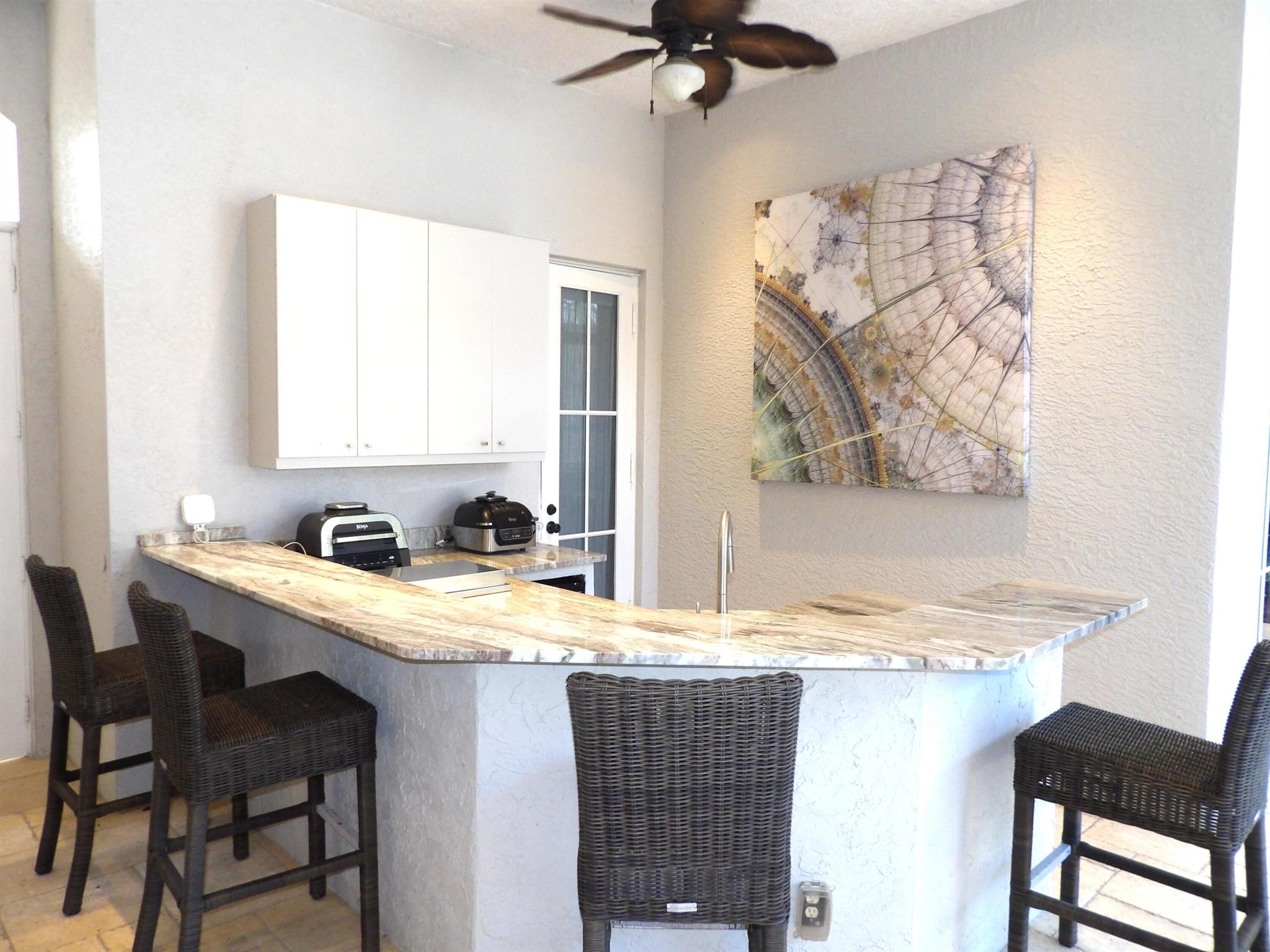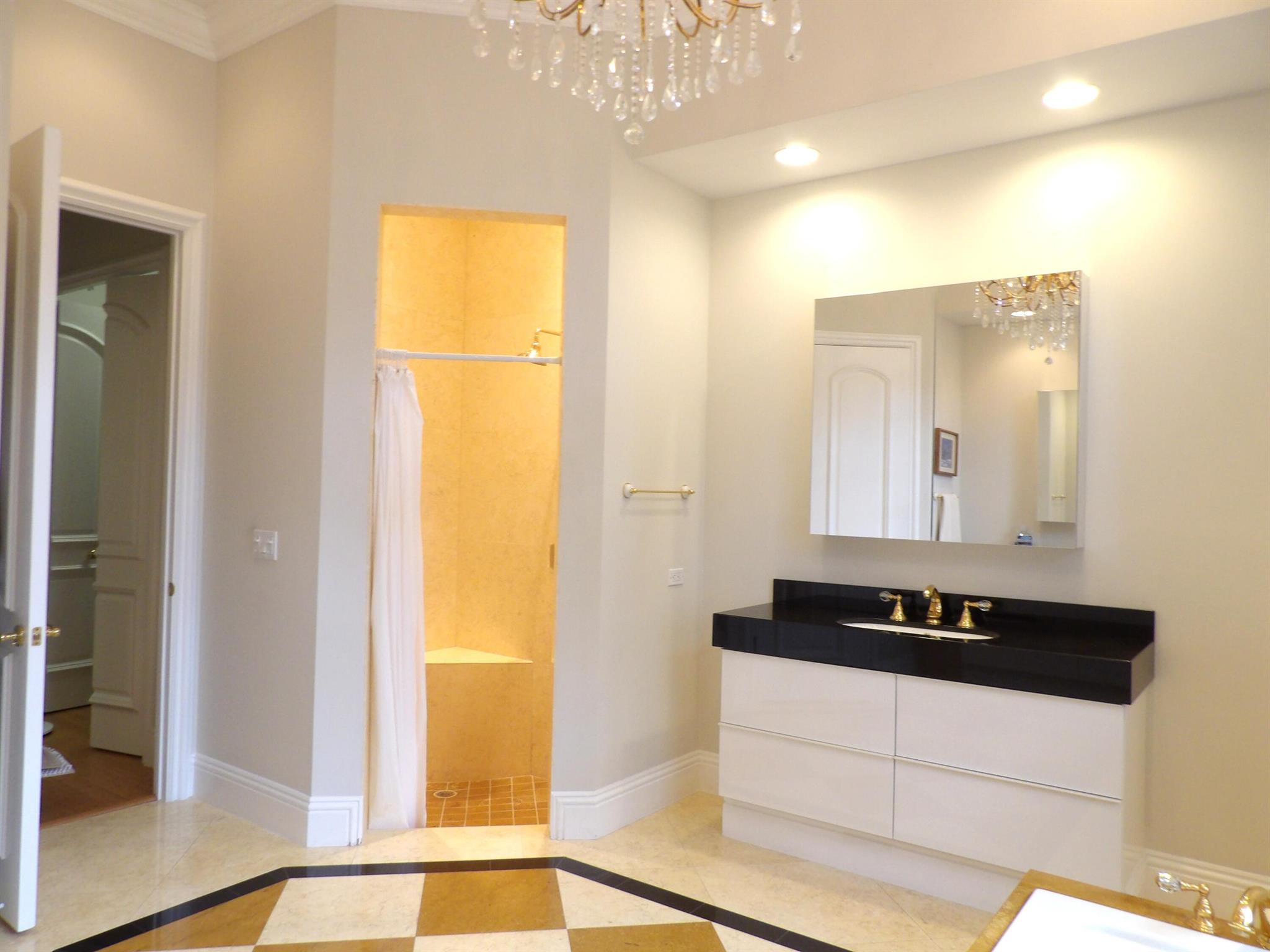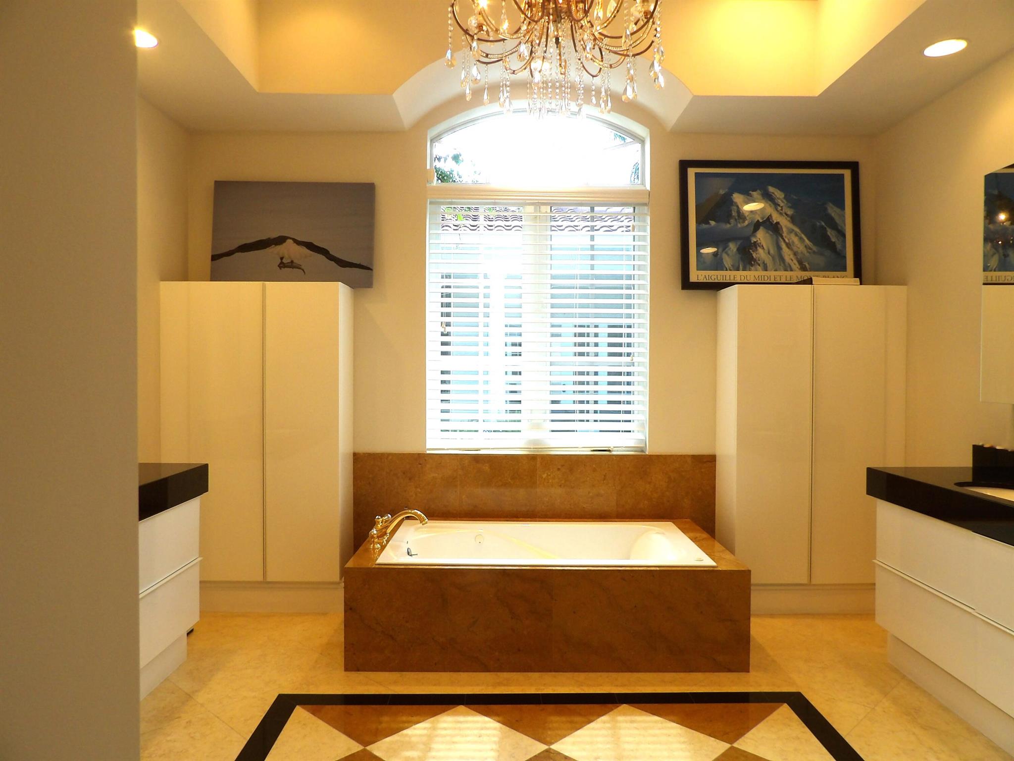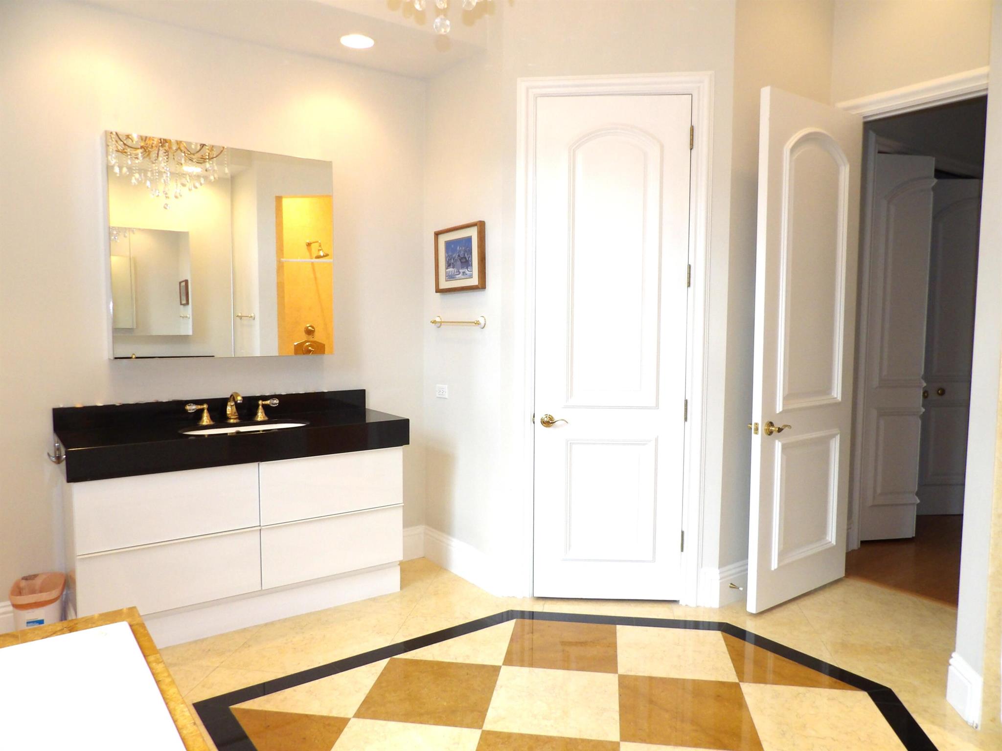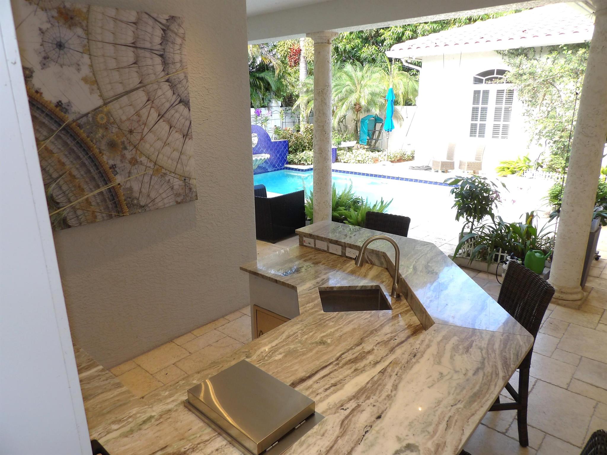 Elegant custom estate in prestigious Presidential Estates, built in 2008 with hurricane-safe construction rated to 240 mph. This home offers 4 spacious bedrooms, an office, and 3.5 baths. The classically center courtyard true private retreat features a private guest quarters, pool, fountain, and summer kitchen--perfect for entertaining or relaxing. Inside, a brand-new quartzite gourmet kitchen pairs with solid wood cabinetry, seemles tile flooring. Elegant details include Egypcian marble thougout, Swarovski crystal chandeliers, and gold accents for timeless sophistication. Set on a 110x137 lot plus a 1/4-acre canal easement with direct access to Lake Mangonia, two kayaks included. Just minutes to downtown, beaches, airport, and premier shopping. This home offers both luxury and convenience