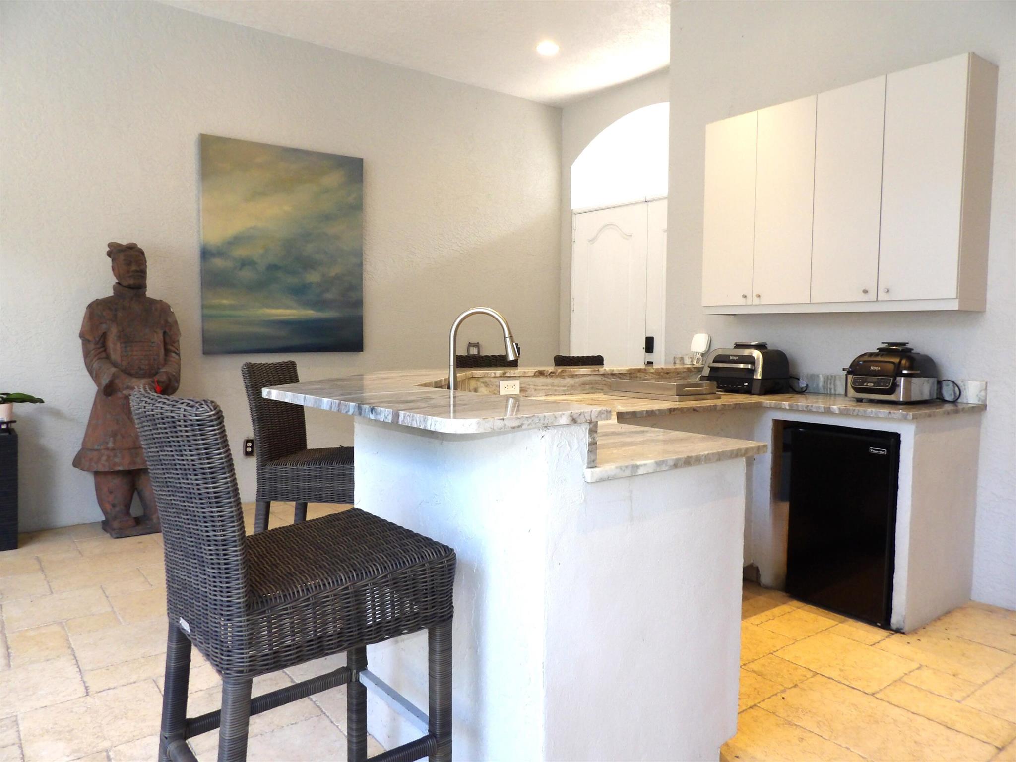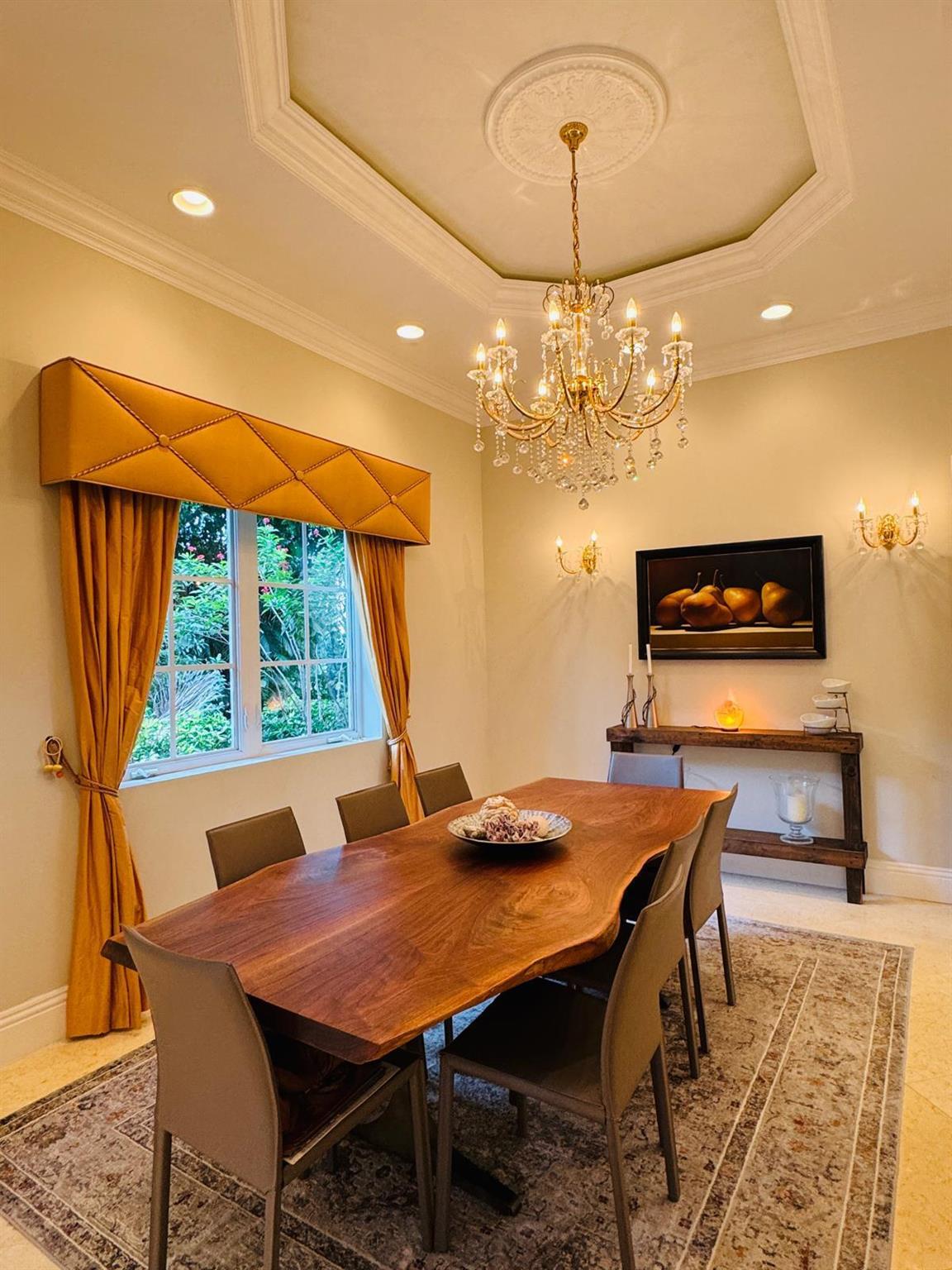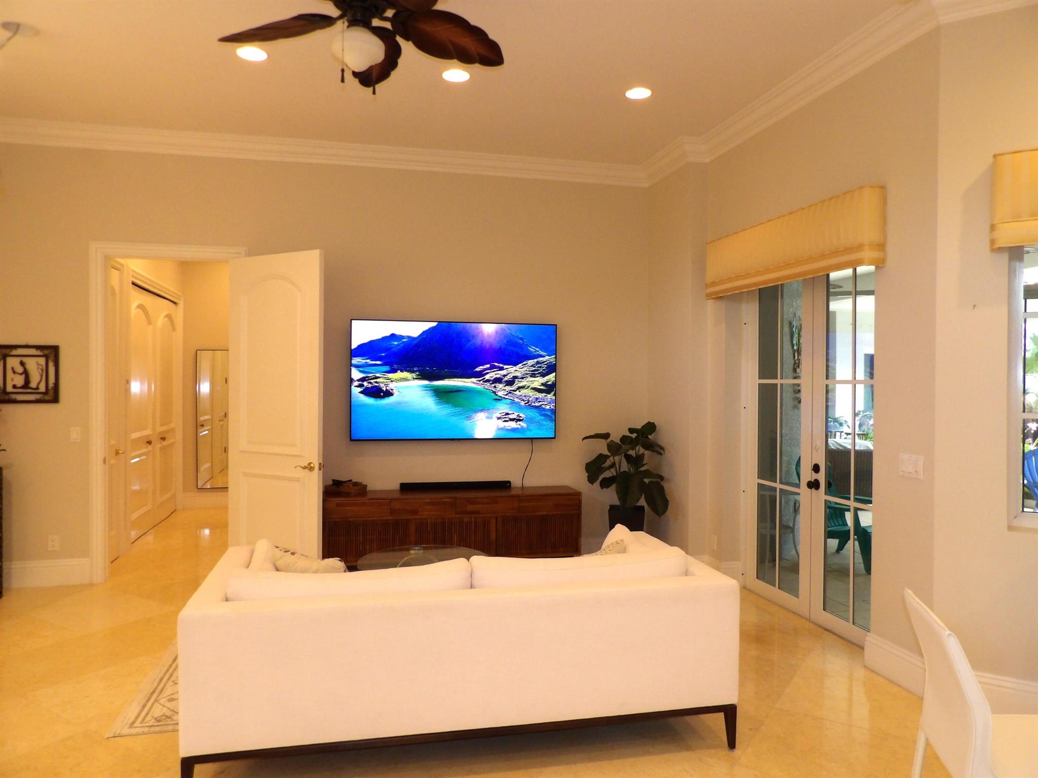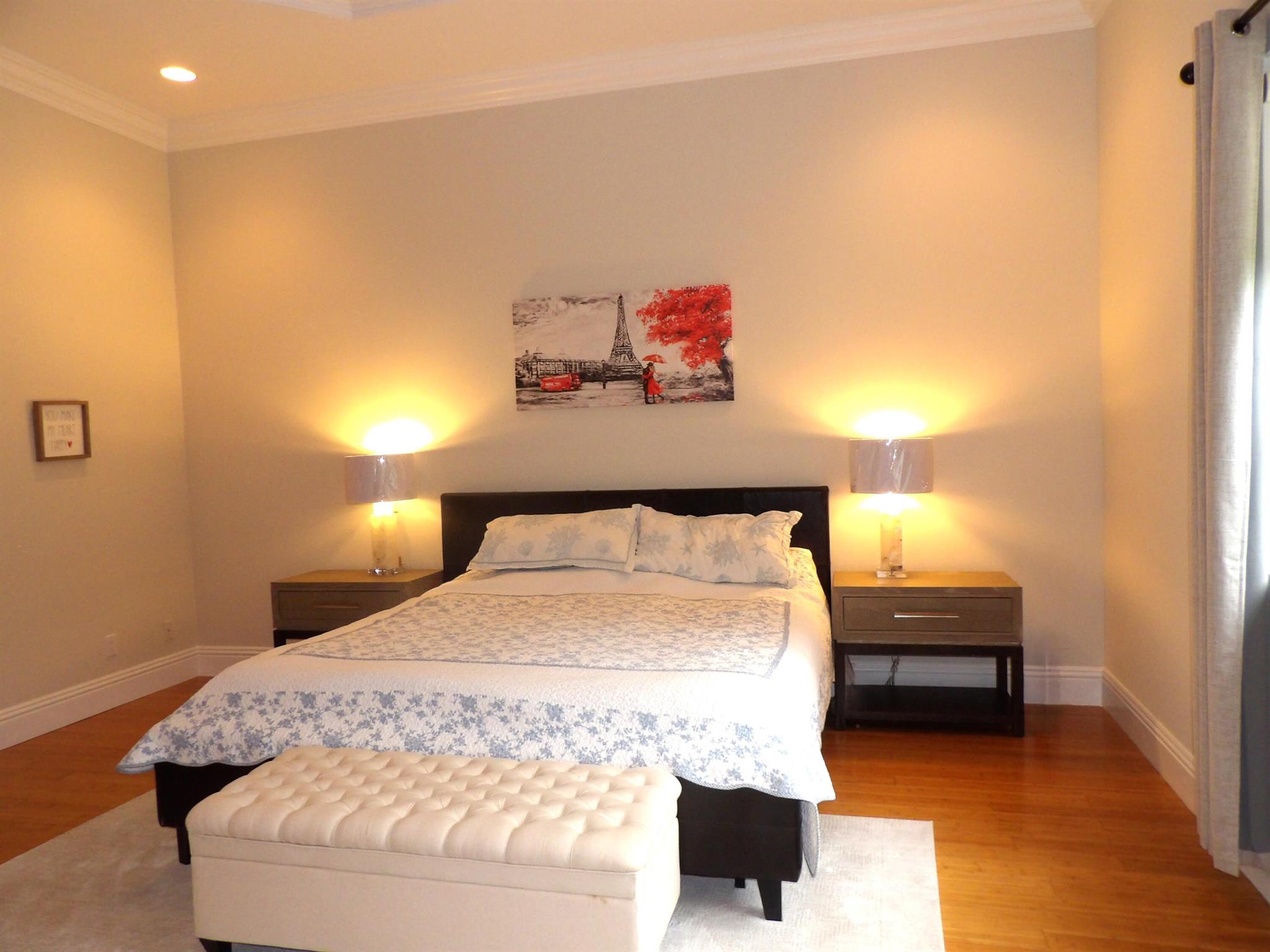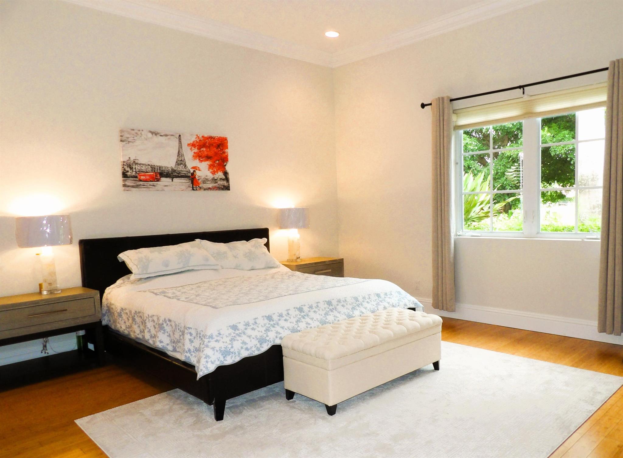 Elegant custom estate in prestigious Presidential Estates, built in 2008 with hurricane-safe construction rated to 240 mph. This home offers 4 spacious bedrooms, an office, and 3.5 baths. The classically center courtyard true private retreat features a private guest quarters, pool, fountain, and summer kitchen--perfect for entertaining or relaxing. Inside, a brand-new quartzite gourmet kitchen pairs with solid wood cabinetry, seemles tile flooring. Elegant details include Egypcian marble thougout, Swarovski crystal chandeliers, and gold accents for timeless sophistication. Set on a 110x137 lot plus a 1/4-acre canal easement with direct access to Lake Mangonia, two kayaks included. Just minutes to downtown, beaches, airport, and premier shopping. This home offers both luxury and convenience