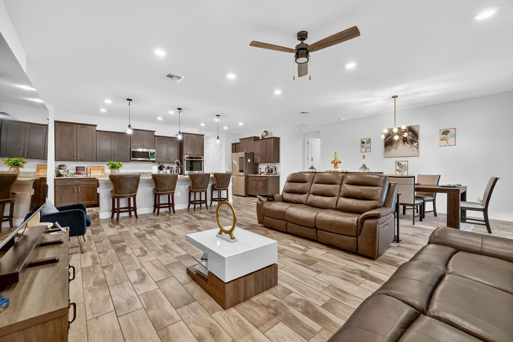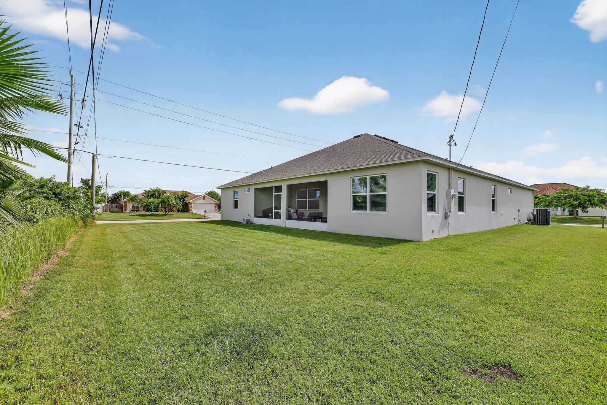Stunning Port St. Lucie Single Family Home, No Association, this Energy Efficient BEE Smart Home features over 3,200 sq ft of living with 4 bedrooms 3 bathrooms 3 car garage a large Flex/Bonus room, large Office with Double French doors, Chef Kitchen with 42'' Soft Close Wood Cabinets, Granite countertops, 12' Kitchen Island, Double Wall Ovens, extra-large Master Bedroom with a sitting room and 10' Tray Ceilings, His & Her Walk-in Closets, Master Bathroom has His & Her separate areas with a Large Shower and Soaker Tub, matching tile throughout the complete home, Energy Efficient LED Recessed Light throughout the house, large Screened Lanai, 2 Way Pest Prevention & Treatment System, Builder 10-year Limited Transferable Warranty, and much more!!!