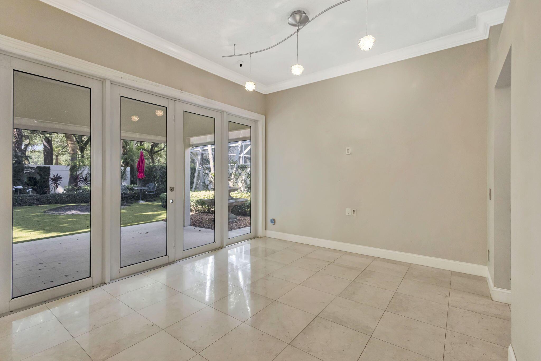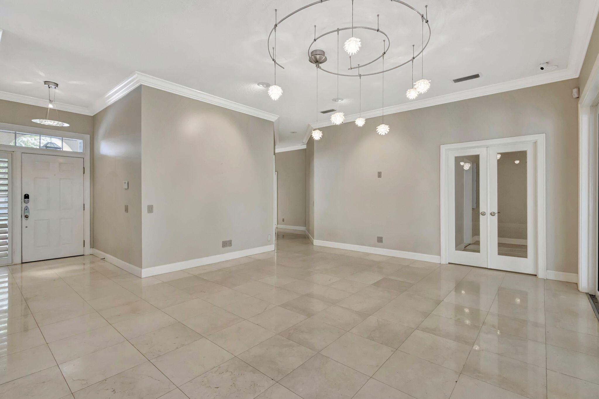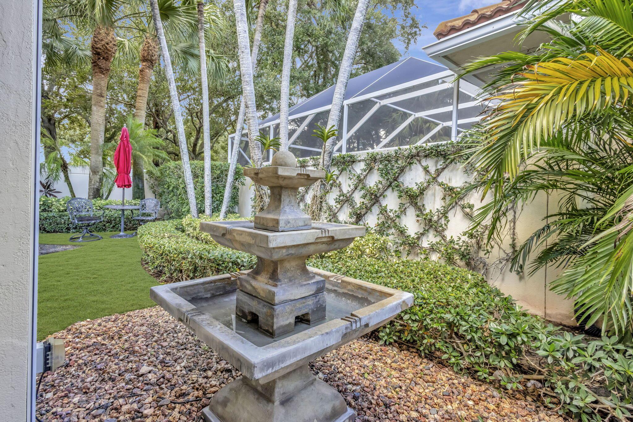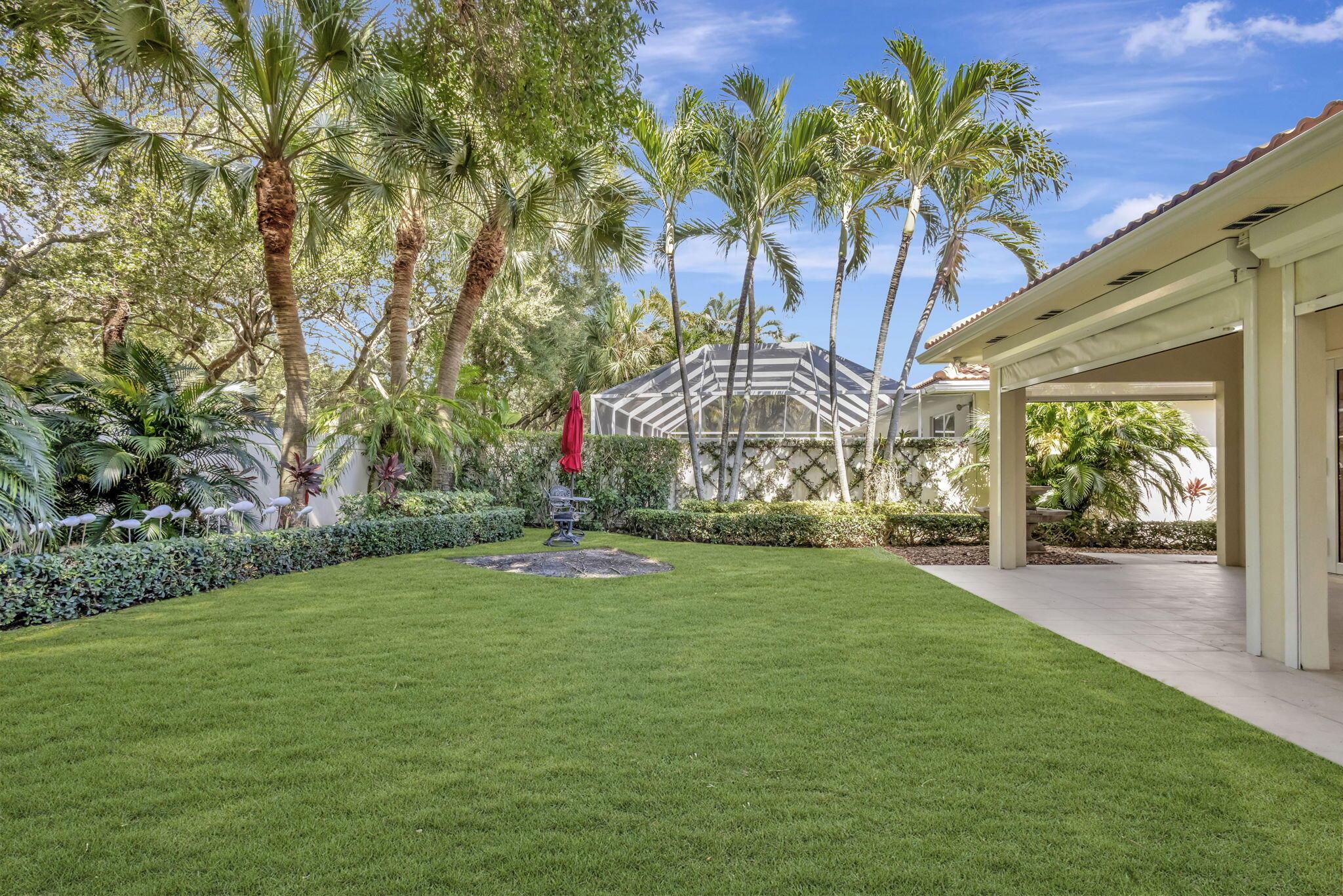 **Welcome to your own private tropical sanctuary, tucked away in the highly sought-after, guard-gated community of Oaks East.** This impeccably designed residence is truly move-in ready, blending refined finishes with thoughtful upgrades at every turn.Step inside and be greeted by soaring ceilings, elegant crown molding, custom baseboards, and stunning marble floors that flow seamlessly throughout the main living areas. The chef's kitchen and bathrooms boast gleaming granite countertops, while custom impact French doors stretch across the living space, opening effortlessly to your lush backyard retreat and coveted lanai. Every detail has been considered, from the three-inch plantation shutters to Lutron dimmable lighting for perfect ambiance day or night. Peace of mind comes