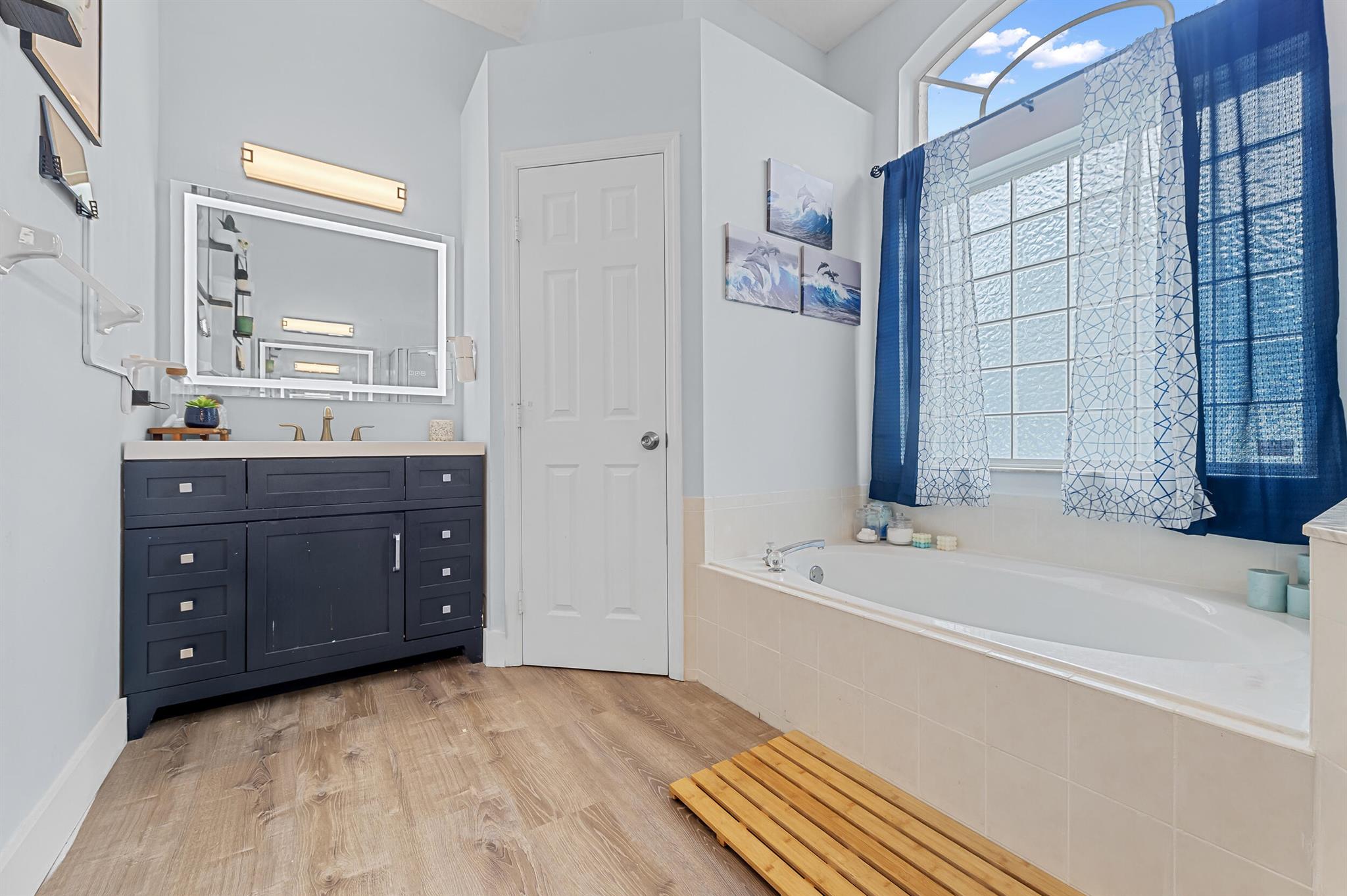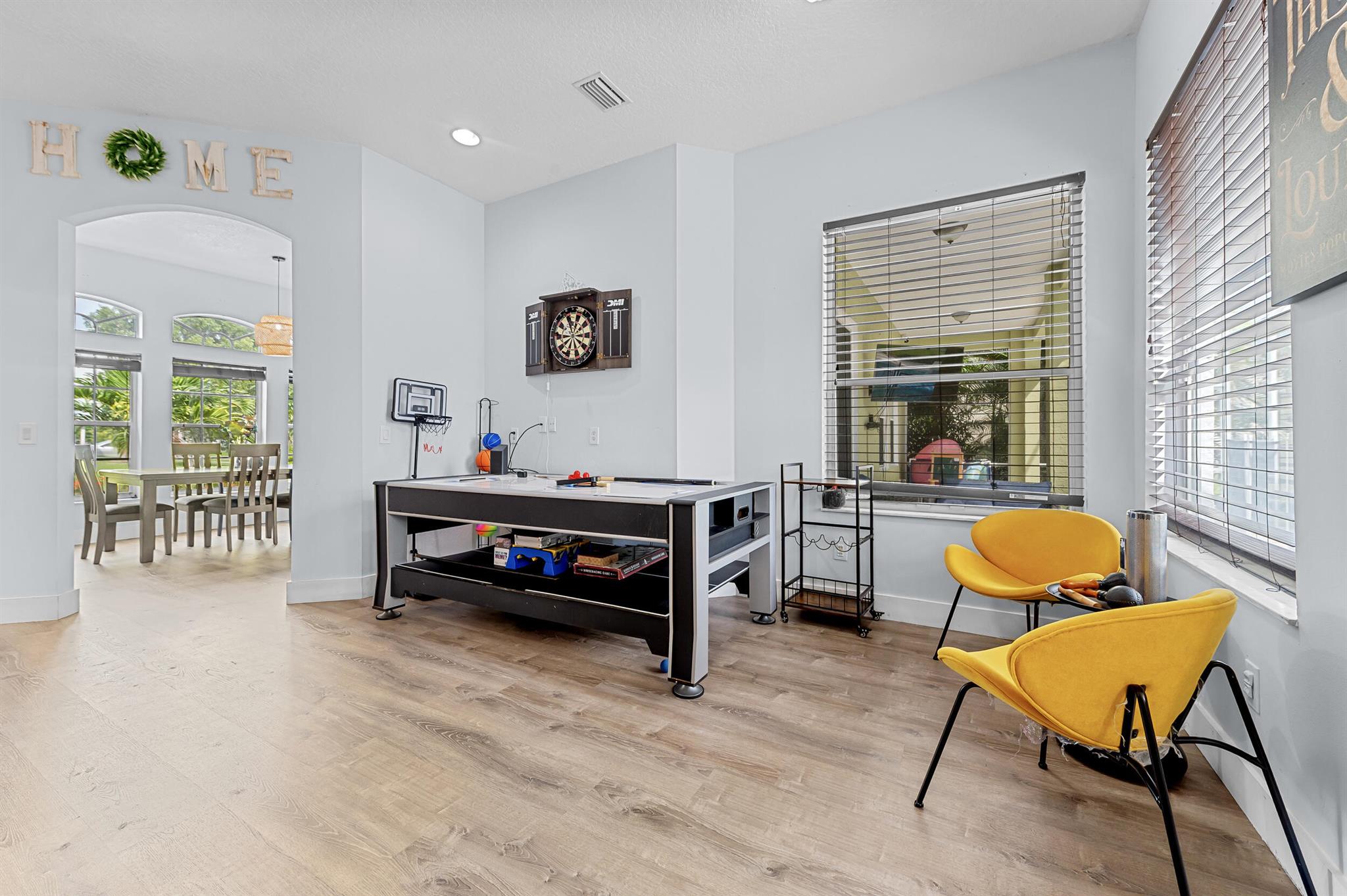 Beautifully Updated Pool Home with Modern Touches & Private Office! This move-in ready home features a brand-new roof, new water heater, new pool pump, and fresh interior paint. Enjoy all-new flooring throughout, modern light fixtures, and updated bathrooms with stylish new vanities and finishes. The kitchen and living areas flow seamlessly, complemented by a private office--perfect for working from home. Exterior highlights include lush new landscaping, an oversized driveway, updated garage door, plus a new alarm system. Stylish, functional upgrades throughout!