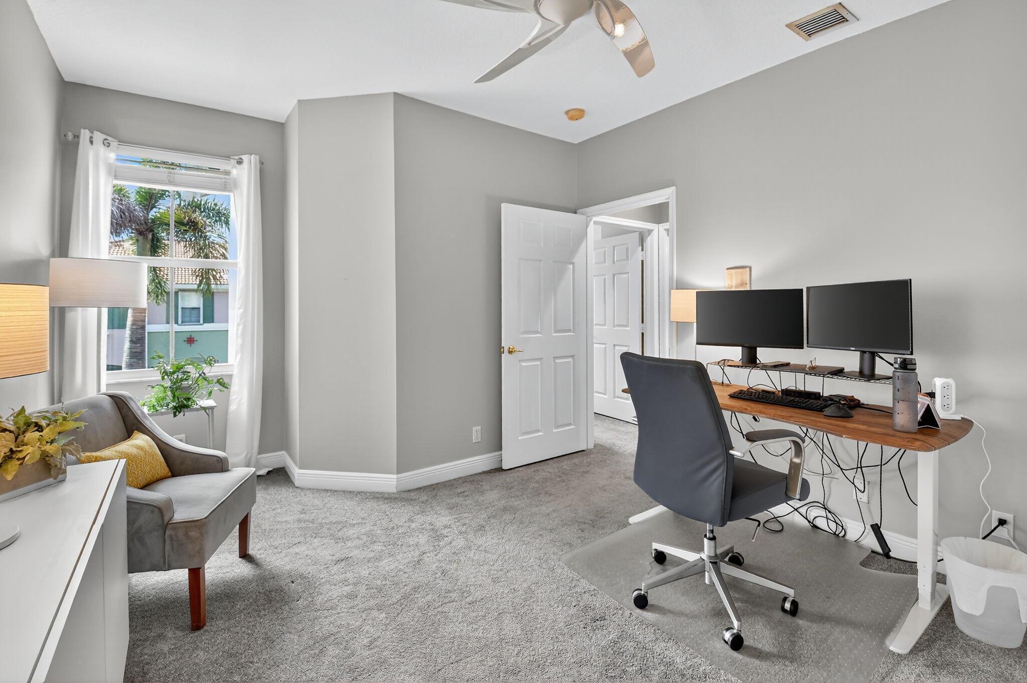 This dreamy, zen-like home offers an unparalled lifestyle, located just steps from the picturesque Intracoastal Waterway with PRIVATE BEACH access & resort style pool! Outstanding features include gleaming white lacquered kitchen cabinets with custom refrigerator panel that blends seamlessly, french doors,a screened lanai to enjoy coastal breezes, plus NEW ROOF & impact glass to provide security in a storm. Relax in the cozy den or use as an office. Enjoy your morning coffee on the private, lush fenced patio. The breathtaking Primary bedroom boasts a soaring ceiling, sitting area, closet the size of a small bedroom, & a bathroom with ''his and hers'' vanities, deep whirlpool tub & separate shower. All this is conveniently located near the shops, restaurants & cultural activities of