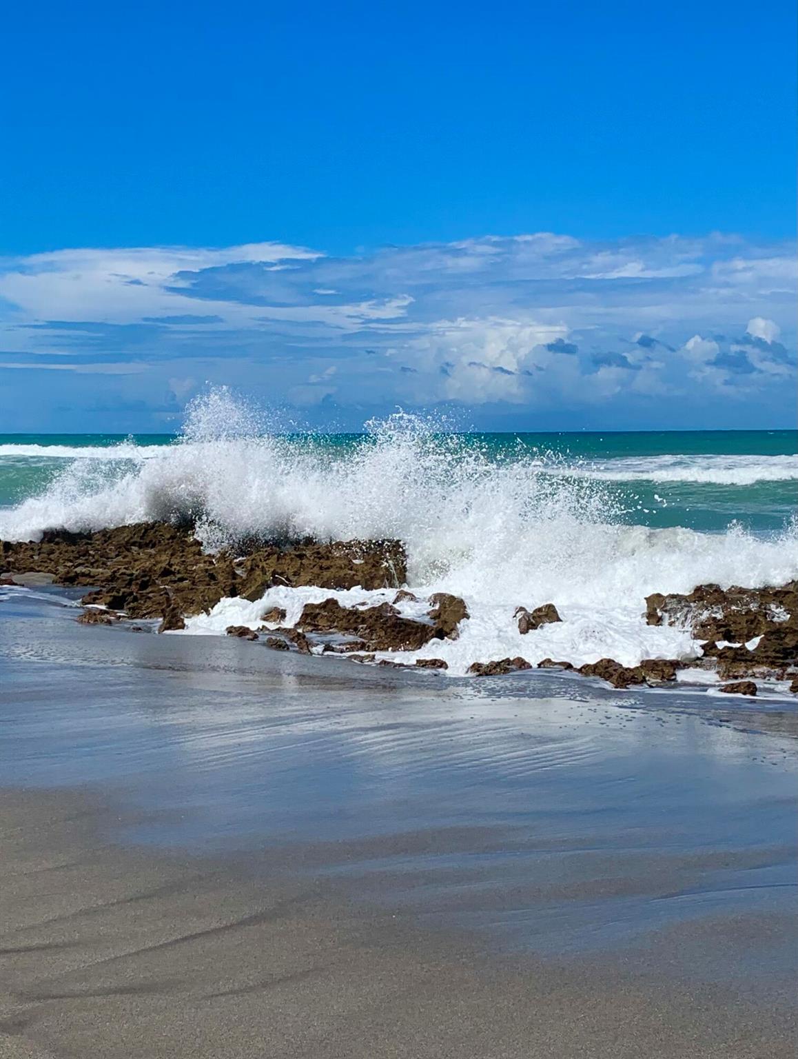 Discover your dream coastal retreat just minutes from Marcinski Beach and the Pier. This beautifully updated home features two spacious primary bedrooms and two and a half bathrooms. The newly renovated kitchen boasts stunning blue lower cabinets, elegant gray uppers, and quartz countertops, complemented by a state-of-the-art stainless steel appliance package with an oven air fryer. Enjoy the exquisite Brazilian pecan porcelain tile floors throughout, with cozy Berber carpet on the stairs. Modern conveniences include hurricane impact glass sliders, a hurricane-resistant front door, and a new washer/dryer. The private fenced patio with SunDek flooring offers a serene space, perfect for relaxation, complete with a shed for extra storage. The knockdown ceiling, lighting and paint scheme add