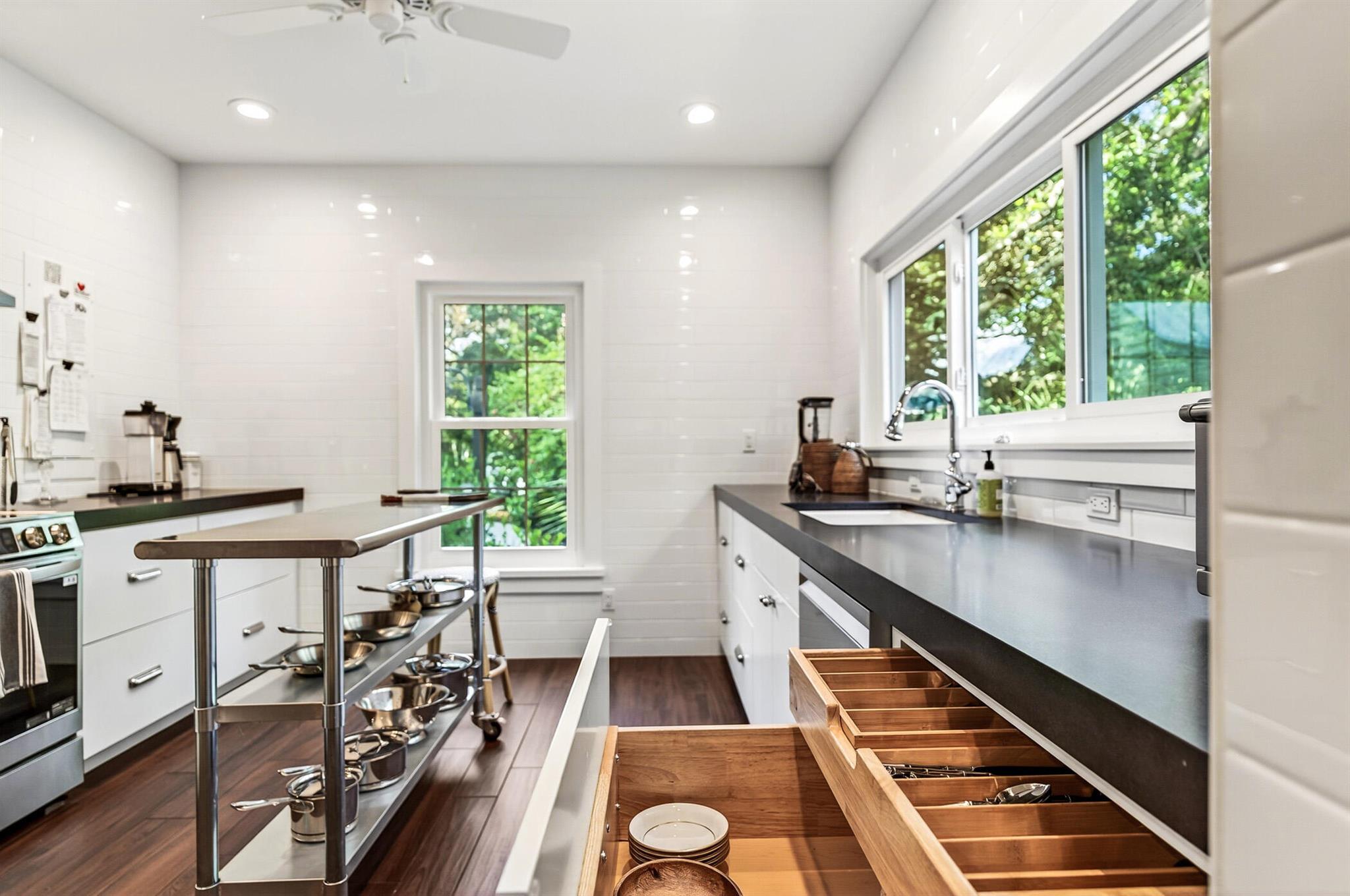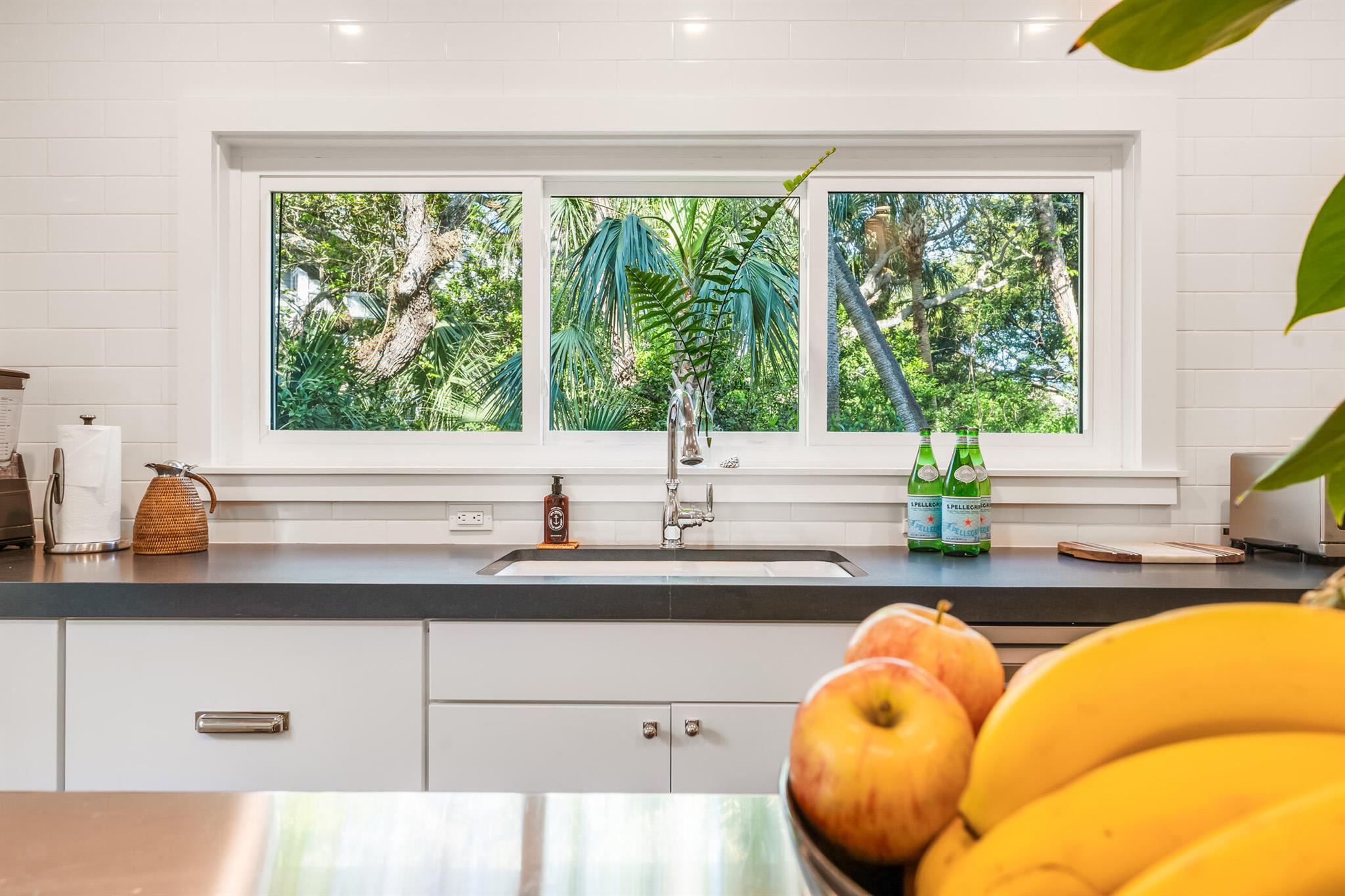 Meticulously renovated Sea Oaks Cottage, upgrades in the last 5 years include: Impact windows & doors, updated plumbing & subfloor, new HVAC & hot water heater, upgraded lighting, & new metal roof. The exterior showcases a beautiful garden nestled beneath historic oaks, featuring custom landscape lighting, new native landscapes with a nature walkway, & a crushed limestone patio. Luxurious features in the primary bath include an electric towel warmer, Speakman shower head, Toto Washlet toilet, floor-to-ceiling tile, & freestanding tub. The kitchen has been methodically redesigned to include custom cabinetry, high-end appliances, thickened-edge granite counters, & large picture window. Complete with custom millwork, solid-core interior doors, new flooring & Karastan carpet in the bedrooms.