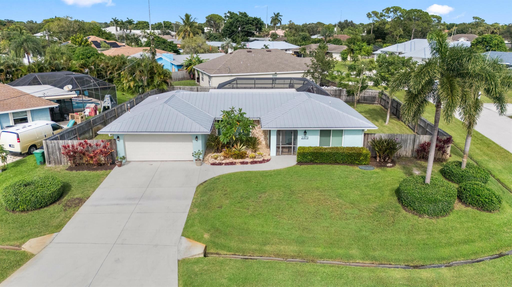 Welcome to this charming 3BR/2BA pool home on a corner, fenced-in lot in the heart of Port St. Lucie. Inside, enjoy tile flooring throughout, updated bathrooms, stainless steel appliances, and beautiful soft-closing kitchen cabinets. Thoughtfully updated for peace of mind, this home features a metal roof (2018), impact windows & doors (2020), flat roof (2023), sprinkler system (2023), pool pump (2020), and water heater (2019). The private pool and spacious yard make this property perfect for entertaining and Florida living. Conveniently located near shopping, dining, and schools!