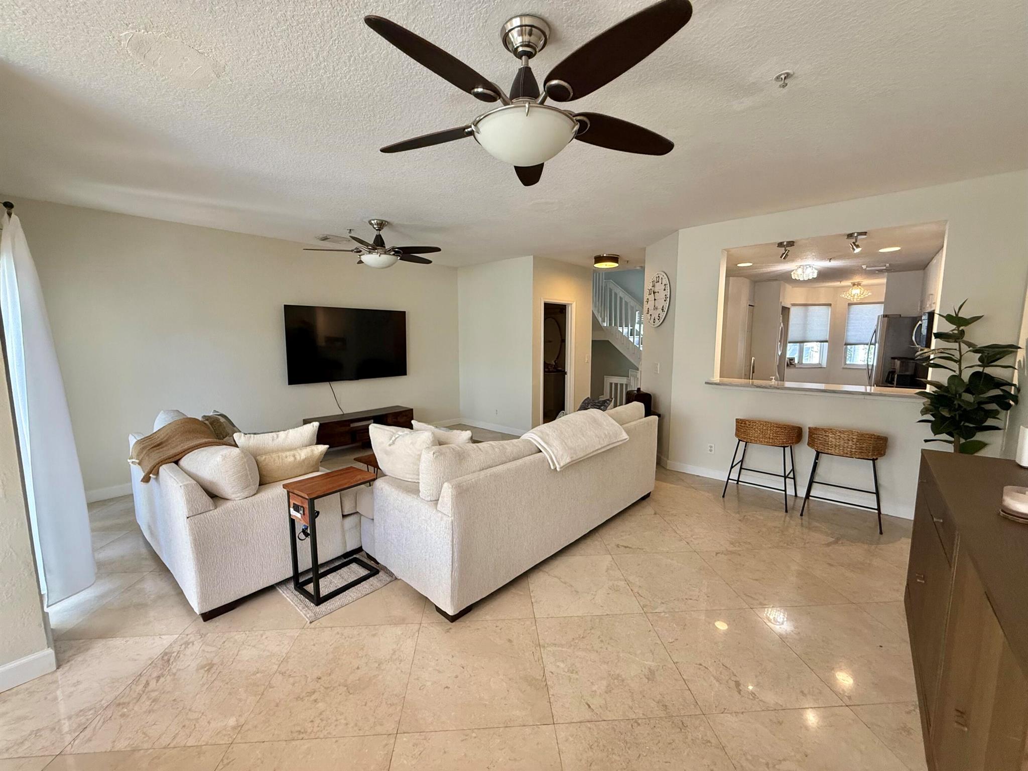 Welcome to Coastal Bay, a charming gated community just minutes from the beaches and downtown Delray. This 3-story, 3-bedroom, 3.5-bath townhome with a 2-car garage features elegant marble flooring and a versatile entry-level bedroom with a full bath - perfect for guests, a home office, gym, or media lounge.The second floor boasts an open-concept kitchen with 2023 LG stainless steel appliances, generous counter space, a dining area, a large living room, and a convenient half bath. Upstairs, the primary suite offers a walk-in closet and an updated master bath, while the secondary bedroom includes its own private full bath.Enjoy a vibrant, family-friendly community with a pool, jacuzzi, fitness center, internet, and cable - all included in the affordable HOA.