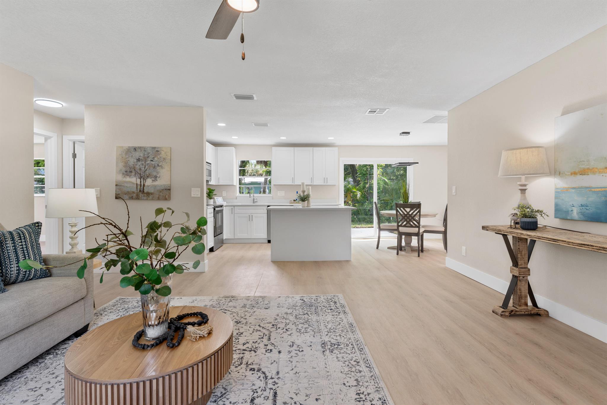 Welcome to this newly renovated home that sits on a large private corner lot in a quiet neighborhood. The kitchen sports brand new white shaker soft close cabinets with white sparkling quartz countertops. Both renovated bathrooms are beautiful, and the whole home has a warm paint color throughout with the luxury vinyl plank floors throughout that adds a consistent, modern look. The roof, the air condition system, the water heater, and all appliances are all brand new 2025 installs. This is the home you have been searching for, come see it today before it gets snatched off the market!