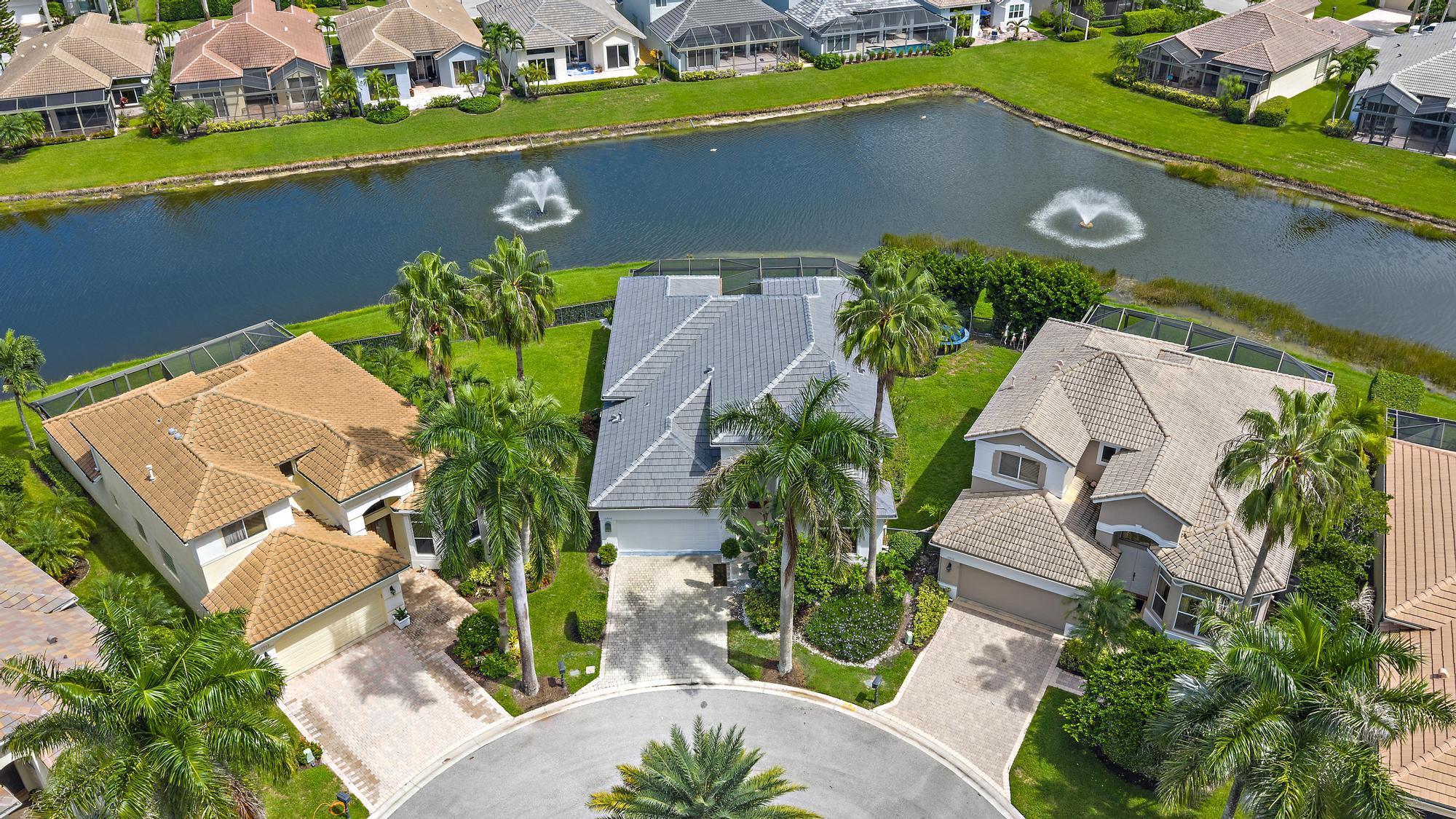 This rare and elegant Hamilton II former builder's model is ideally situated on a premium cul-de-sac lot with sweeping water views--and it's move-in ready with a brand-new roof (2025), new stainless-steel kitchen appliances (2025), new main HVAC (2023), and a freshly painted exterior (2024). Offering over 2,900 square feet, 4 bedrooms, 3.5 baths, plus a loft, this spacious residence combines timeless design with valuable recent upgrades. In addition to the over-sized, pie-shaped 90 x 100 ft lot, this home offers a screened patio, pool, and spa overlooking the tranquil lake and fountain. Conveniently located within the Grande community at the Club at Ibis, this home offers a premium location and views within a world-class, award-winning Platinum Club of America.