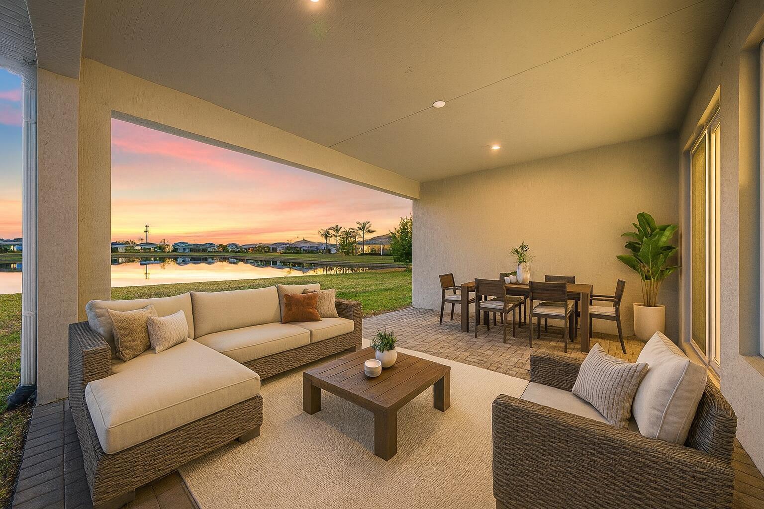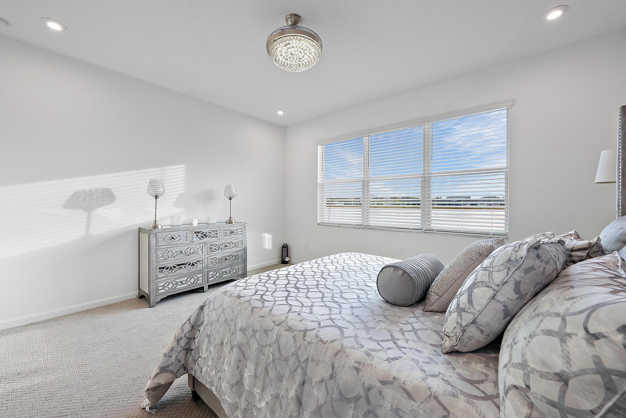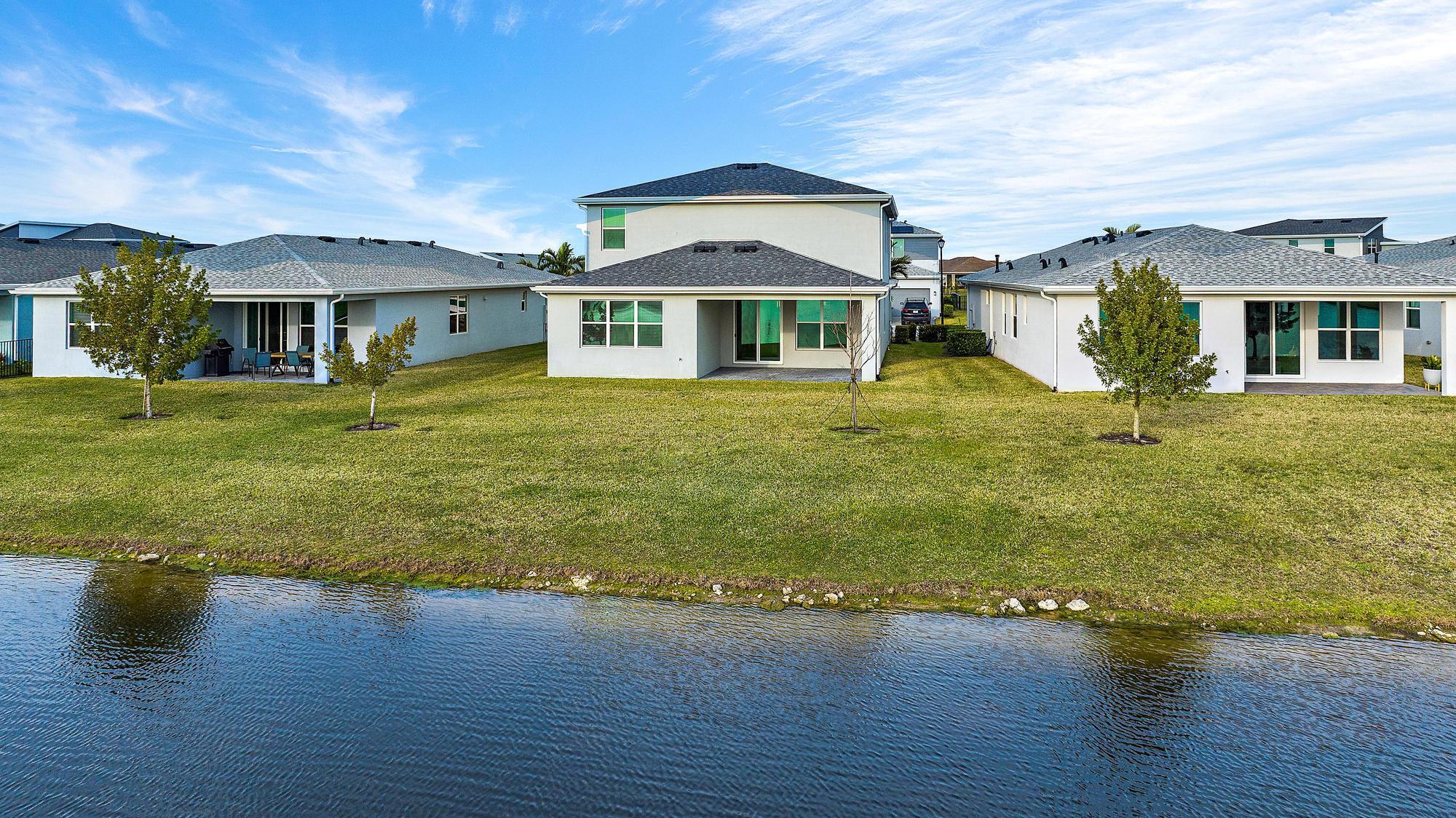 Built in 2022 and beautifully sited on a shimmering lake in Emery, this residence pairs refined finishes with everyday ease. A stone-accented contemporary elevation makes a striking first impression, while the light-filled foyer and soaring ceilings set an airy tone. The chef's kitchen features custom cabinetry, premium countertops, and high-end appliances. The ground-floor primary suite is a serene retreat with a spa-inspired bath. Upstairs, a spacious loft and guest bedrooms offer comfortable separation and privacy. With full impact windows and doors for security and efficiency, the home blends beauty and practicality. Emery residents enjoy resort-style amenities including a pool, fitness center, and walking trails.