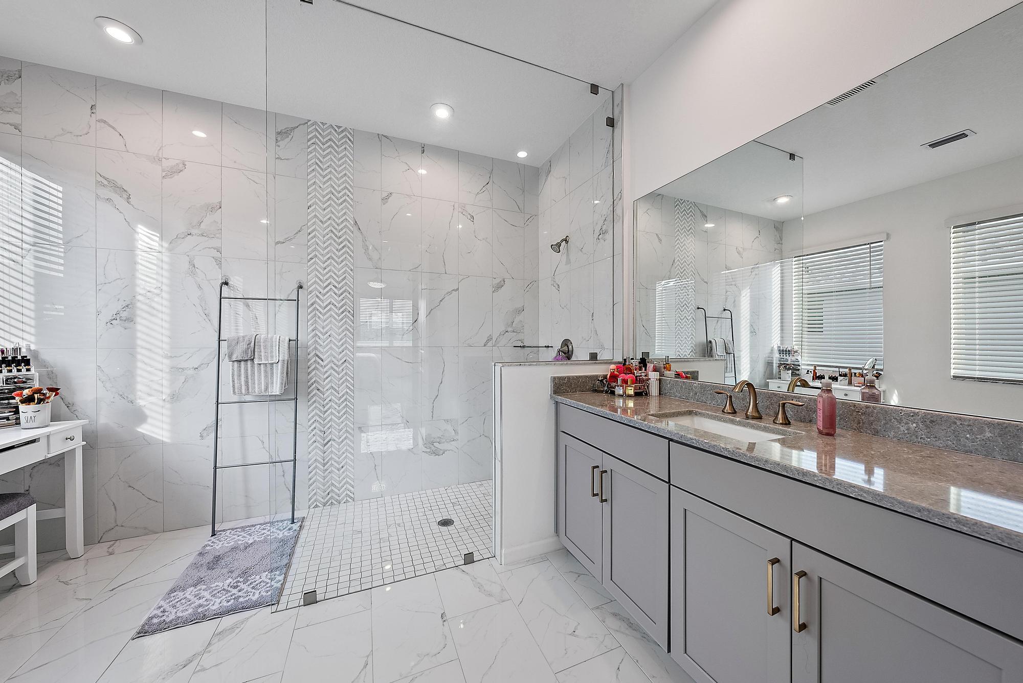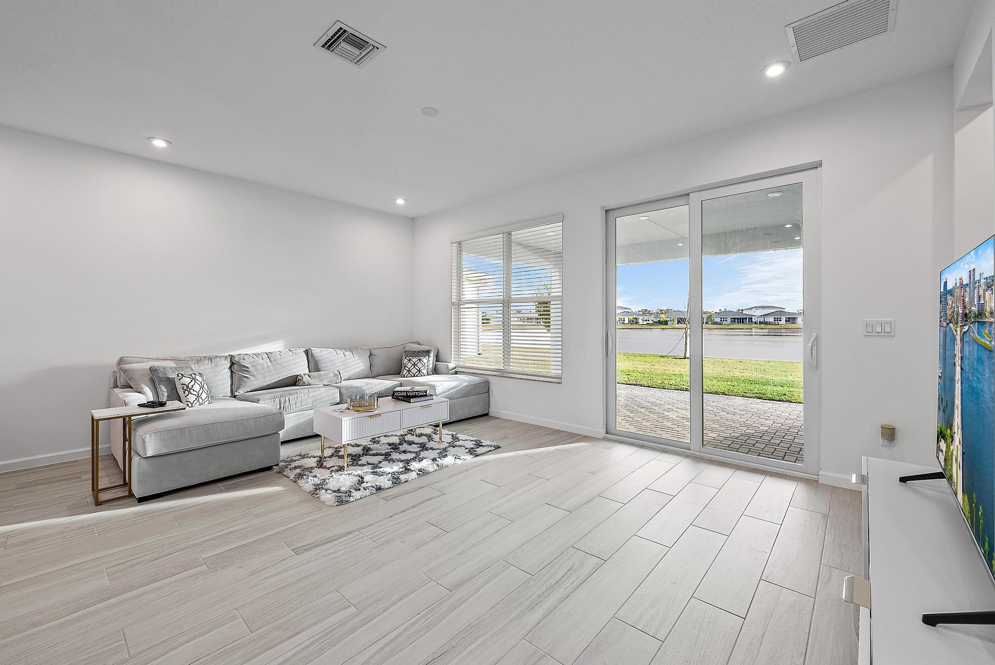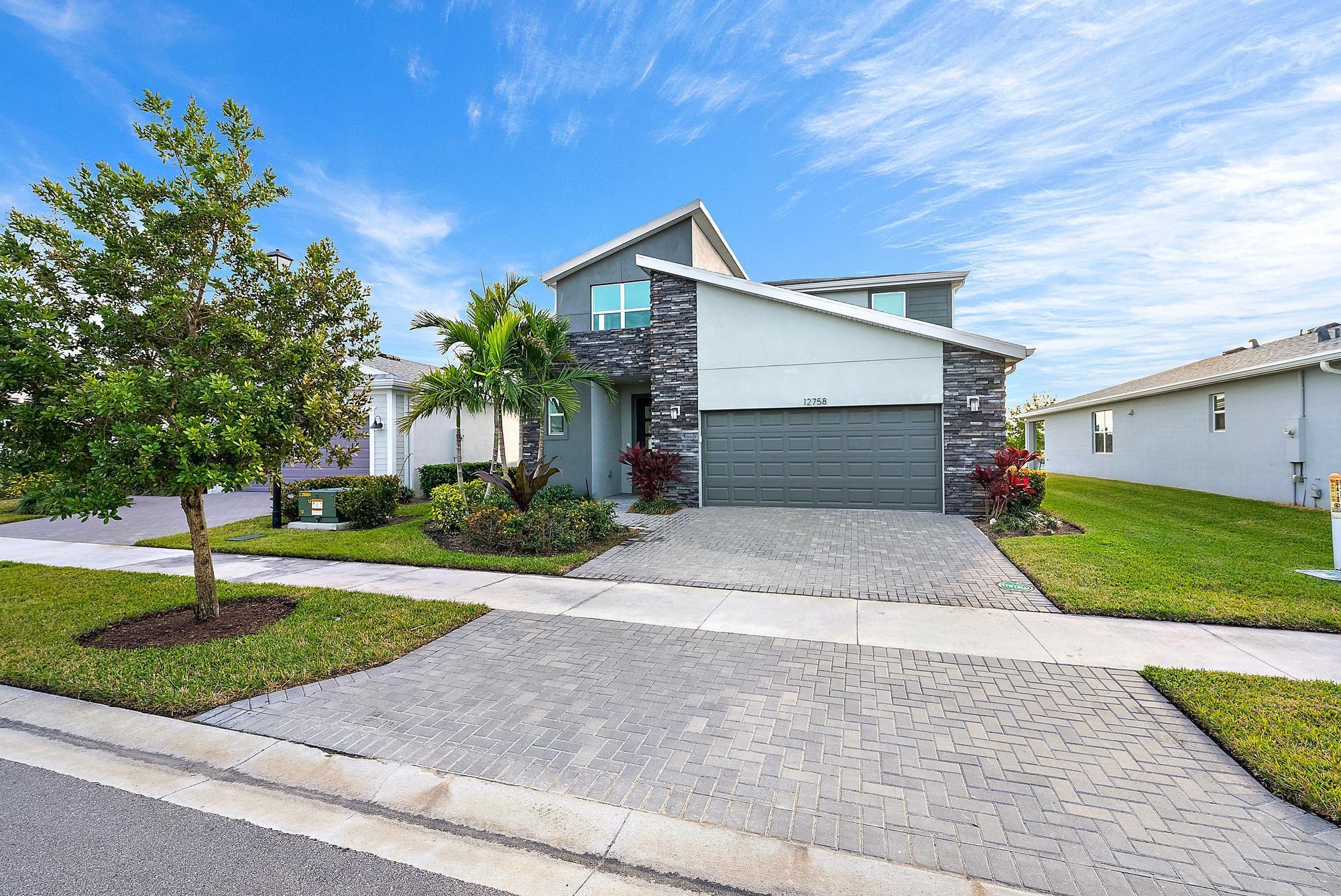 Built in 2022 and beautifully sited on a shimmering lake in Emery, this residence pairs refined finishes with everyday ease. A stone-accented contemporary elevation makes a striking first impression, while the light-filled foyer and soaring ceilings set an airy tone. The chef's kitchen features custom cabinetry, premium countertops, and high-end appliances. The ground-floor primary suite is a serene retreat with a spa-inspired bath. Upstairs, a spacious loft and guest bedrooms offer comfortable separation and privacy. With full impact windows and doors for security and efficiency, the home blends beauty and practicality. Emery residents enjoy resort-style amenities including a pool, fitness center, and walking trails.