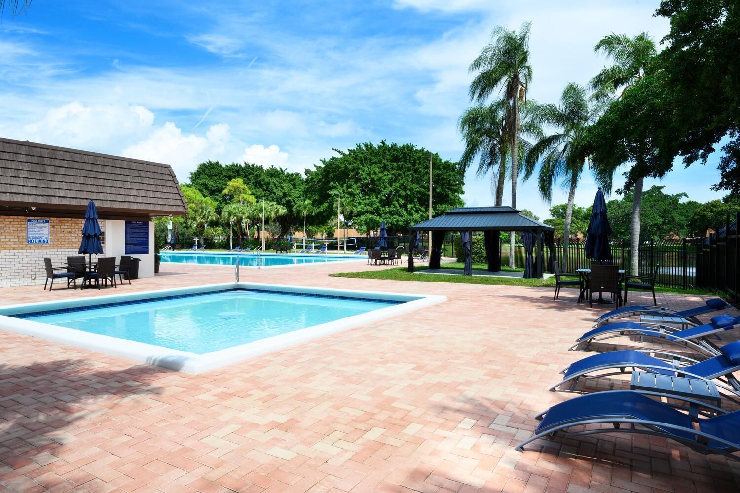 Welcome to this fully updated and move-in ready townhouse offering 3 bedrooms and 3 full baths, perfectly situated in the well-maintained community of Sherwood Lakes. Designed with both comfort and functionality in mind, the home features a spacious open-concept layout ideal for modern living. One bedroom and full bath are conveniently located on the first floor. The updated kitchen showcases rich cherry cabinetry, granite countertops, and sleek stainless appliances. All bathrooms have been tastefully renovated with contemporary finishes. Step outside to a large, fenced-in patio--an ideal space for entertaining, dining al fresco, or simply relaxing in privacy. Additional upgrades include a newer roof (2021) & accordion shutters for storm safety. Enjoy the best of South Florida life