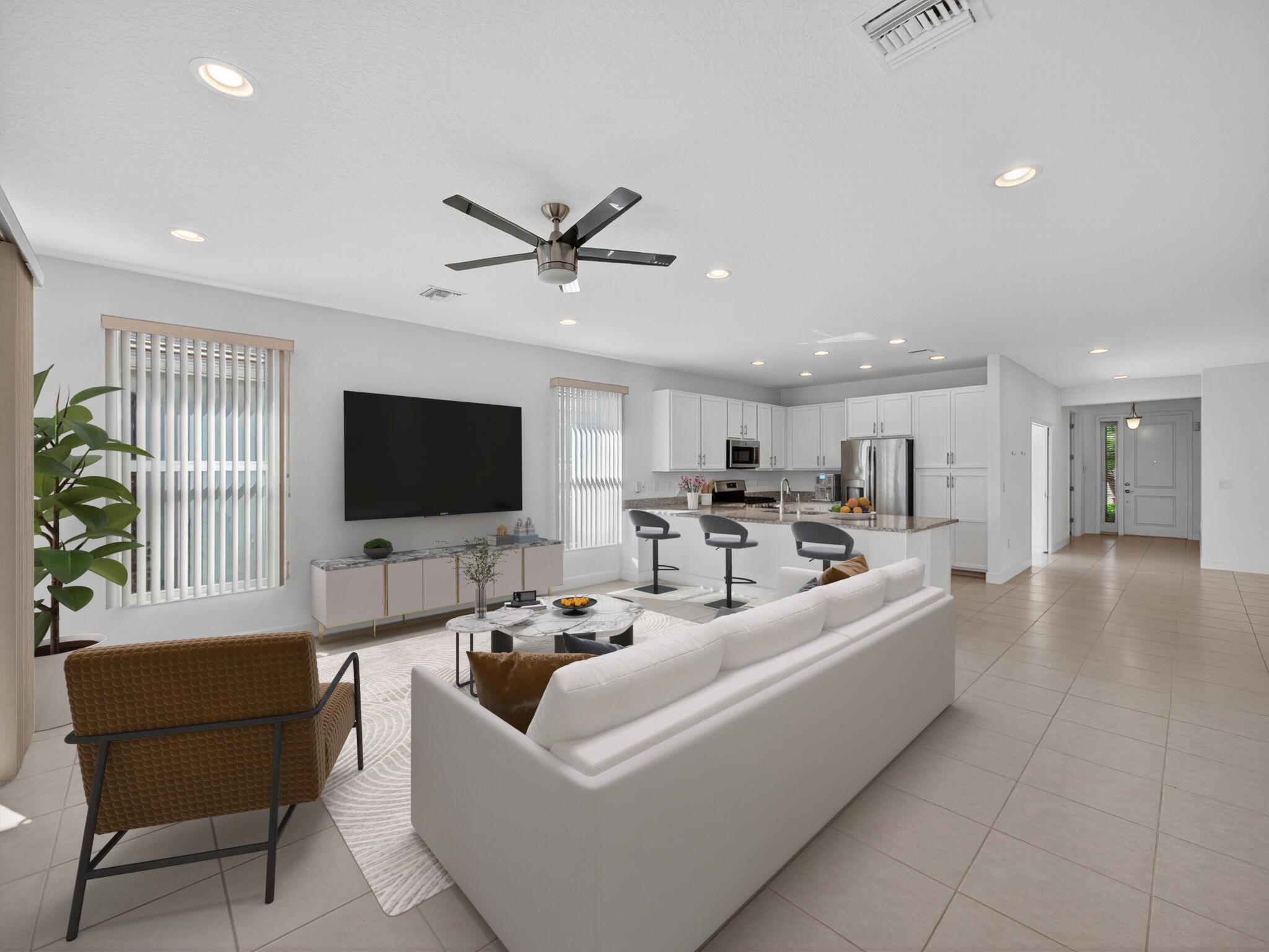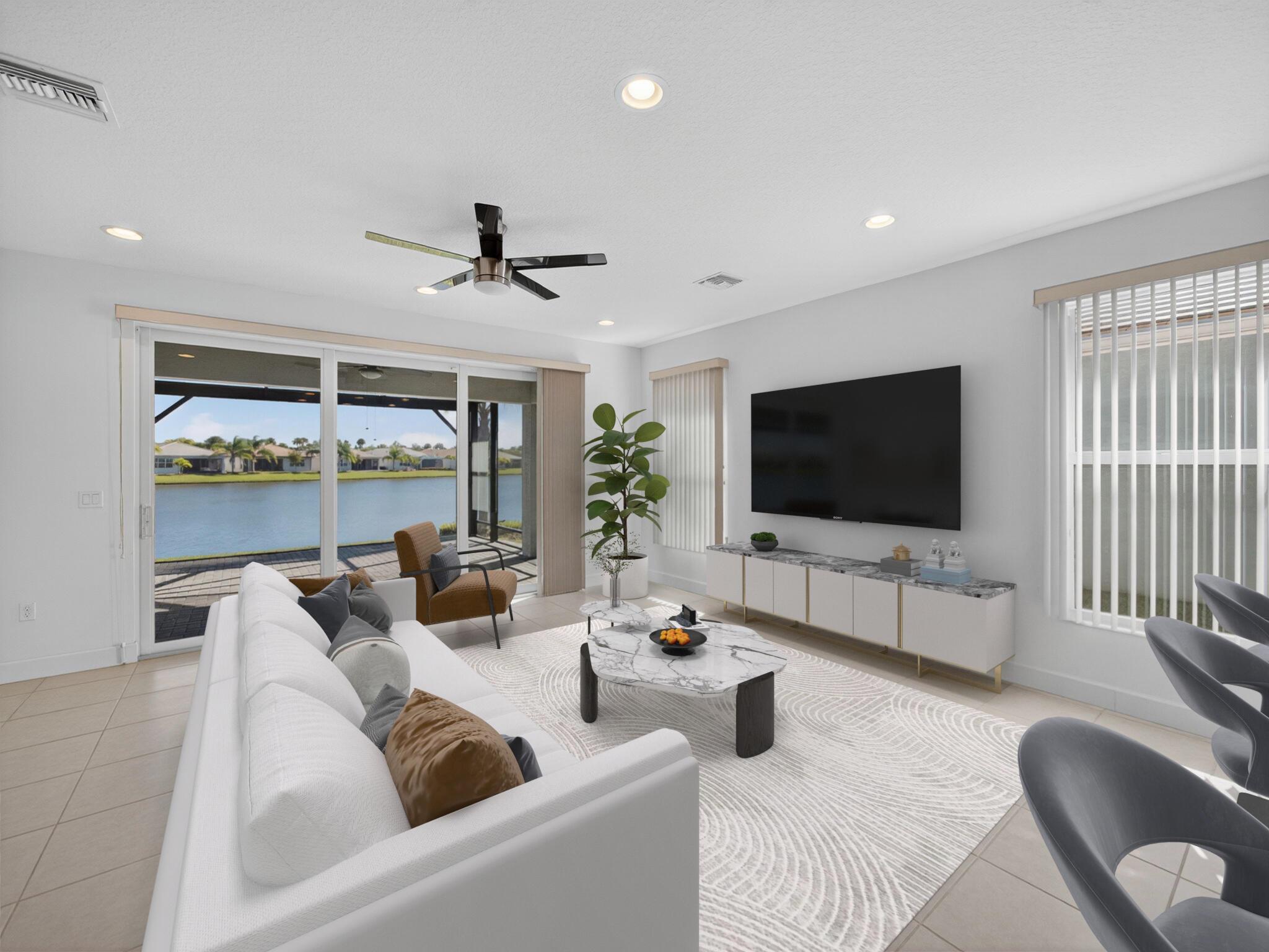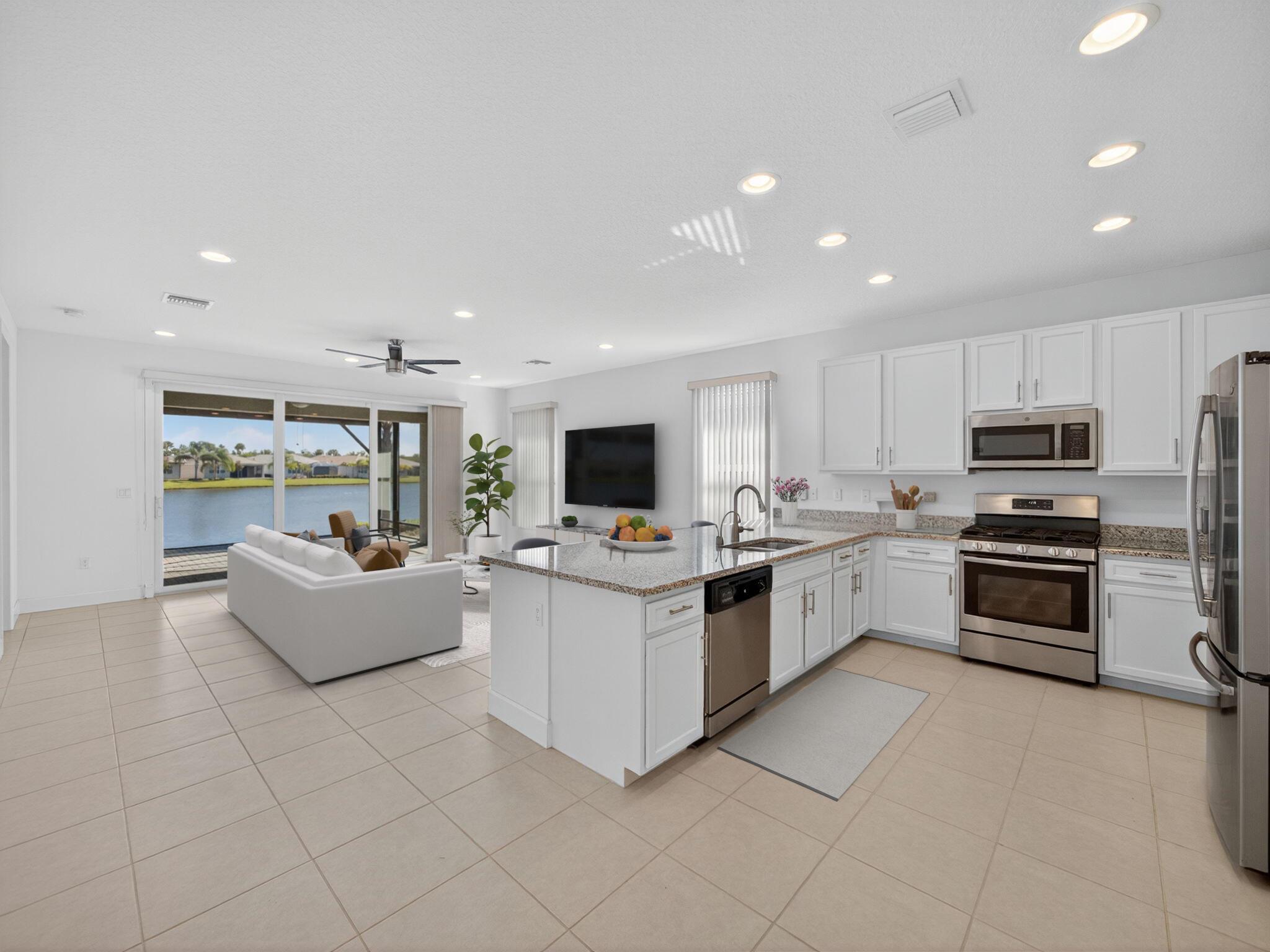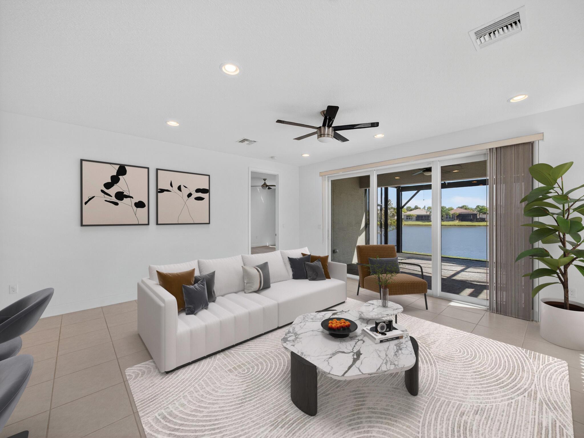 Why wait 10+ months to build when you can move right into this stunning, lakefront home today? Not only is this residence already richly upgraded with both builder and owner enhancements, but it also offers an incredible opportunity to personalize the finishing touches to your taste--at far more affordable prices. Nestled in the highly sought-after 55+ community of Valencia Cay at Riverland, this lightly lived-in second home features 3 bedrooms, 2 bathrooms, and a versatile den--perfect as a private guest space, hobby room, or home office. The gourmet kitchen serves as the home's centerpiece, designed for both elegance and functionality.
