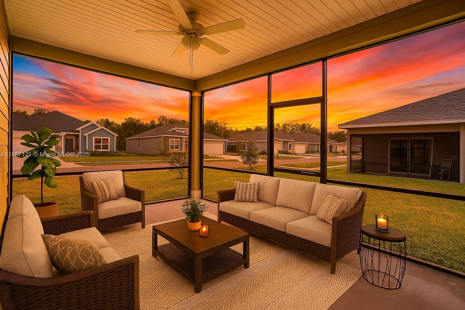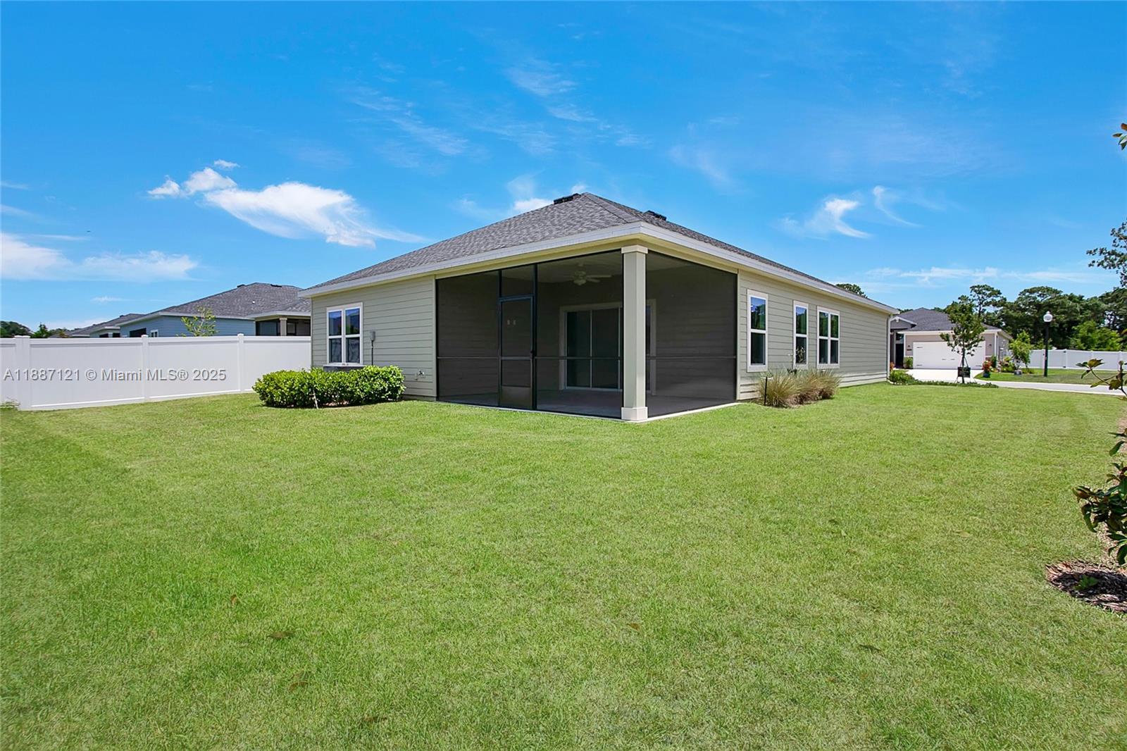 Exceptional Value in Ocala – Move-In Ready Under $300K! This like-new Halle Model, completed July 2023, offers 3 bedrooms, 2 baths, and a versatile den in one of Ocala’s premier 55+ communities. With 9’ ceilings, natural light, and wood-look tile throughout, it blends style and function. The kitchen features Frigidaire appliances, 42” white cabinets, and Carrara quartz counters. Primary suite has dual sinks and walk-in closet. Extras: smart home tech, eco irrigation, laundry w/ washer, dryer & sink, plus 2-car garage w/ attic. Relax in the screened lanai or enjoy the corner lot with room for a pool. Low HOA covers internet/cable; no CDD. Amenities include pool, pickleball, bocce & shuffleboard. Close to shopping, dining, medical, trails & World Equestrian Center. Motivated seller!