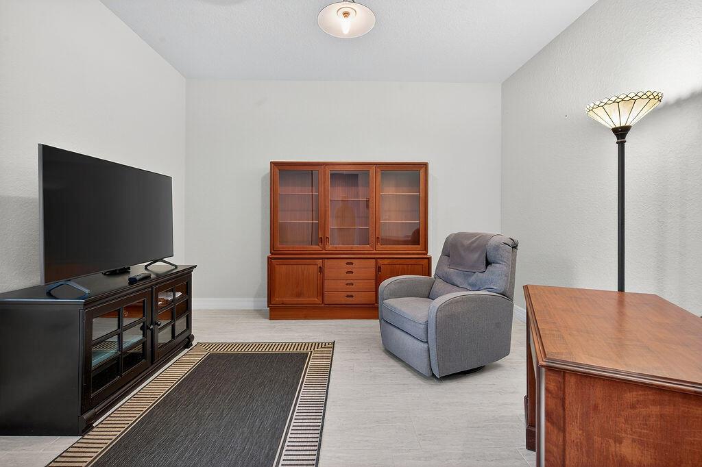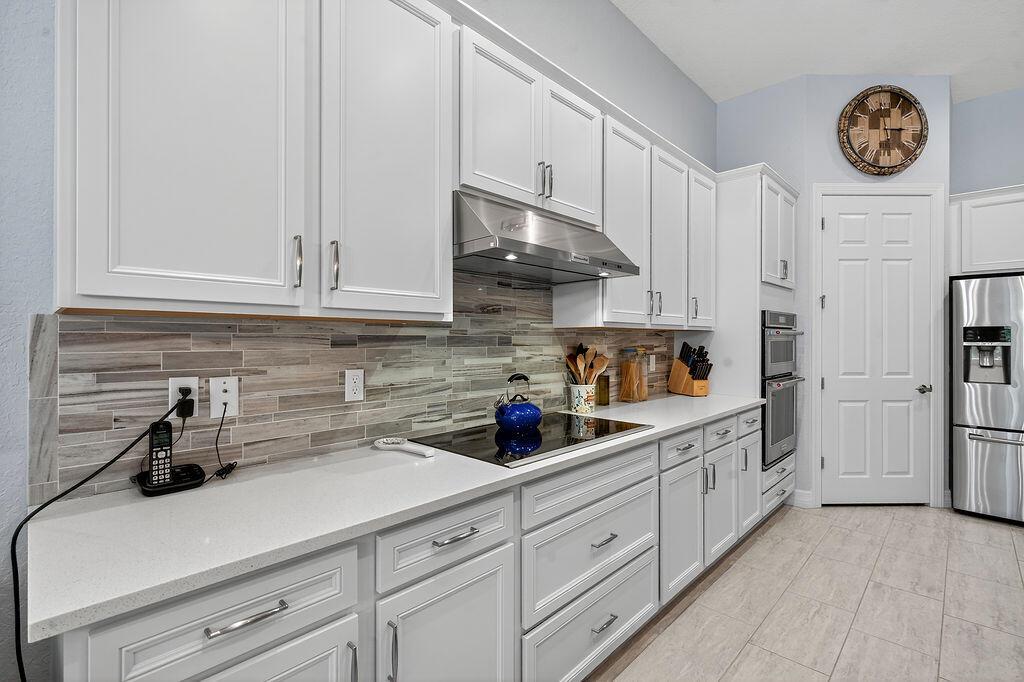 Welcome to Copperleaf - One of Palm City's Most Sought-After Communities!This beautifully maintained coastal themed Pulte Pinnacle model offers the perfect blend of luxury, comfort, and functionality--all on one spacious level. Nestled on a pie-shaped oversized lot, this 3-bedroom, 3-bath home (including 2 ensuite baths) features a split floorplan with a dedicated home office adorned with custom barn doors, ideal for work or quiet retreat.The heart of the home is the open-concept, upgraded kitchen, boasting taller cabinets, an expanded center island, and ample space for entertaining. Impact windows throughout offer peace of mind, while allowing natural light to pour in.Step outside to your private, screened pool area with crosswind heat pump. The serene