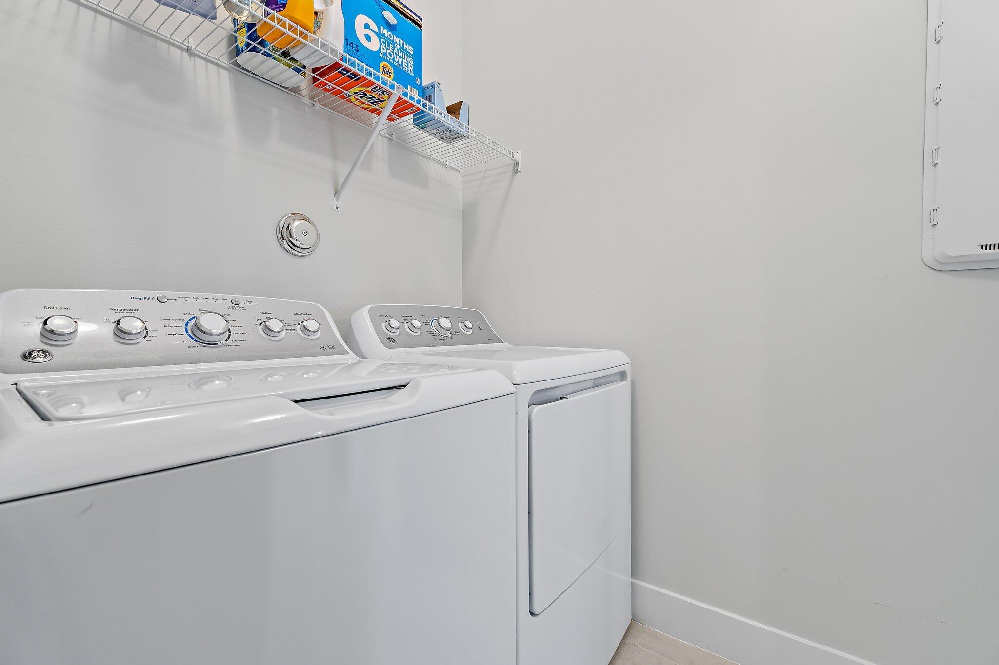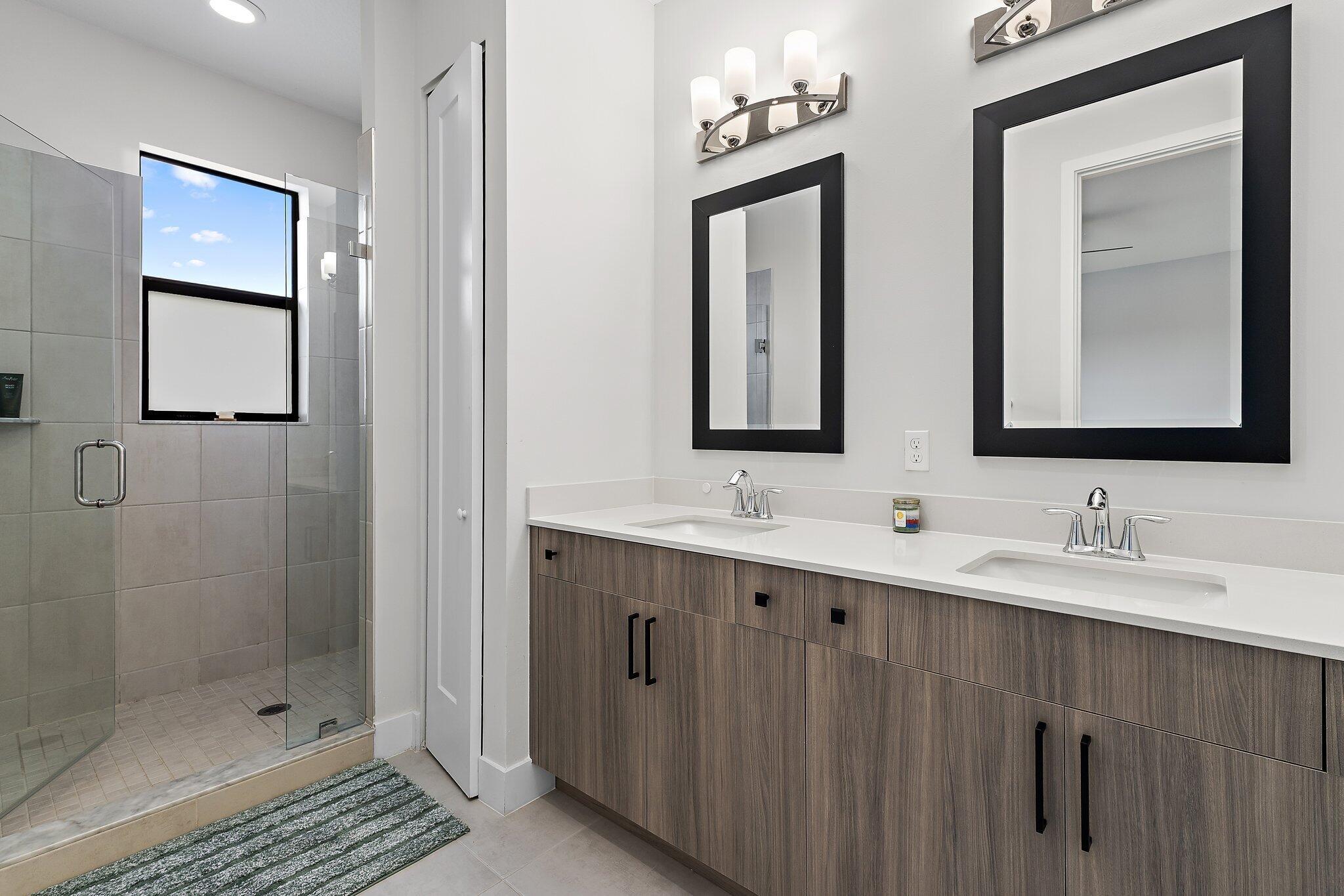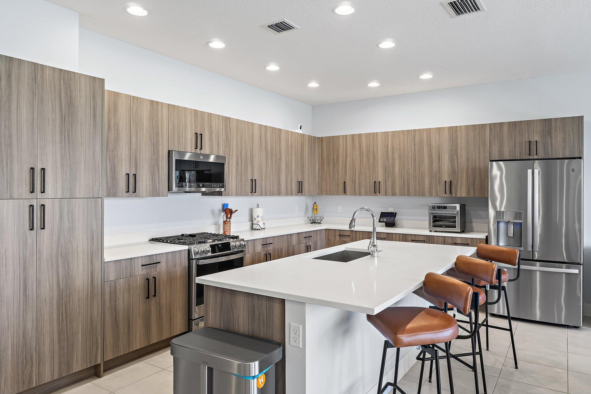 Newly constructed in 2023- this 4 bedroom, 3.5 bath, 2 car garage CBS home is designed for both style and comfort. Inside, the open-concept design features tile flooring throughout, a gourmet kitchen with upgraded cabinetry, farmhouse sink, quartz countertops, and a gas range. A private guest suite with full bath is conveniently located on the first floor, while the upstairs hosts the primary suite, two additional bedrooms, 2 full baths, oversized loft, custom bedroom closet built-ins, and laundry room with mud sink. Step outside to your own private oasis featuring a brand-new oversized saltwater pool with heated infinity spa, and splash pad, all overlooking serene lake views. The fully fenced yard and spacious covered patio create the perfect space for outdoor entertaining.