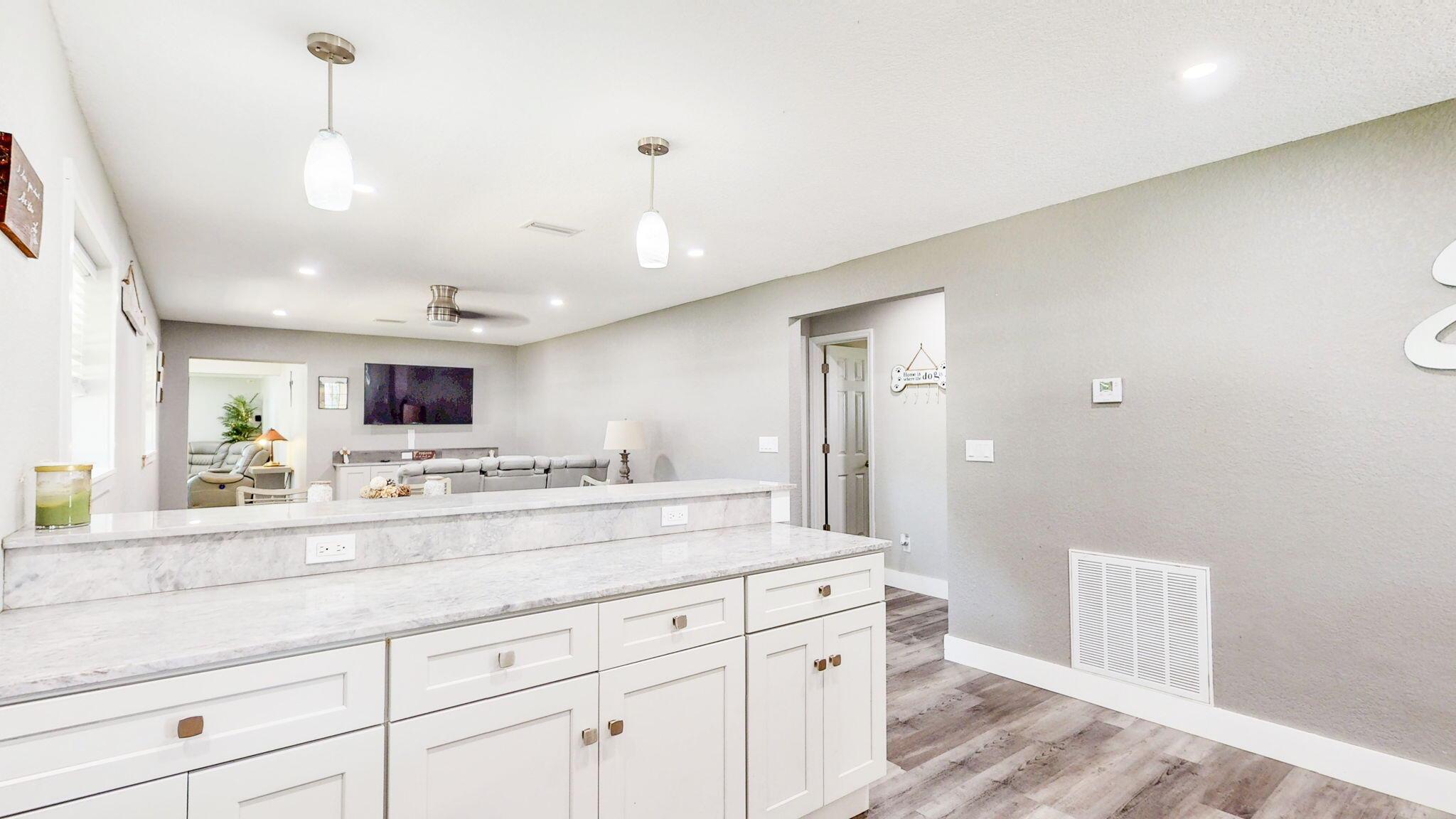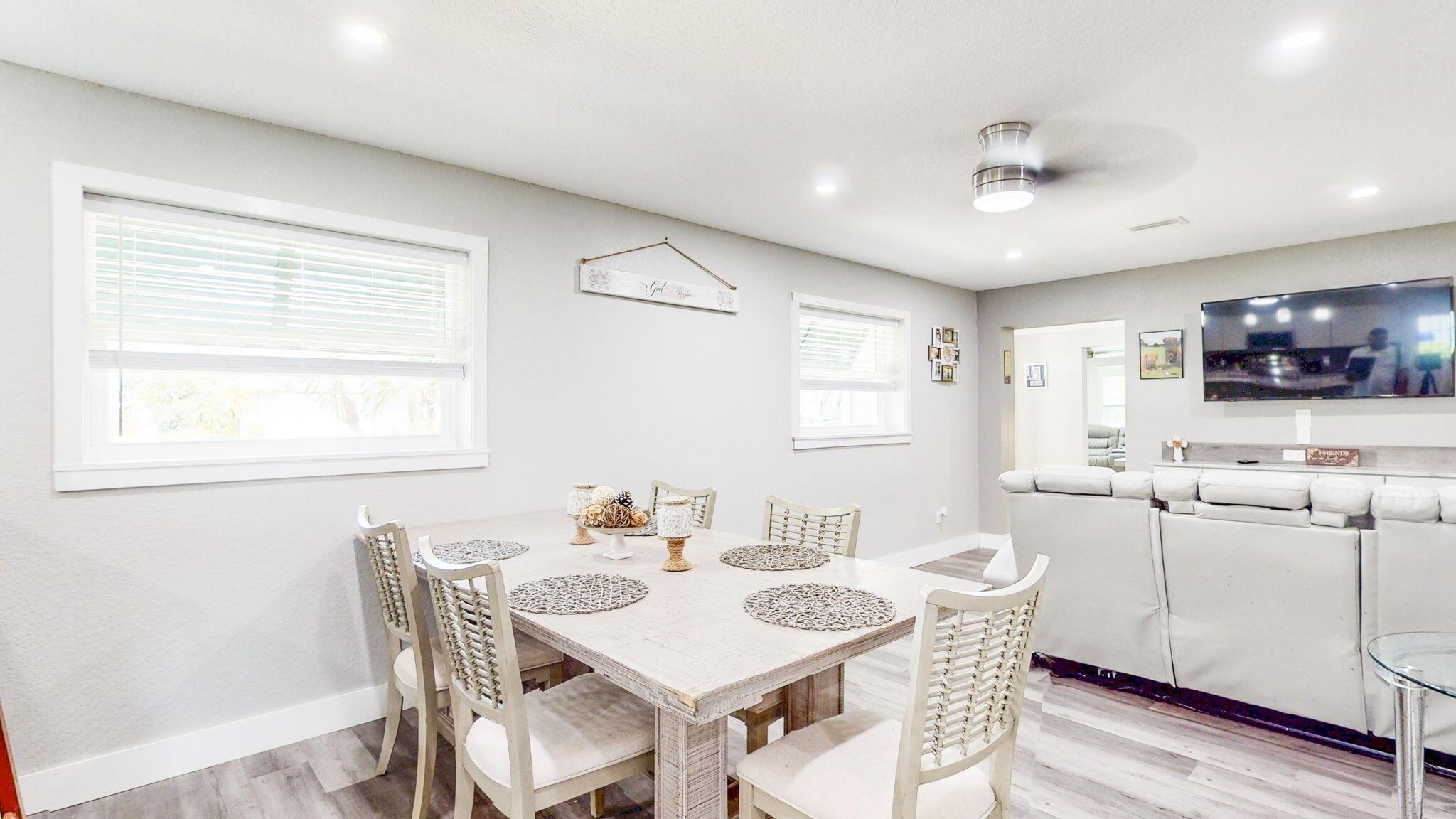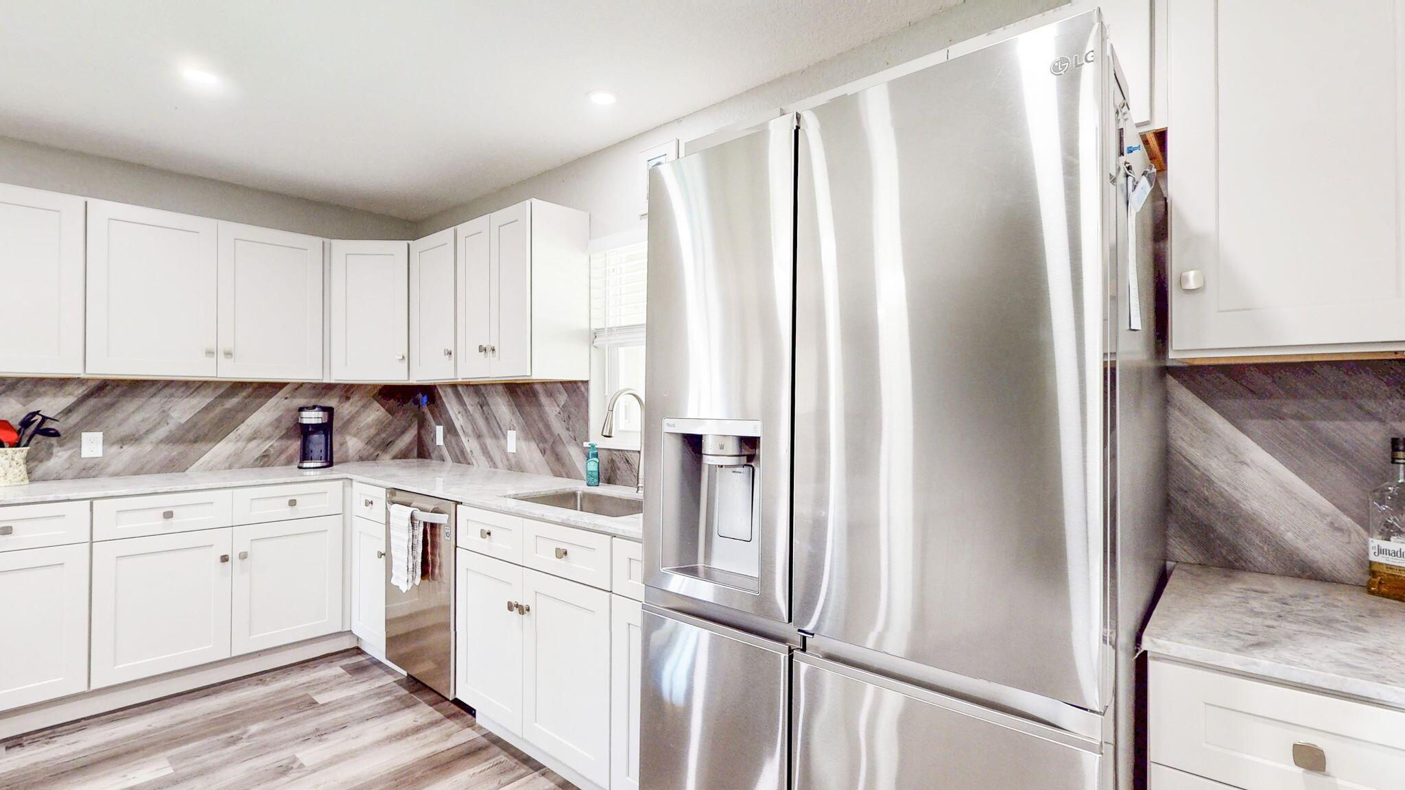 Price Drop! Welcome to this beautifully remodeled 4-bedroom, 3-bathroom home. Designed for both comfort and functionality, the property offers a spacious layout and a wide range of modern enhancements. Inside, you'll find luxury vinyl flooring throughout, two new air conditioning systems and two new hot water heaters, The guest bathroom features a jacuzzi tub, and impact windows and doors provide energy efficiency and storm protection. The home is also equipped with a setup for a whole-house generator. The kitchen, baths, and living spaces have all been completely remodeled, creating a fresh and move-in ready environment. Outdoor living is maximized with a wrap-around porch finished with Trex decking, a fire pit in the front yard, a carport, and a detached garage. The expansive