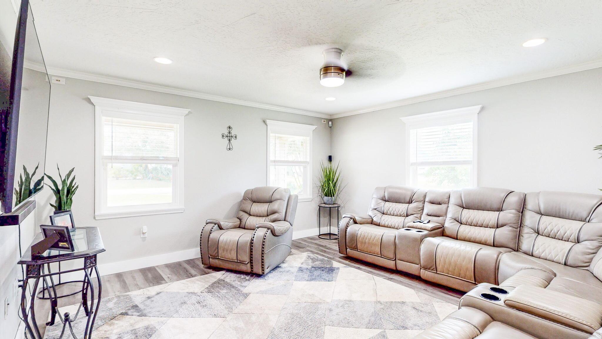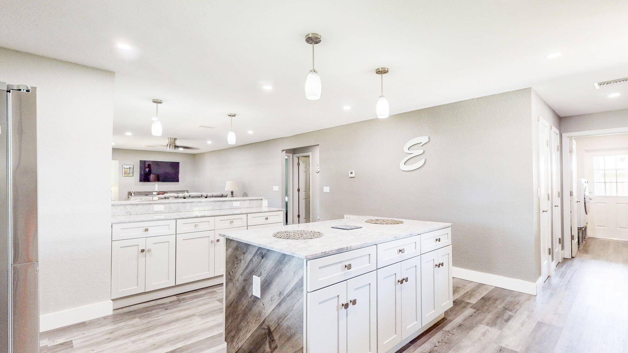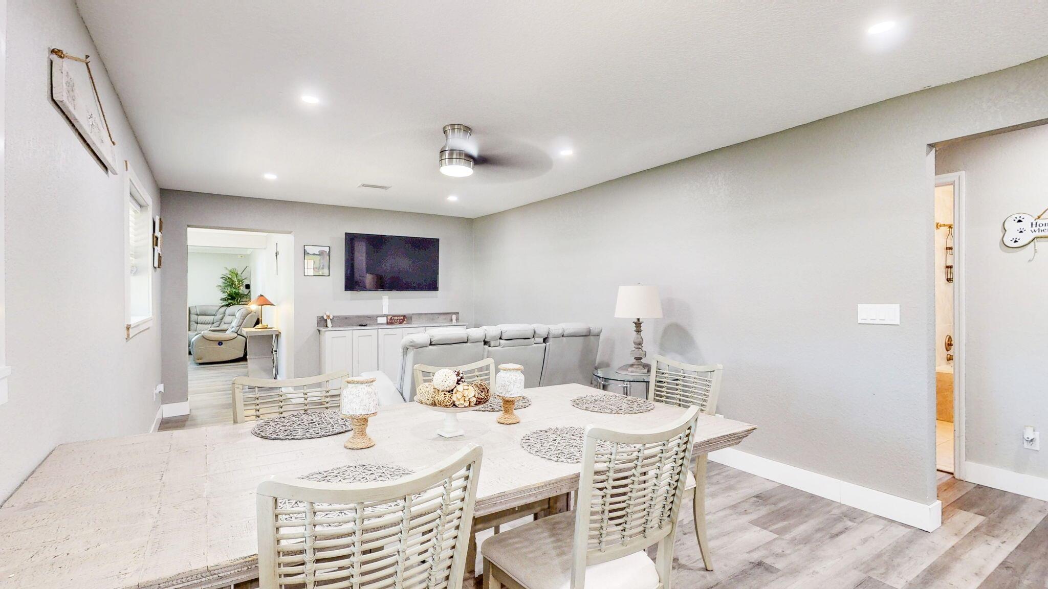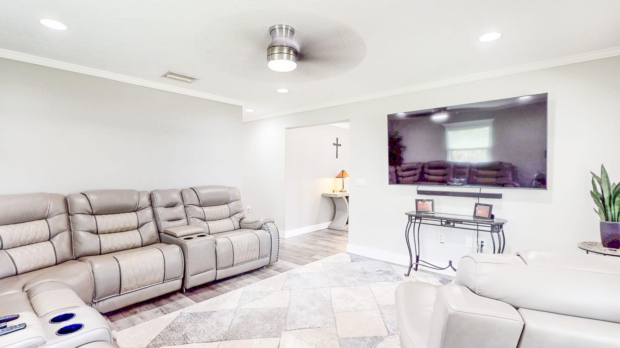 Price Drop! Welcome to this beautifully remodeled 4-bedroom, 3-bathroom home. Designed for both comfort and functionality, the property offers a spacious layout and a wide range of modern enhancements. Inside, you'll find luxury vinyl flooring throughout, two new air conditioning systems and two new hot water heaters, The guest bathroom features a jacuzzi tub, and impact windows and doors provide energy efficiency and storm protection. The home is also equipped with a setup for a whole-house generator. The kitchen, baths, and living spaces have all been completely remodeled, creating a fresh and move-in ready environment. Outdoor living is maximized with a wrap-around porch finished with Trex decking, a fire pit in the front yard, a carport, and a detached garage. The expansive