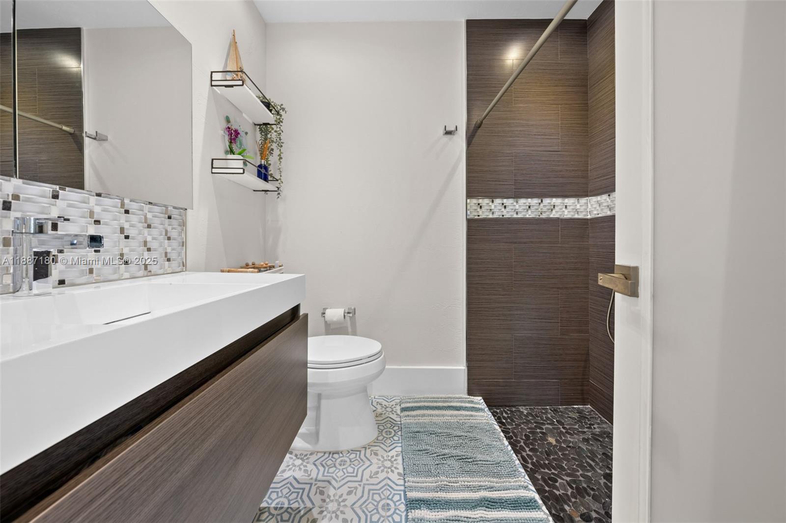 Experience luxury living at its finest in this exquisite South Miami home, perfectly situated on a private, tranquil street. This stunning residence boasts soaring ceilings, elegant high-hat lighting, and seamless surround sound throughout. The gourmet Ital Kraft kitchen features premium Thermador appliances, ideal for culinary enthusiasts. Indulge in the spacious primary suite with a custom walk-in closet and a spa-inspired bathroom retreat. Impact windows, plantation shutters, and a tankless gas water heater ensure comfort and peace of mind. Step outside to your backyard oasis — a covered patio, sleek saltwater heated pool, and lush artificial turf create the perfect setting for relaxation and entertaining.