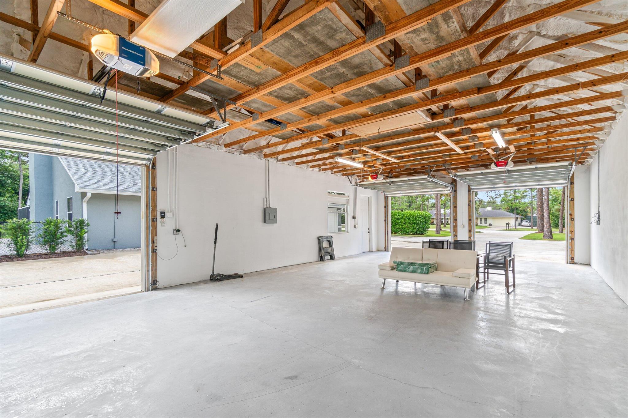 Palm Beach Country Estates Where Elegance Meets Coastal Living Positioned on a paved road in one of Northern Palm Beach County's coveted communities on a 1 acer lot , this completely remodeled estate blends refined design with flexible living. A sweeping 5,800-sq-ft driveway leads to both the main residence and a huge 1075sq ft CBS-built detached building--engineered to hold at least six cars. Perfect as a collector's garage, workshop, or future guest house, this space offers unmatched versatility. Inside, the residence shines with sunlit, open interiors. A formal living room welcomes guests, while the gourmet kitchen--quartz countertops, porcelain farmhouse sink, wood-accent island, and custom cabinetry--anchors the home. Just beyond, the family room with fireplace and the formal dining