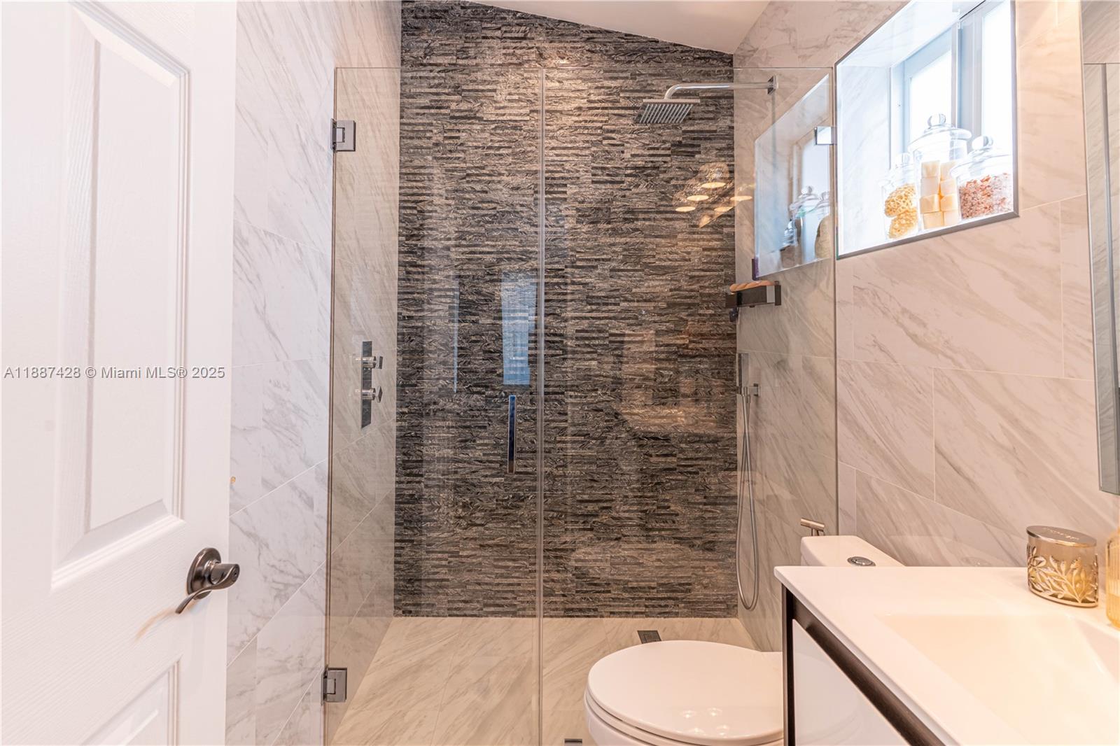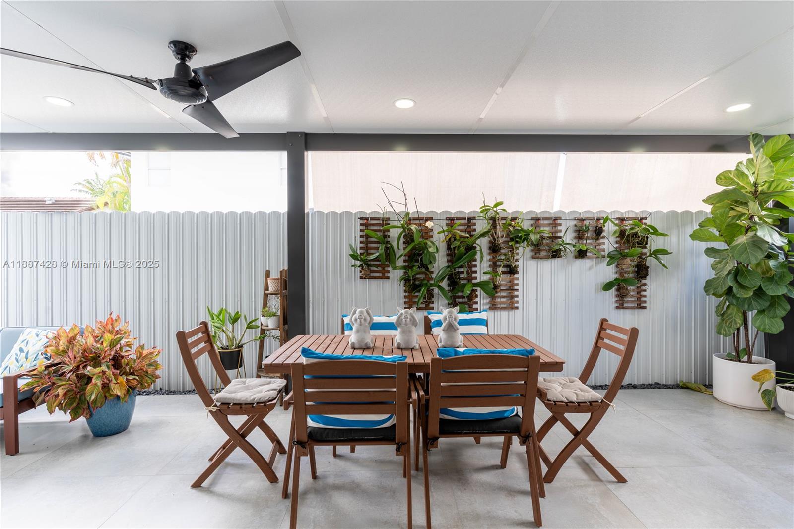 Step into this beautifully renovated home, showcasing a modern kitchen with contemporary appliances, waterfall countertops and stylish finishes, thoughtfully designed for both comfort and functionality. Enjoy year-round peace of mind with impact-resistant windows and doors, offering both security and energy efficiency. Titan tankless water heater for on-demand hot water, a dedicated storage room, and a backyard shed. The home also features a brand-new, gray-tiled terrace adds a sleek modern touch to the outdoor area, perfect for relaxing or entertaining outdoors. A nice cement block driveway provides ample parking space. On the side of the property, a cemented section offers enough space to comfortably fit a small boat or additional storage needs.