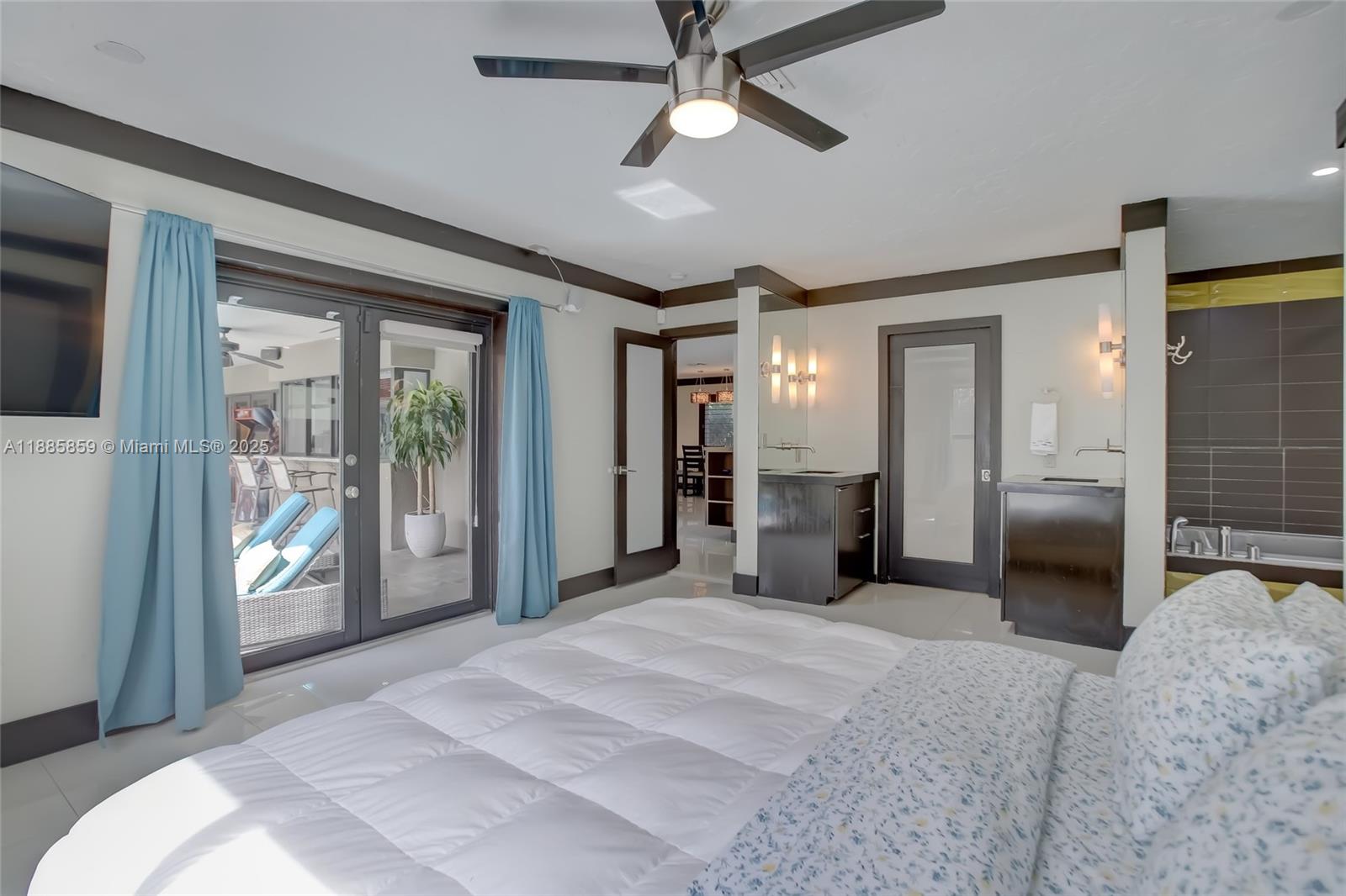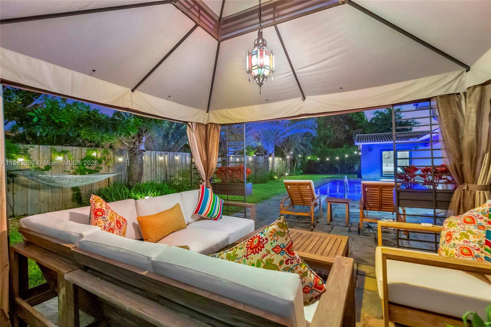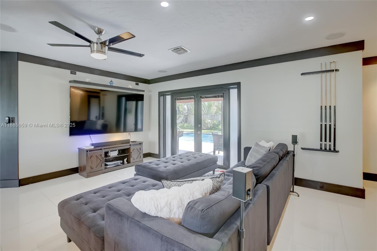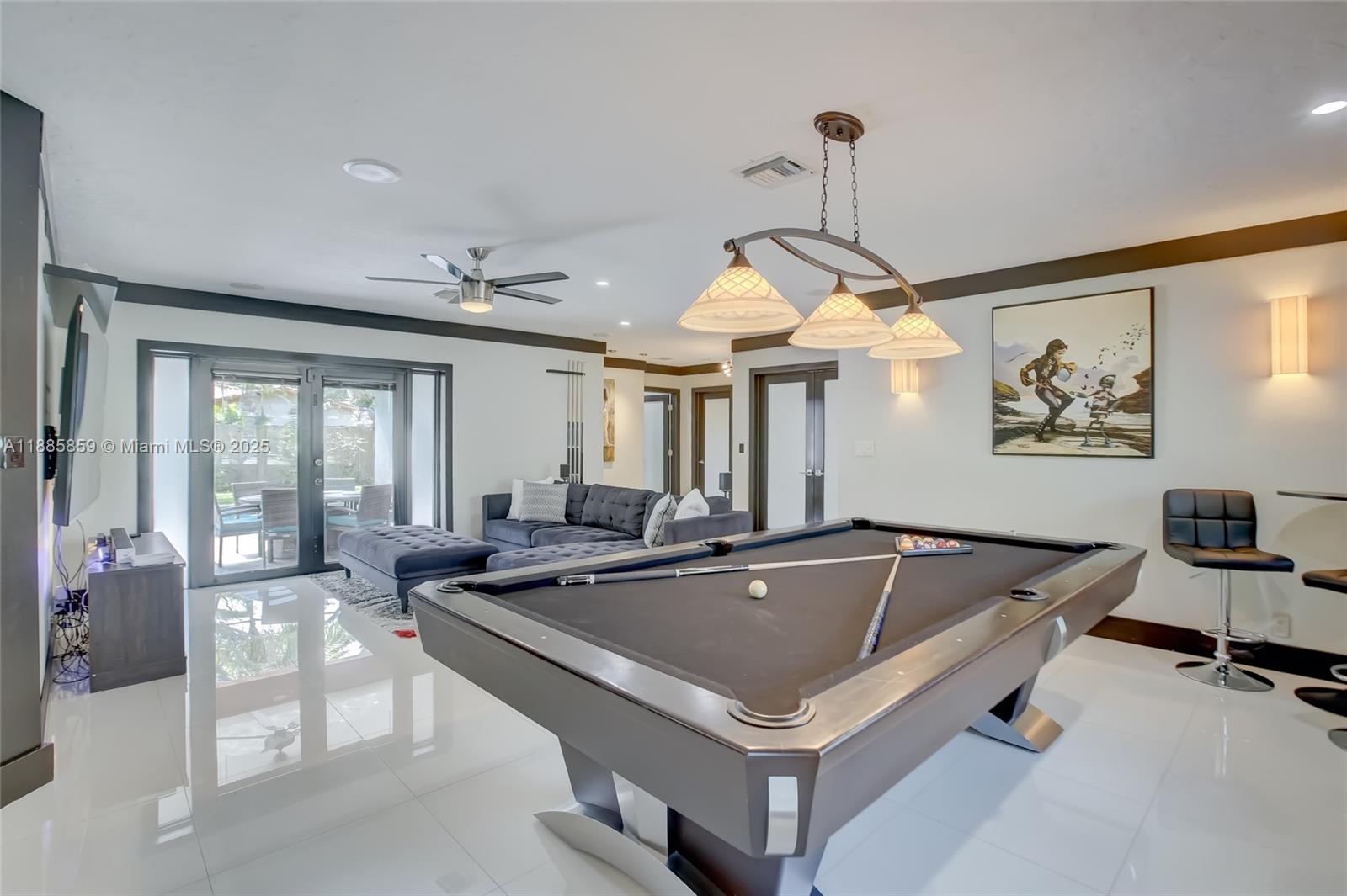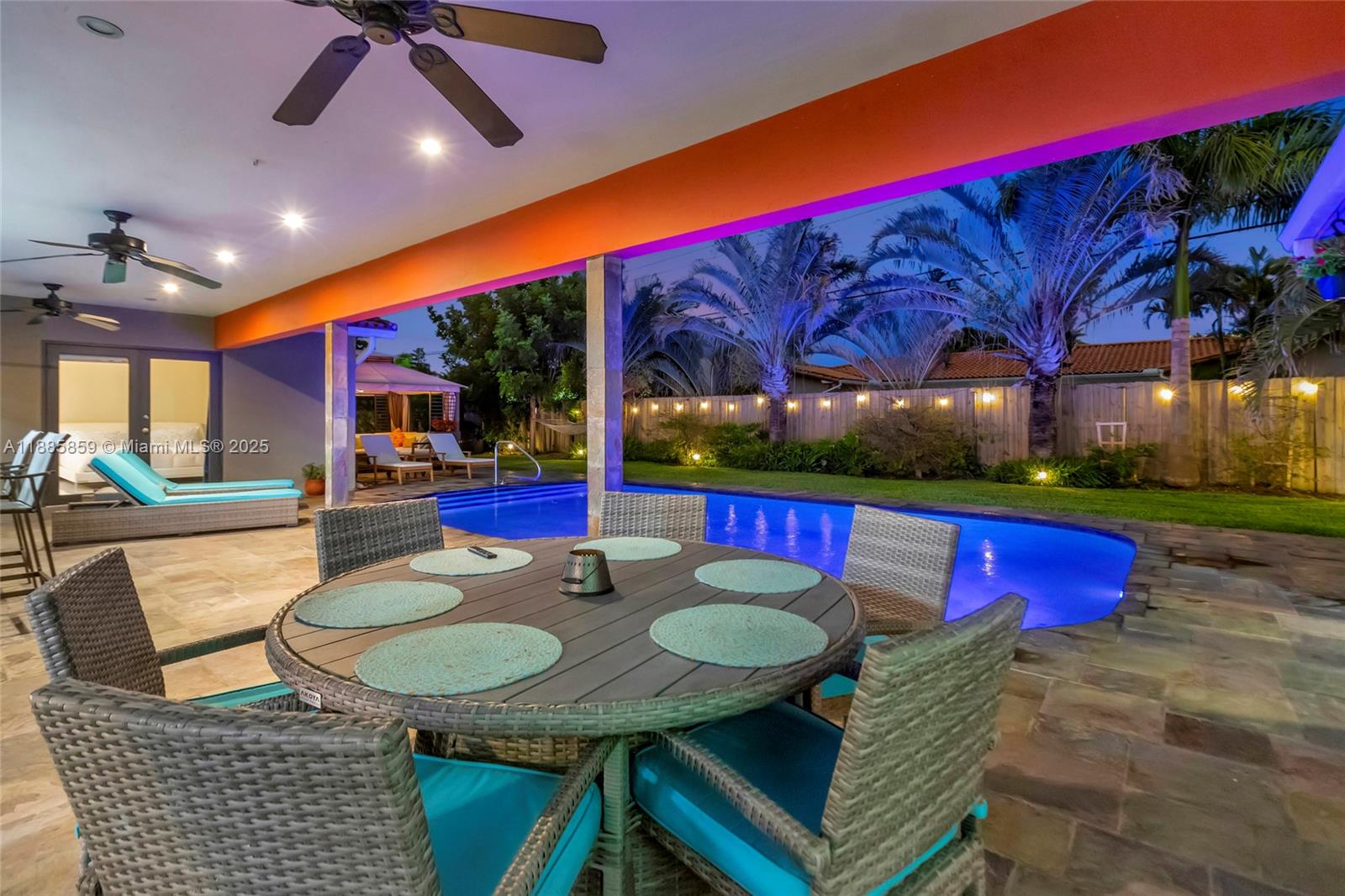 Step into elevated coastal living in Coral Ridge Country Club Estates with this 3-bedroom plus enclosed den (currently styled as a guest suite), 3-bath residence and air-conditioned 2-car garage. An open layout flows into a chef’s kitchen with double ovens, granite counters, wine cooler, and a cooking island with a pass-through bar to the covered veranda, designed for seamless indoor outdoor entertaining. Two private primary suites offer custom walk-in closets and French doors opening to the pool. Nearly every room overlooks the outdoor oasis featuring a cabana, hammock lounge, and spacious fenced yard. Located one block from the golf course and minutes to the beach, premier dining, and top private schools. Arrive by golf cart and live the Fort Lauderdale lifestyle.