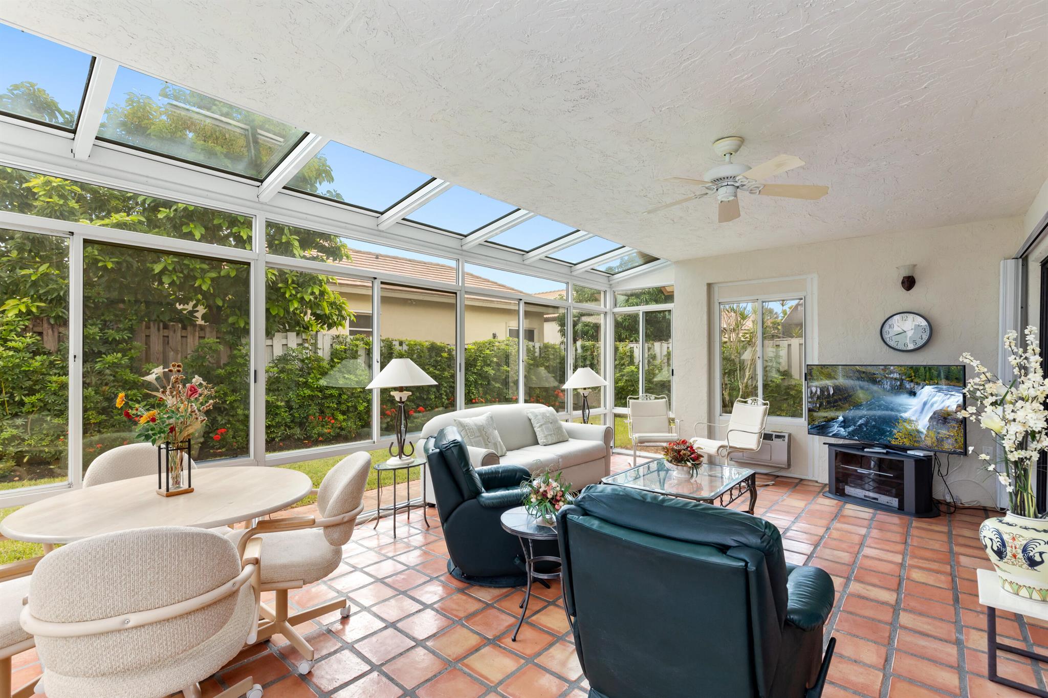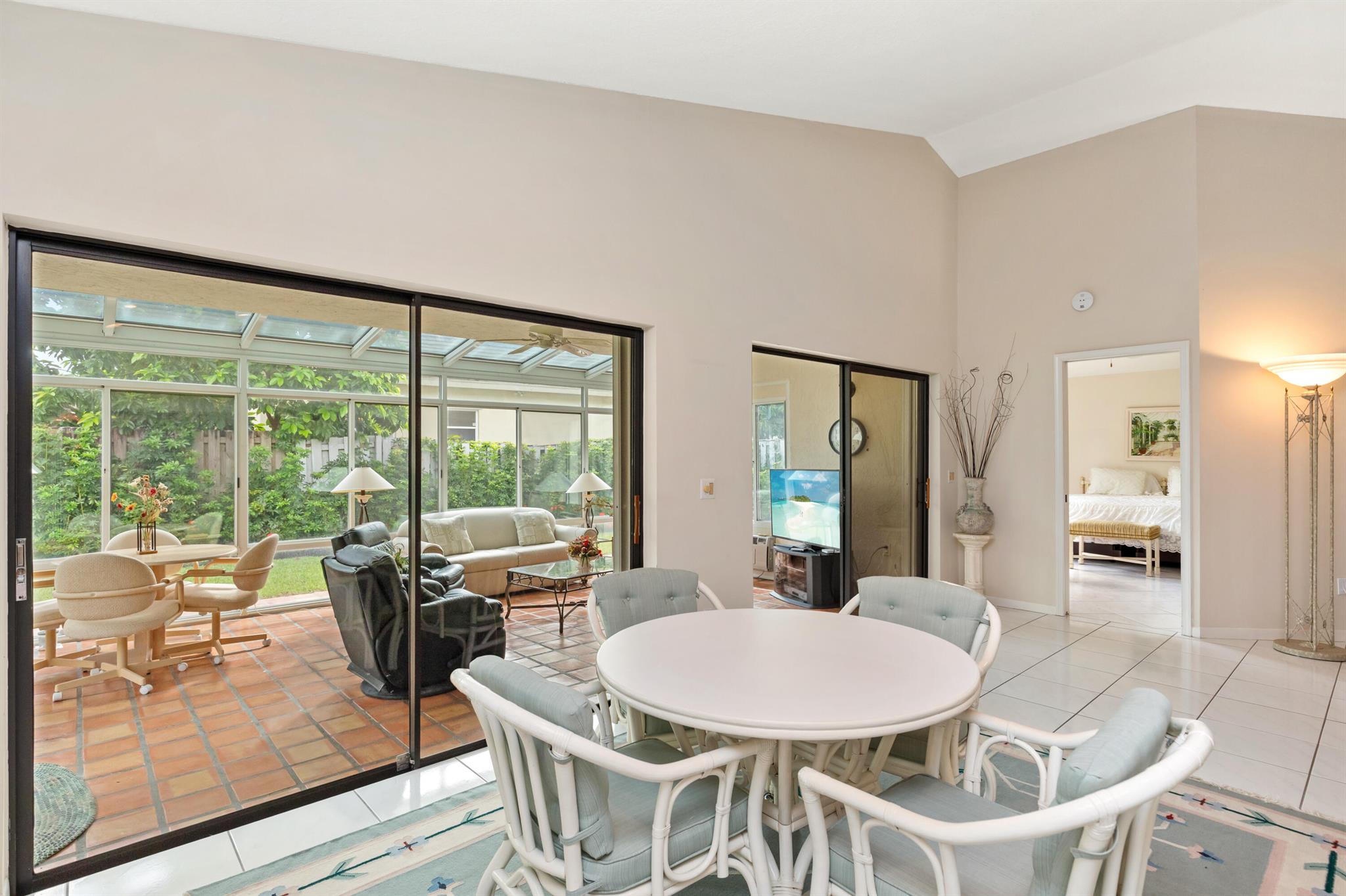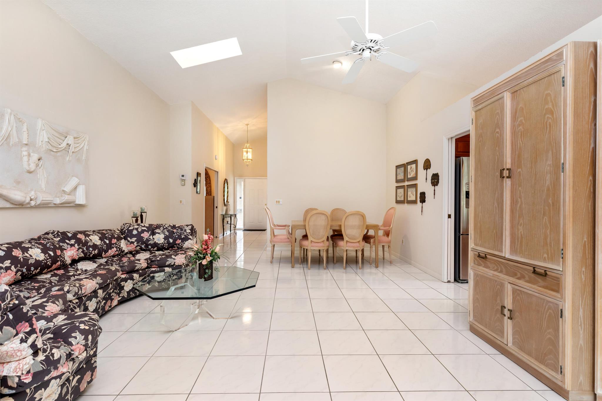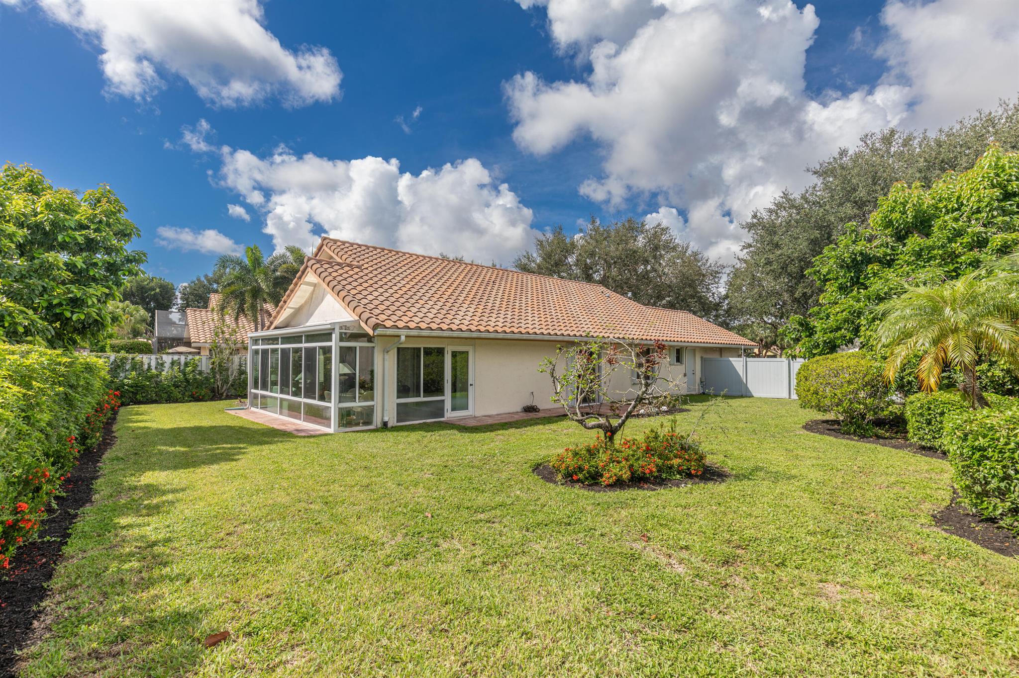 WELCOME HOME TO THIS LOVELY THREE BEDROOM TWO BATHE HOME, AS YOU WALK INTO THIS HOME YOU WILL SEE A LARGE OPEN FLOORPLAN THAT LEADS TO A BRGHT ENCLOSED FLORIDA ROOM PERFECT FOR ENTERTAINING YOUR GUESTS. LARGE KITCHEN WITH NICE WOOD CABINETRY AND STAINLESS STEEL APPLIANCES. TILE FLOORS THRIUGHOUT EXCEPT ONE BEDROOM HAS CARPET. FORMAL DINNG ROOM. THREE SPACIOUS BEDROMS AND TWO FULL BATHS. MASTER BATH HAS A JACUZZI TUB FOR RELAXING AFTER A LONG DAY. HUGE WALK IN CLOSET IN MASTER BEDROOM. TWO CAR GARAGE. HOUSE IS ACROSS THE SREET FRO THE LAKE AND COMMUNITY POOL PLUS TENNIS COURTS. THIS IS A NICE FAMILY NEIGHBORHOOD ON A QUIET STREET. COMMUNITY IS GATED AND CLOSE TO SHOPPING, RESTAURANTS, AND I-95.
