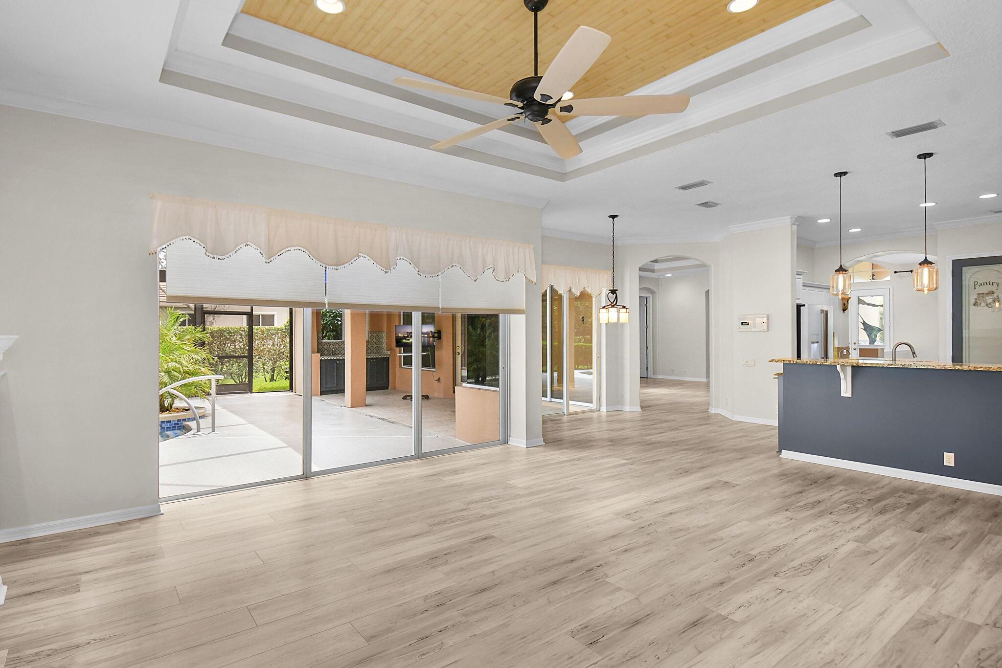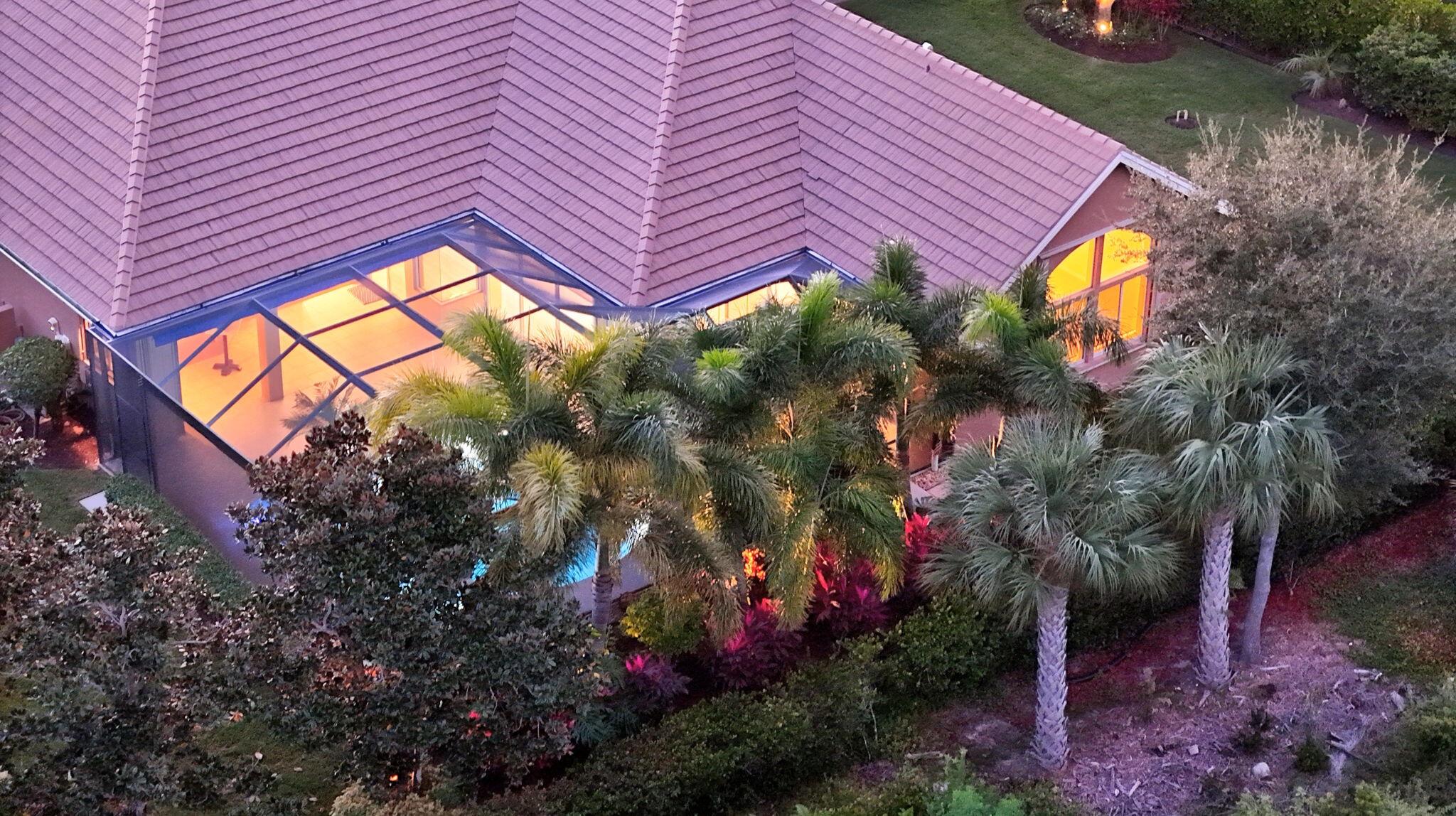 Amazing community where every home is custom-built on large, spacious lots. This 5BR, 3BA plus den Arthur Rutenberg home is surrounded by meticulously maintained landscape and is perfectly situated with beautiful preserve views, made more visible with the new pool enclosure and picture-frame screening. Newest upgrades include tile roof, stained-glass front doors, Ox-floor in garage and on pool deck, beautiful pool/spa surface, awning, outdoor bar with aged copper countertops, LVP flooring, remote shades, appliances, AC, and generator. Other features include coffered ceilings, built-in desk, granite countertops, complete hurricane protection, expanded paver driveway, and 2-car garage plus single garage bay enclosed with AC - perfect home gym or workshop. Great, quiet location.