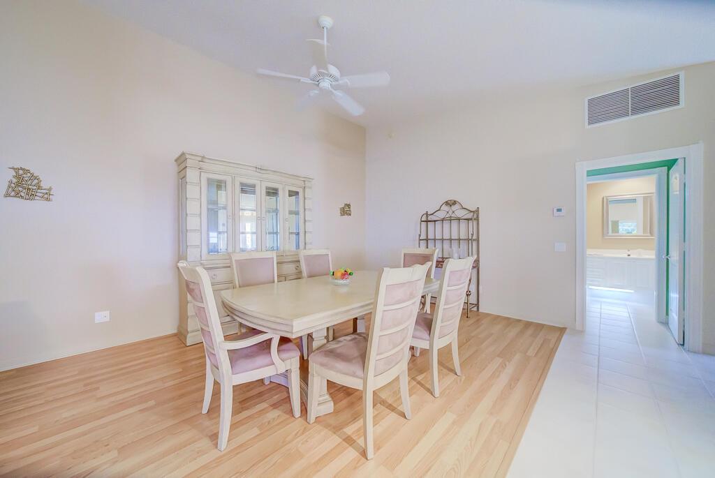 Welcome to this charming lakeview villa, offering 2 bedrooms, 2 bathrooms, and a 2-car garage. RiverWalk offers luxury, resort-style living with ought membership fees! This one-story home features an open layout with elevated ceilings, neutral colors, tile floors in common areas, recessed lighting, and ceiling fans. The modern kitchen boasts white cabinetry and granite countertops, perfect for culinary pursuits. An inside laundry room adds convenience, complete with a sink and washer/dryer. The spacious master bedroom includes laminate floors, a walk-in closet with custom built-ins, a second closet, and an ensuite bathroom featuring a double vanity sink, shower with glass doors, and a linen closet.