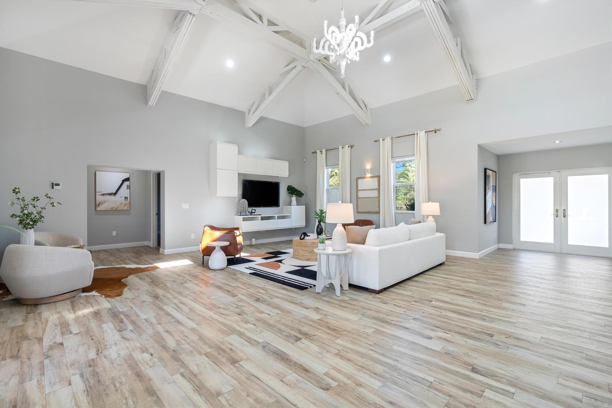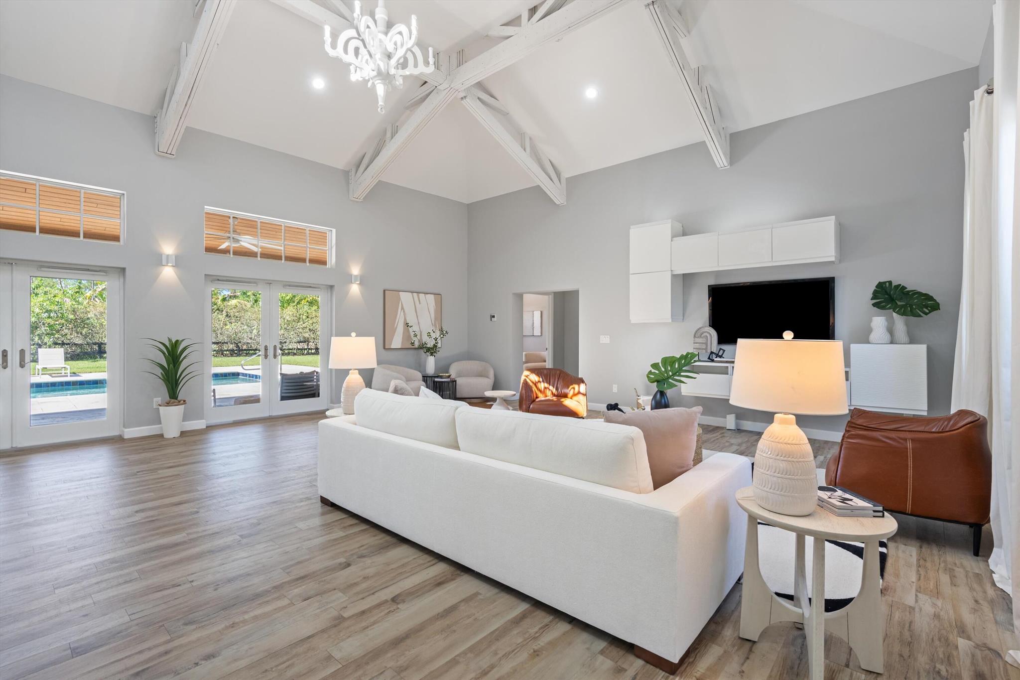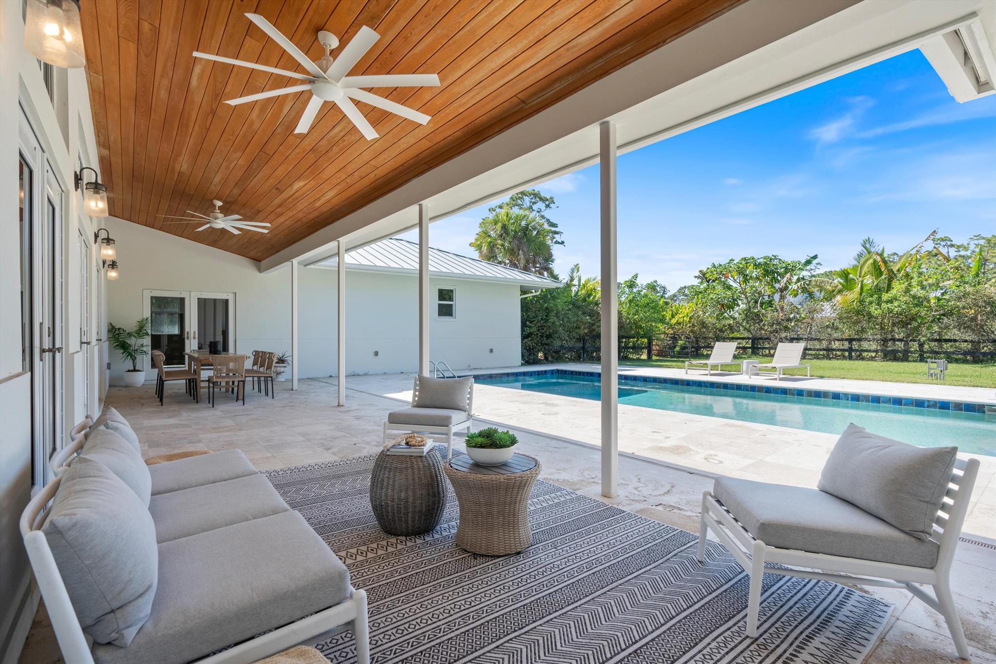 Nestled in the serene, gated equestrian community of Homeland, this exceptional 5-acre property includes a luxurious main residence, private pool, a new barn and arena, a detached garage building plus a lounge with full kitchen and bath! Located at the beginning of the community, yet tucked away on a private lot near the end of a quiet street, makes this home have the perfect balance of tranquility and convenience. Equestrian amenities include a NEW barn, featuring 7 (potentially 8) 12x12 stalls (one of them being even larger), complete with runouts to 3 of the stalls. Designed with form and function in mind, the barn has rubber flooring throughout, stunning tongue-and-groove ceilings,tack and feed room, barn bathroom, water access to each stall, fans and a fly spray system.