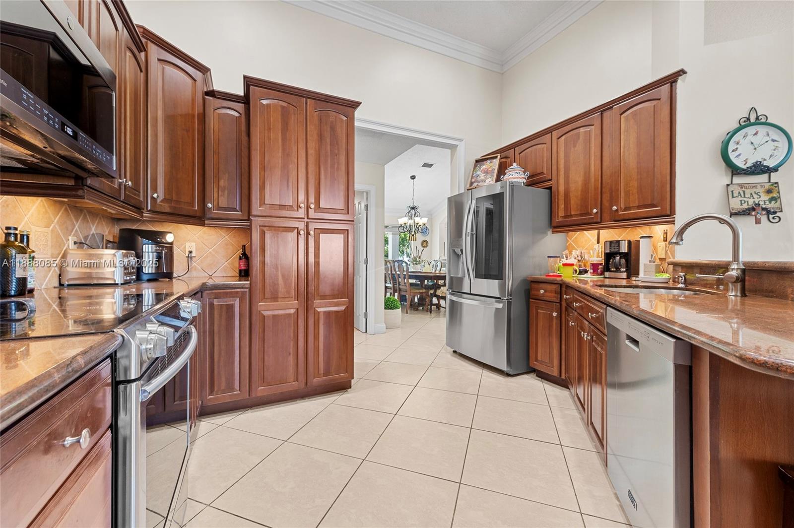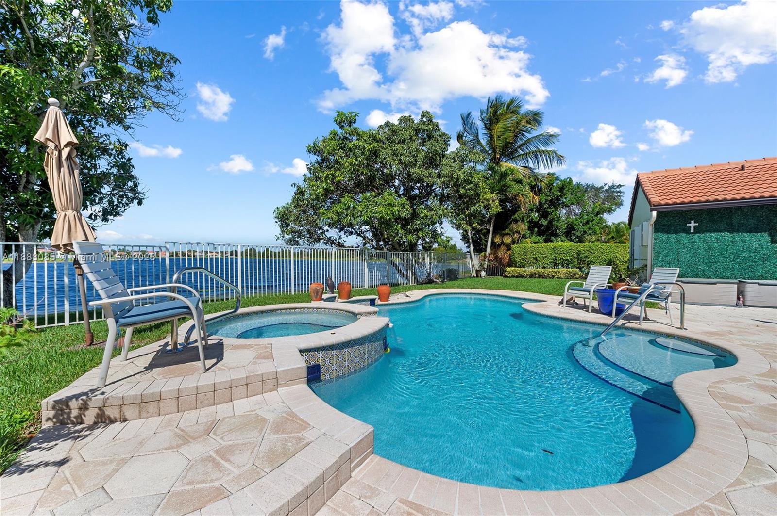 Set on one of Weston’s largest lakes at The Lakes. Standout home perfect for a large family and effortless indoor-outdoor entertaining. 4BR, 3.5BA with a 2008 barrel-tile roof, impact windows and garage door, and accordion shutters. Bright, open interiors with plenty of natural light. All-porcelain flooring and LED lighting. Kitchen remodeled (2018) with granite, LG refrigerator, Samsung range (2018), and GE Profile microwave (2019). Primary suite with two walk-in closets and a 2018 spa bath with marble floors, large shower, and separate soaking tub. Resurfaced pool & spa (2024) with new lighting/handrails and a new heater (2024), plus fenced yard. Tankless water heater (2023). Guard-gated, with pool, playground, and fields. Prime Weston location near A-rated schools, parks, and shopping.