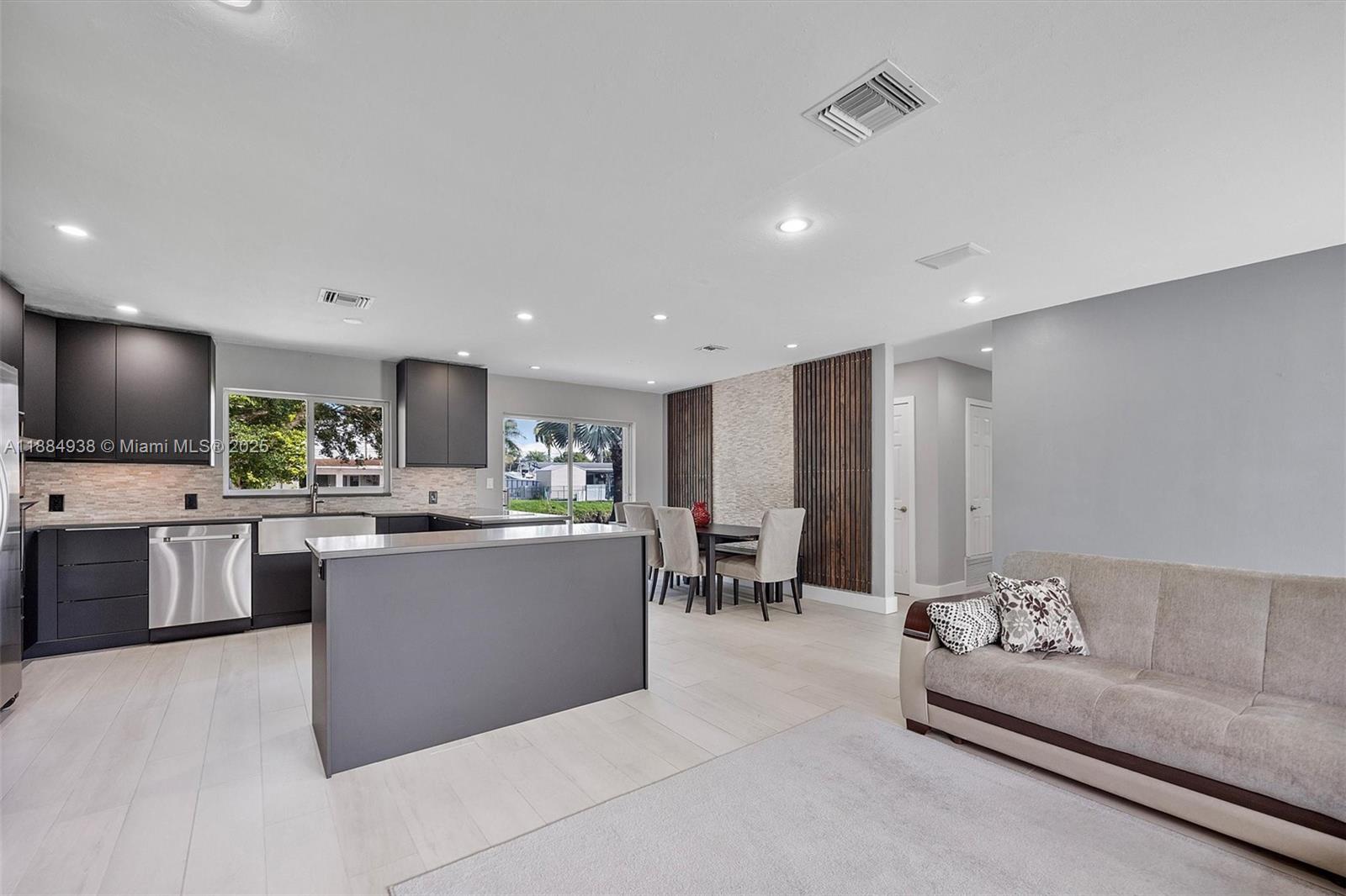This 3-bedroom, 2-bath canal-front home offers thoughtful updates and a functional layout designed for everyday comfort. Located in a highly sought-after waterfront setting, it combines modern upgrades with relaxing views and space for a pool. A new roof (2021) and AC (2024) provide peace of mind, while the kitchen, renovated in 2019, features matte black soft-close cabinetry, quartz countertops, and quality appliances, including Samsung and KitchenAid. Grey faux wood tile floors extend through the main living areas, with laminate and terrazzo in the bedrooms. Additional highlights include recessed LED lighting, an impact front door, and surround sound speakers in the living room. The home also includes a paved driveway, updated PVC plumbing (2018), and a welcoming backyard.
