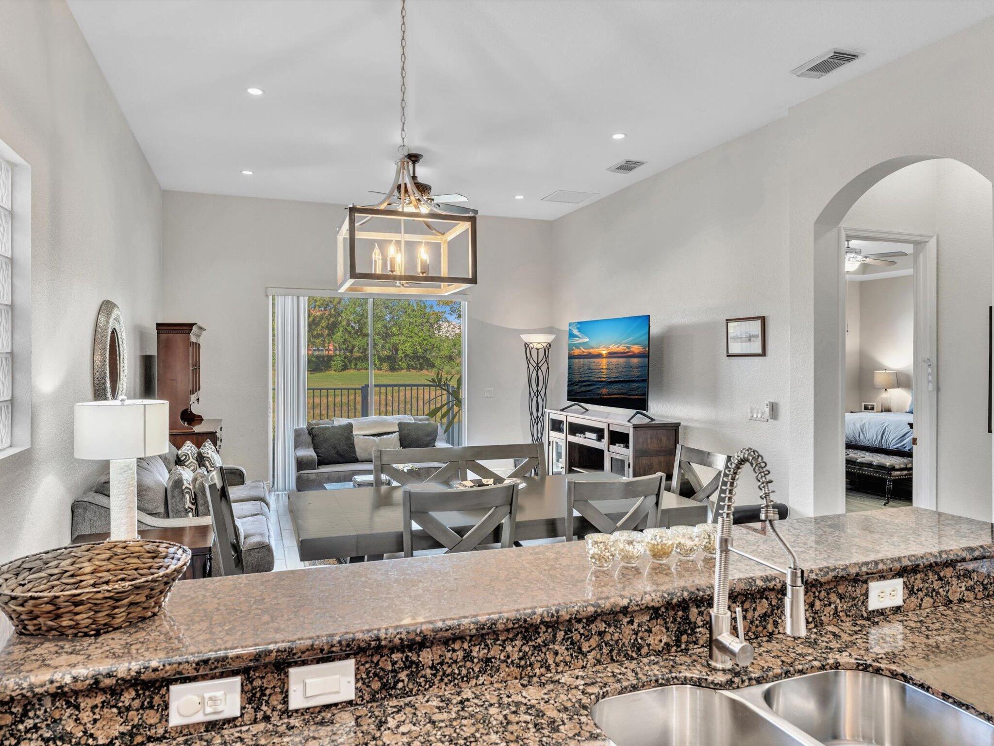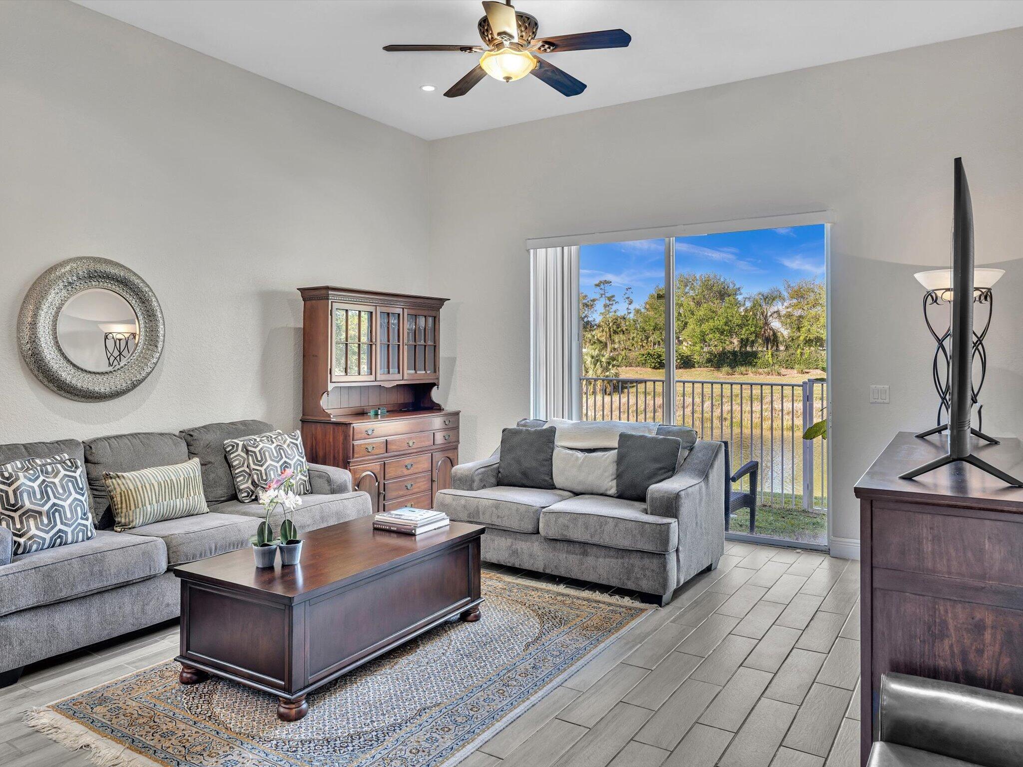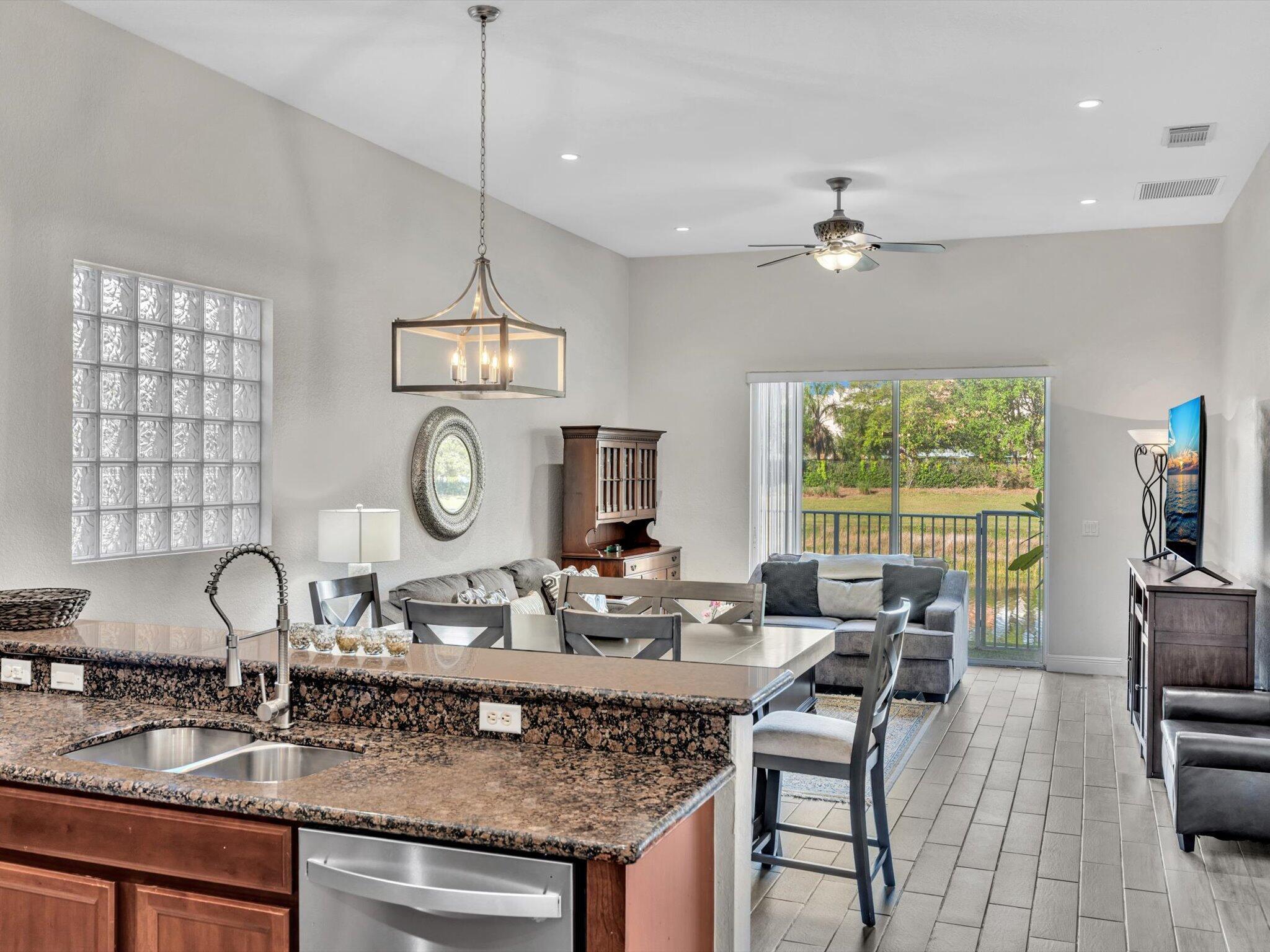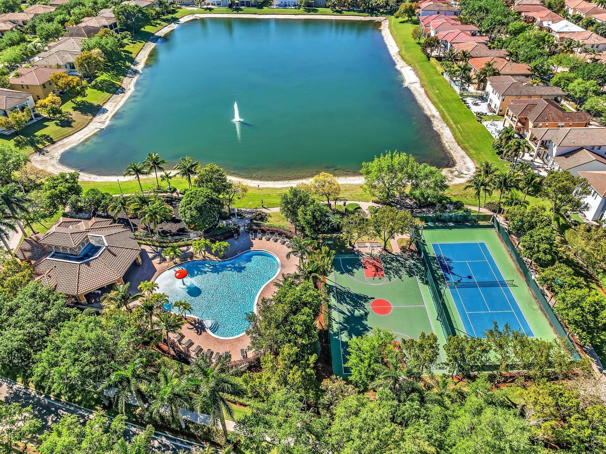 Renovated 3BR/2BA single-family home in gated Terracina! Spacious floor plan with 12' ceilings and tile throughout. Huge primary suite with canal views, walk-in closet, and designer bath featuring soaking tub and separate shower. Modern kitchen with stainless steel appliances opens to large family and dining areas. Built-in living room shelves, laundry room, 2-car garage. Resort-style community with tropical pool, clubhouse, gym, kids' play area, tennis and basketball courts. Don't miss this move-in ready gem in this great Community!