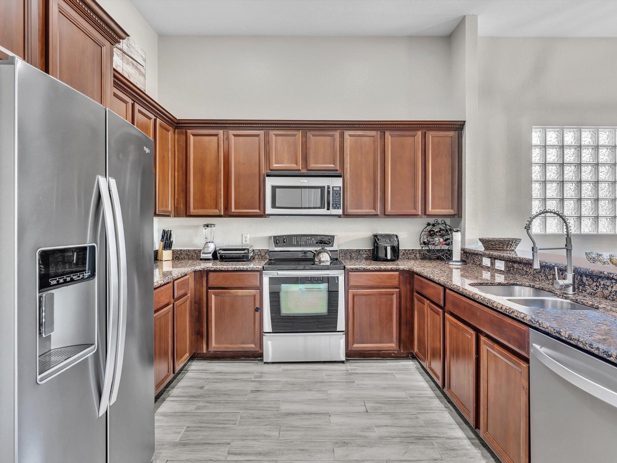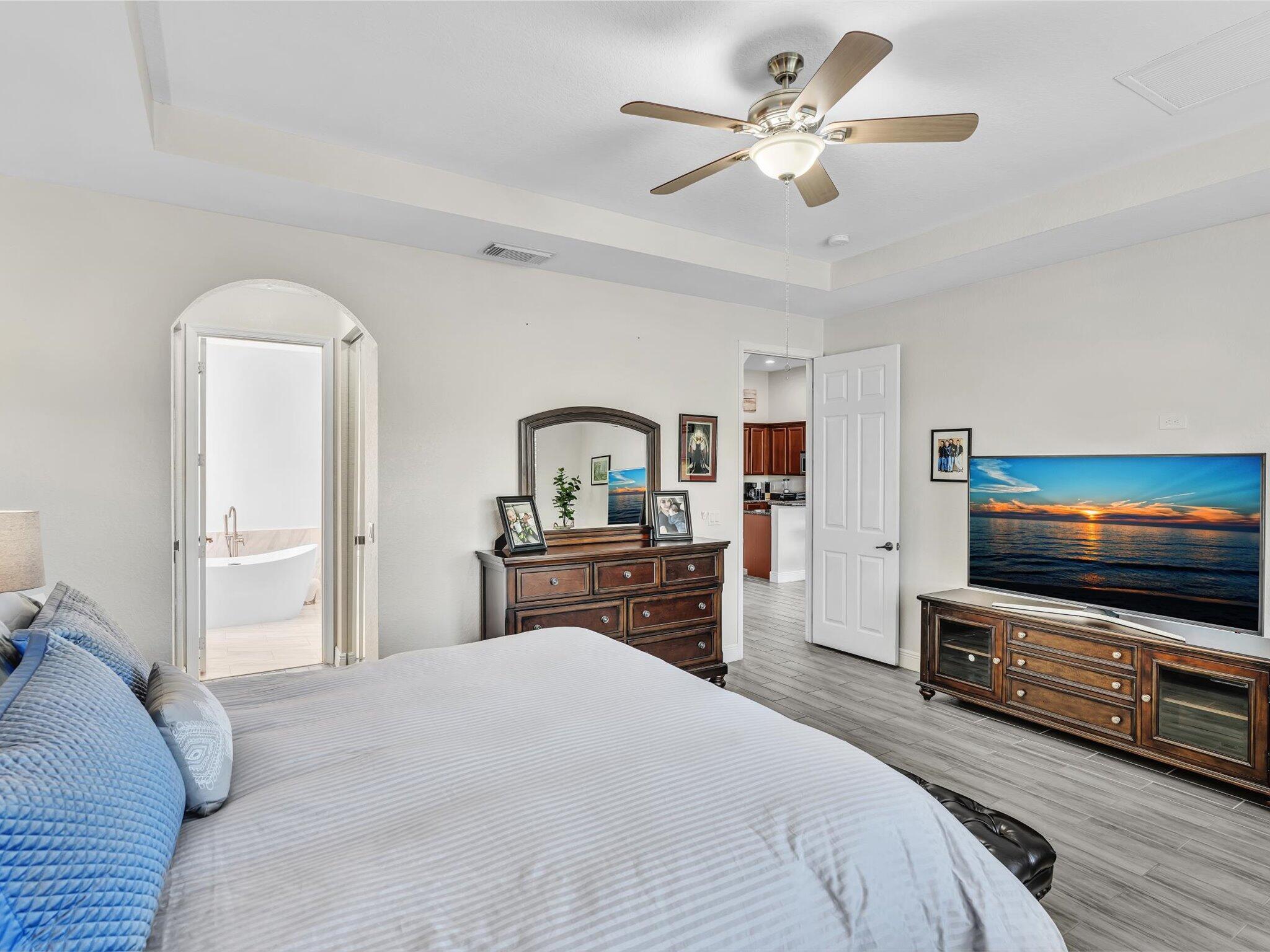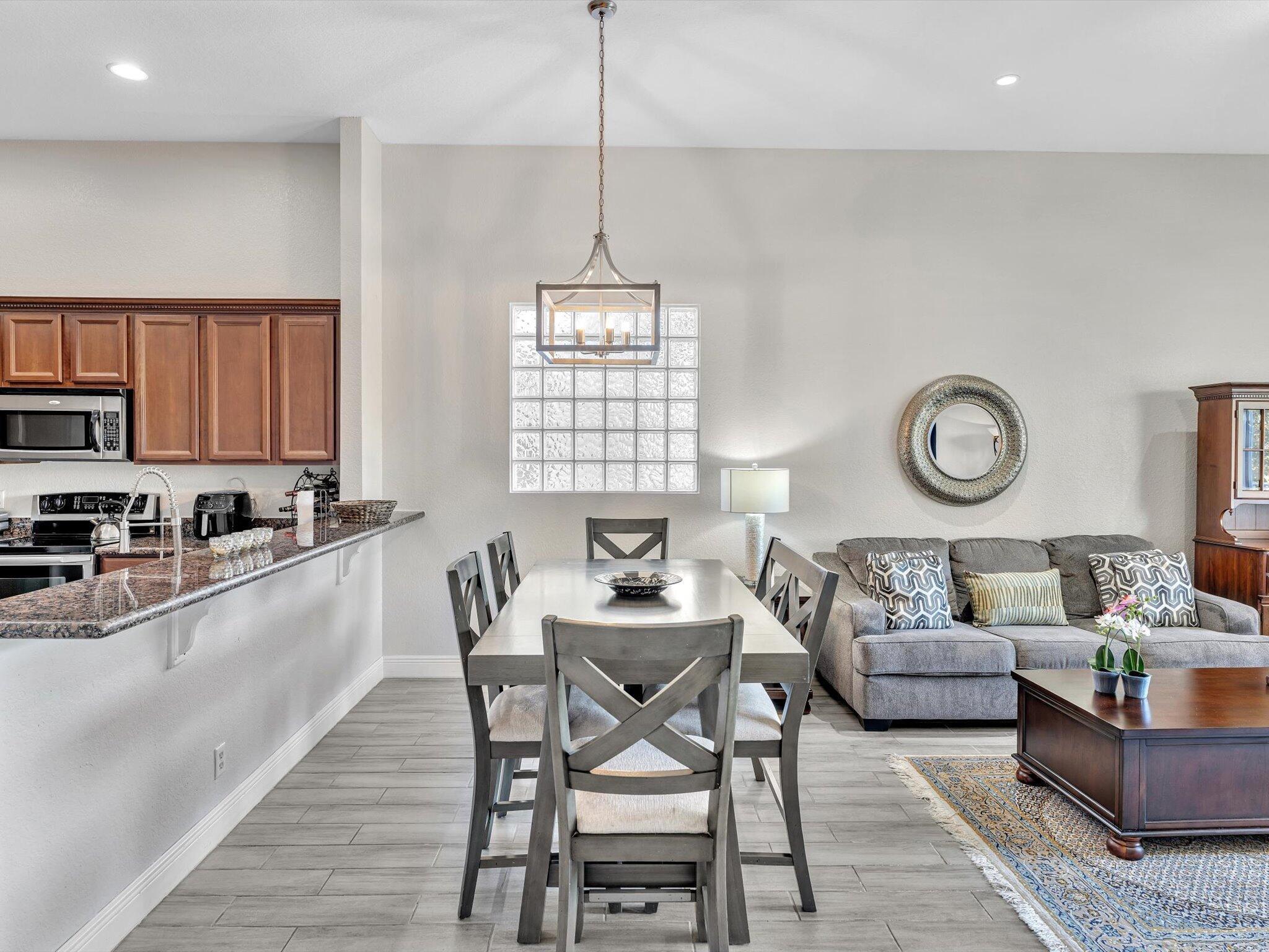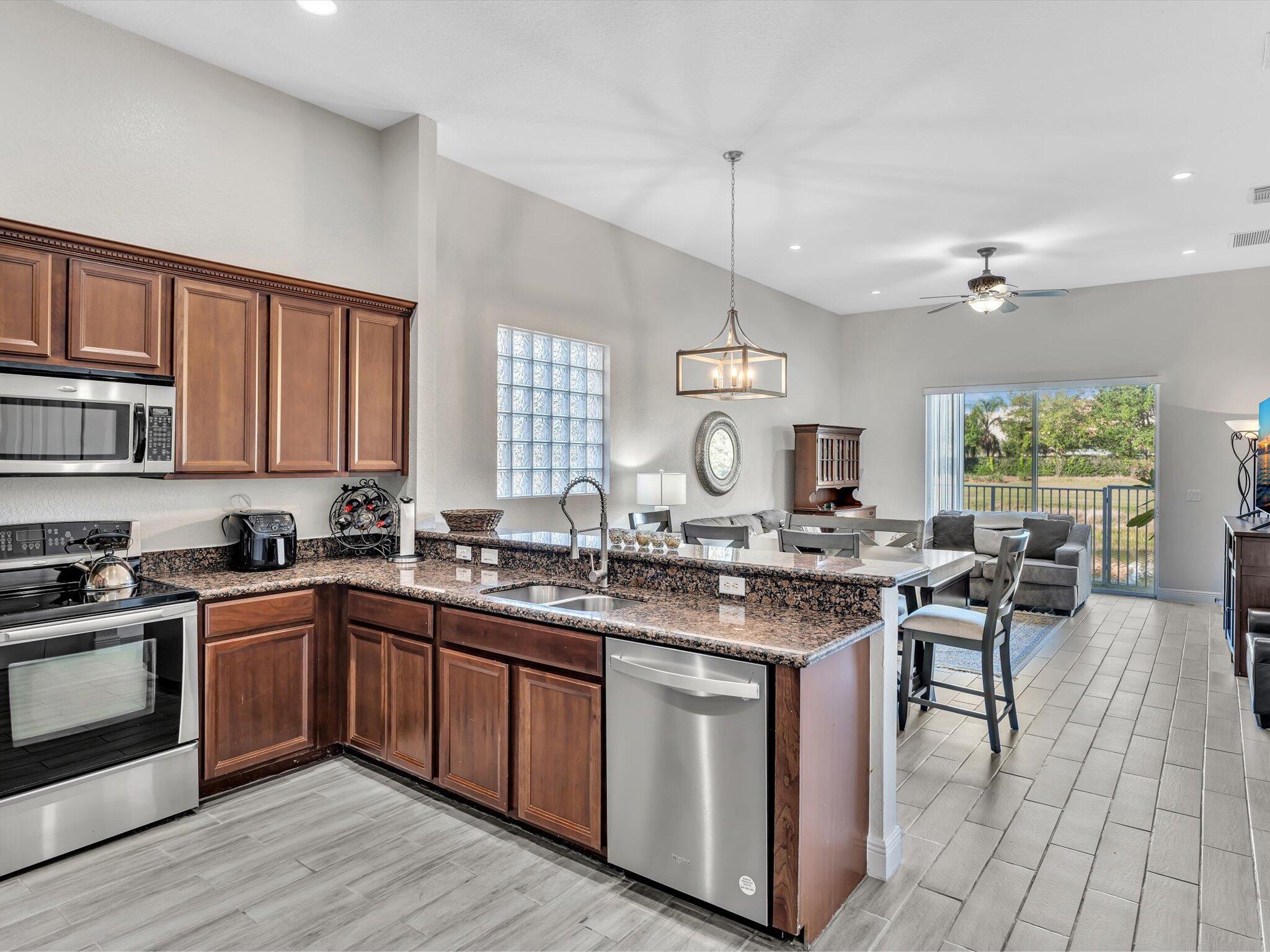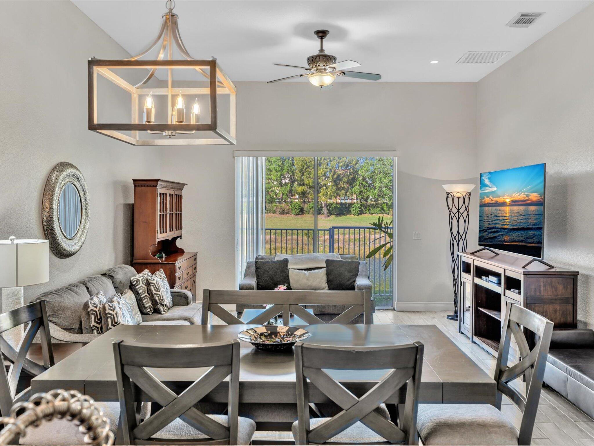 Renovated 3BR/2BA single-family home in gated Terracina! Spacious floor plan with 12' ceilings and tile throughout. Huge primary suite with canal views, walk-in closet, and designer bath featuring soaking tub and separate shower. Modern kitchen with stainless steel appliances opens to large family and dining areas. Built-in living room shelves, laundry room, 2-car garage. Resort-style community with tropical pool, clubhouse, gym, kids' play area, tennis and basketball courts. Don't miss this move-in ready gem in this great Community!