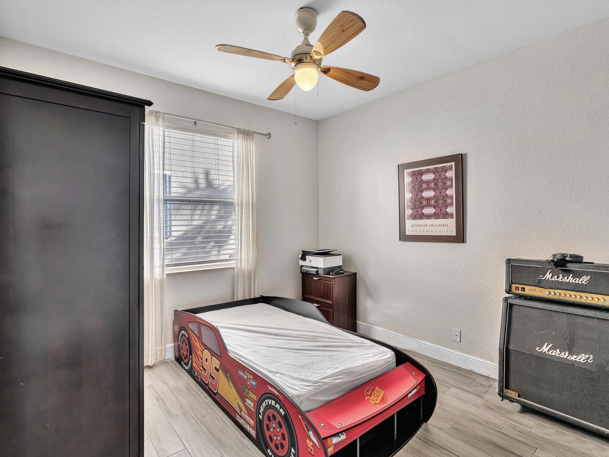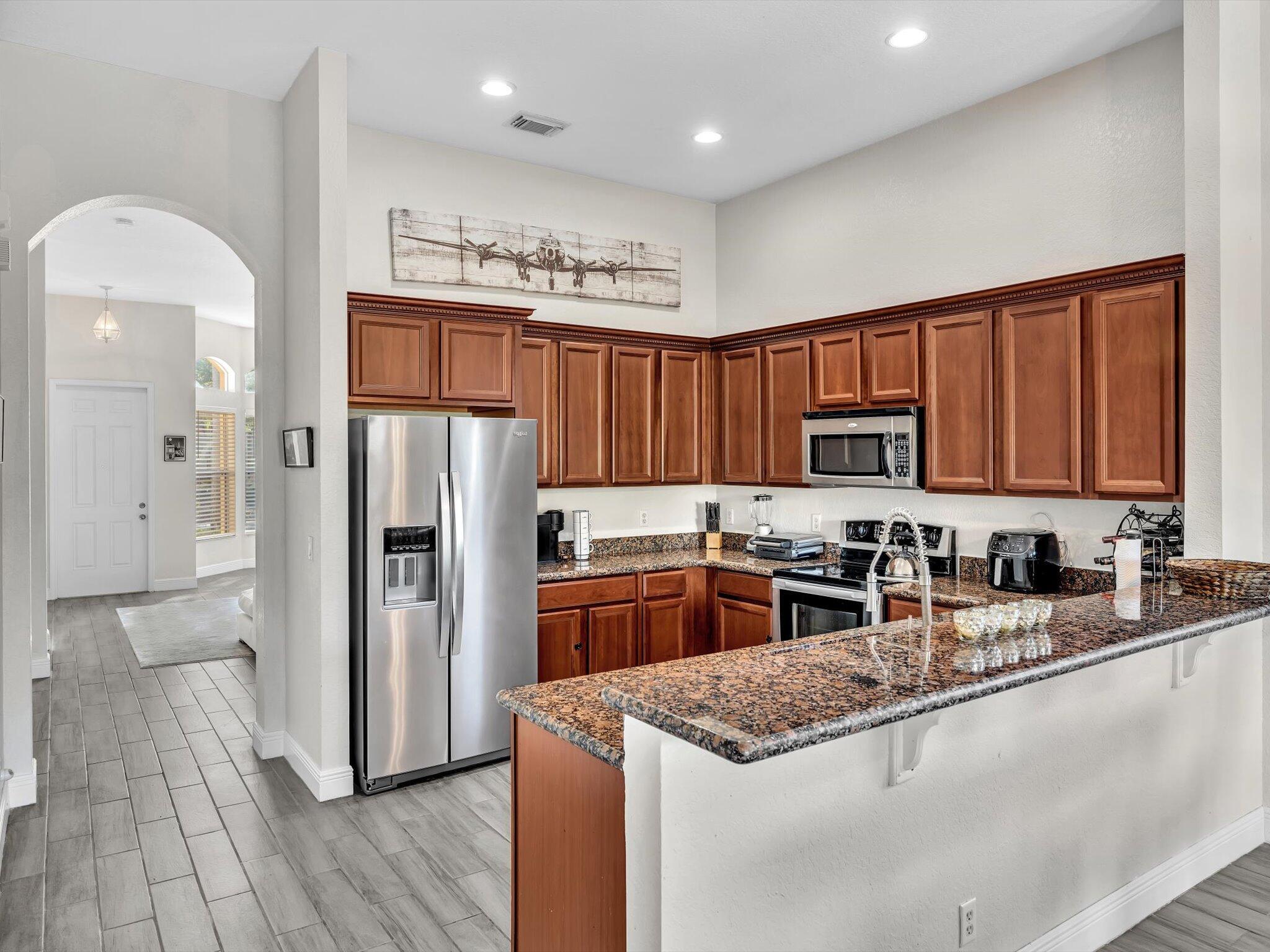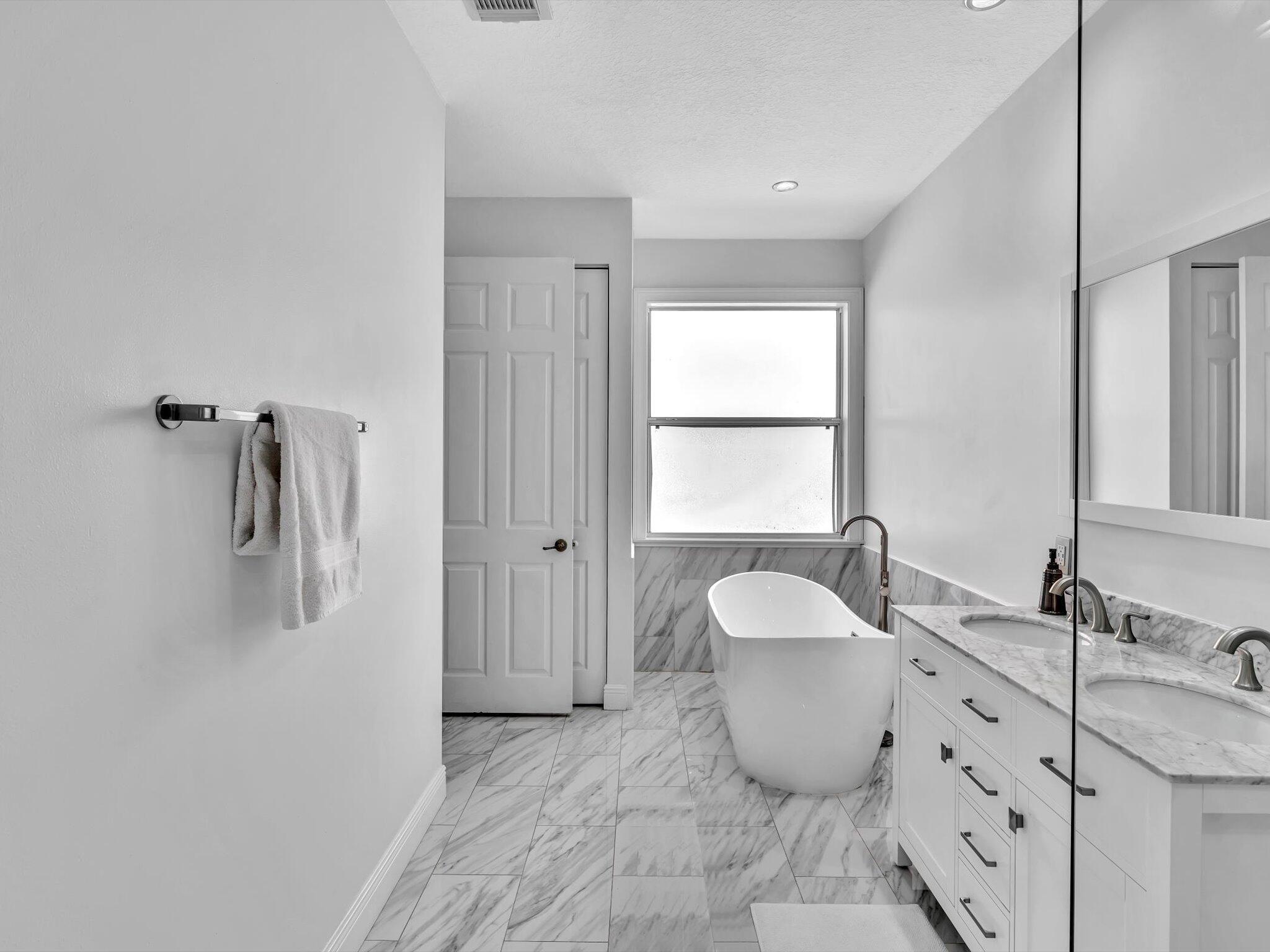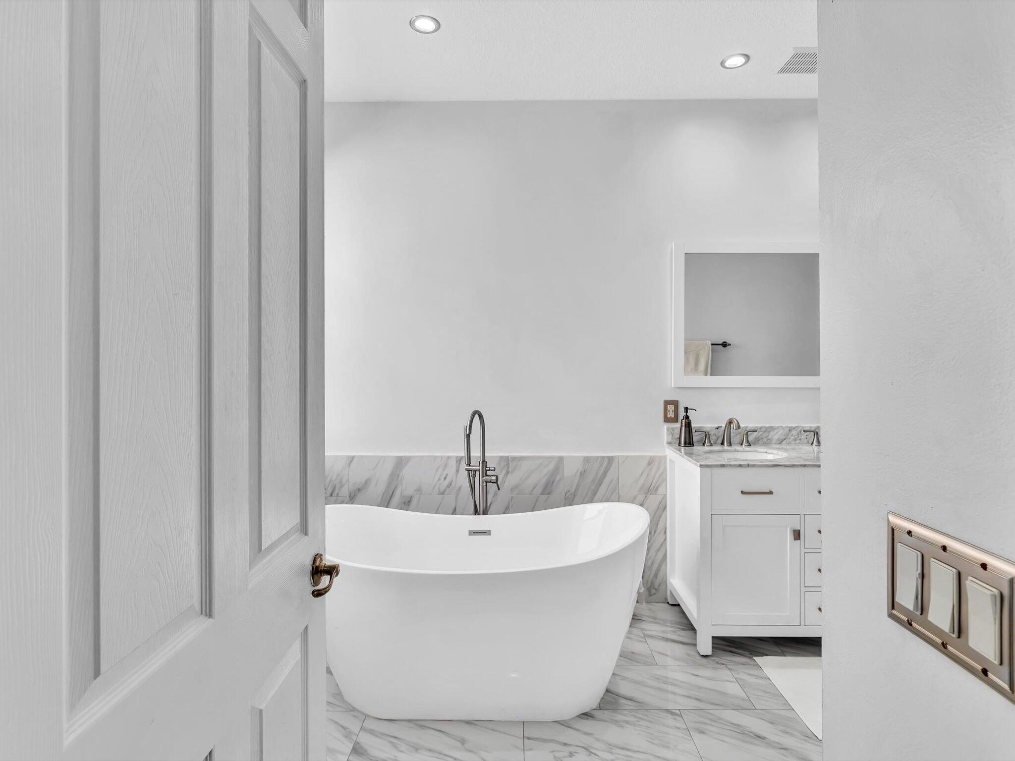 Renovated 3BR/2BA single-family home in gated Terracina! Spacious floor plan with 12' ceilings and tile throughout. Huge primary suite with canal views, walk-in closet, and designer bath featuring soaking tub and separate shower. Modern kitchen with stainless steel appliances opens to large family and dining areas. Built-in living room shelves, laundry room, 2-car garage. Resort-style community with tropical pool, clubhouse, gym, kids' play area, tennis and basketball courts. Don't miss this move-in ready gem in this great Community!
