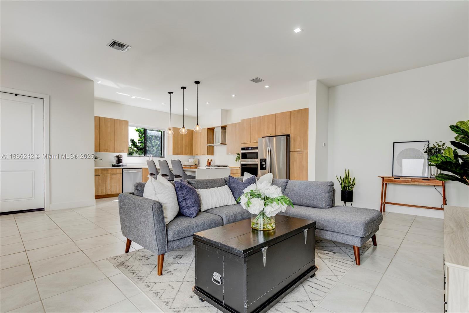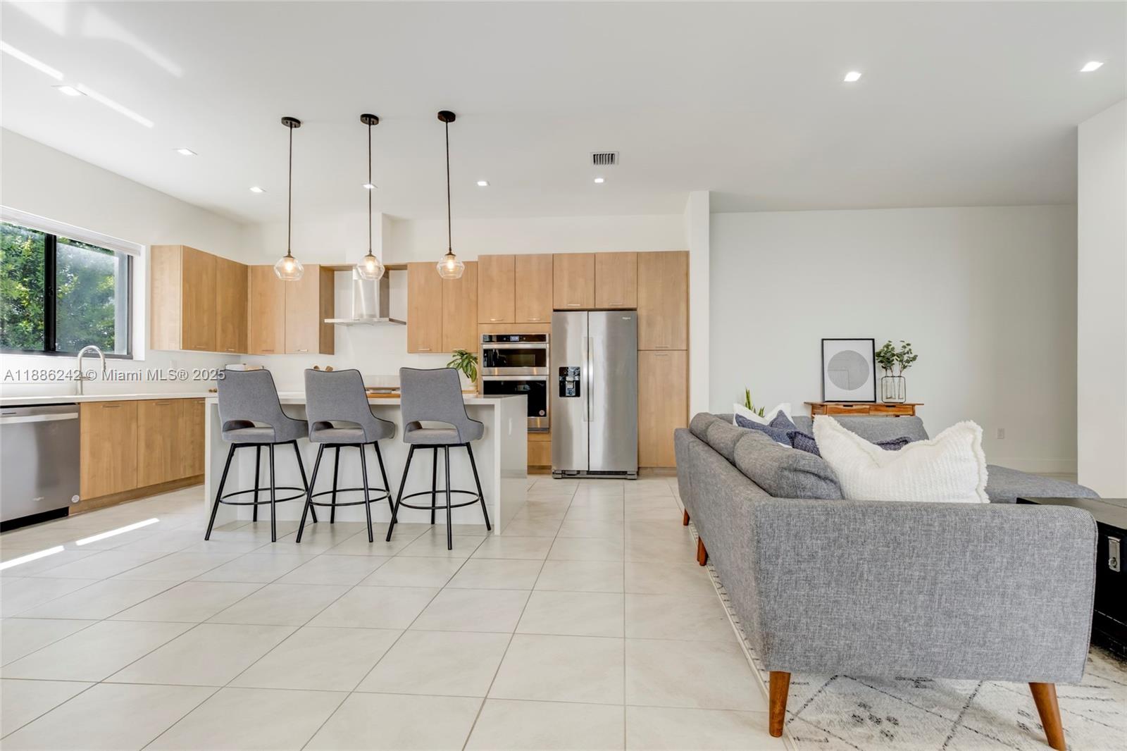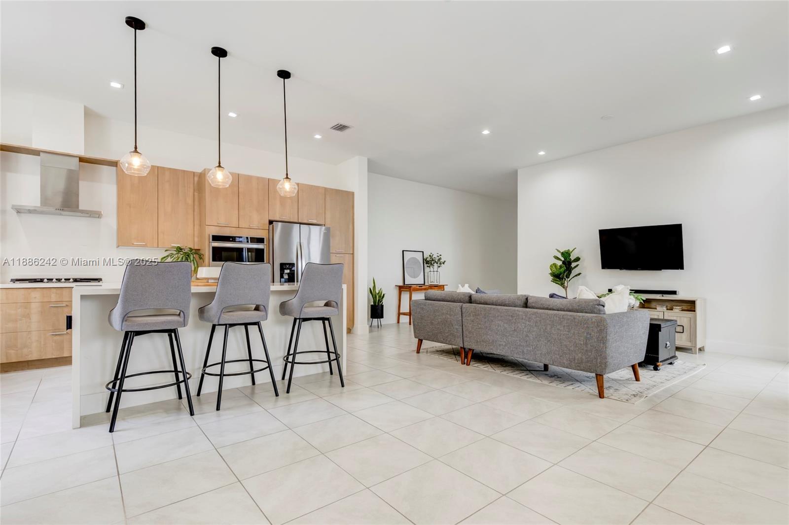 Welcome to this stunning 2022-built home in the community of Downtown Doral. This two-story residence offers 5 spacious bedrooms 4 upstairs next to a family room, and a versatile office on the first floor, ideal for working from home. The open layout showcases a sleek kitchen with premium finishes, oversized island, and seamless connection to the dining and living areas, perfect for entertaining. The primary suite includes two walk-in closets, double vanities, and glass shower. Enjoy three parking spaces with a two-car garage plus side spot. The backyard provides a private retreat for outdoor dining. Residents also enjoy a clubhouse with full amenities. Ideally located near Miami International Airport, schools, restaurants, shops, golf, and parks.