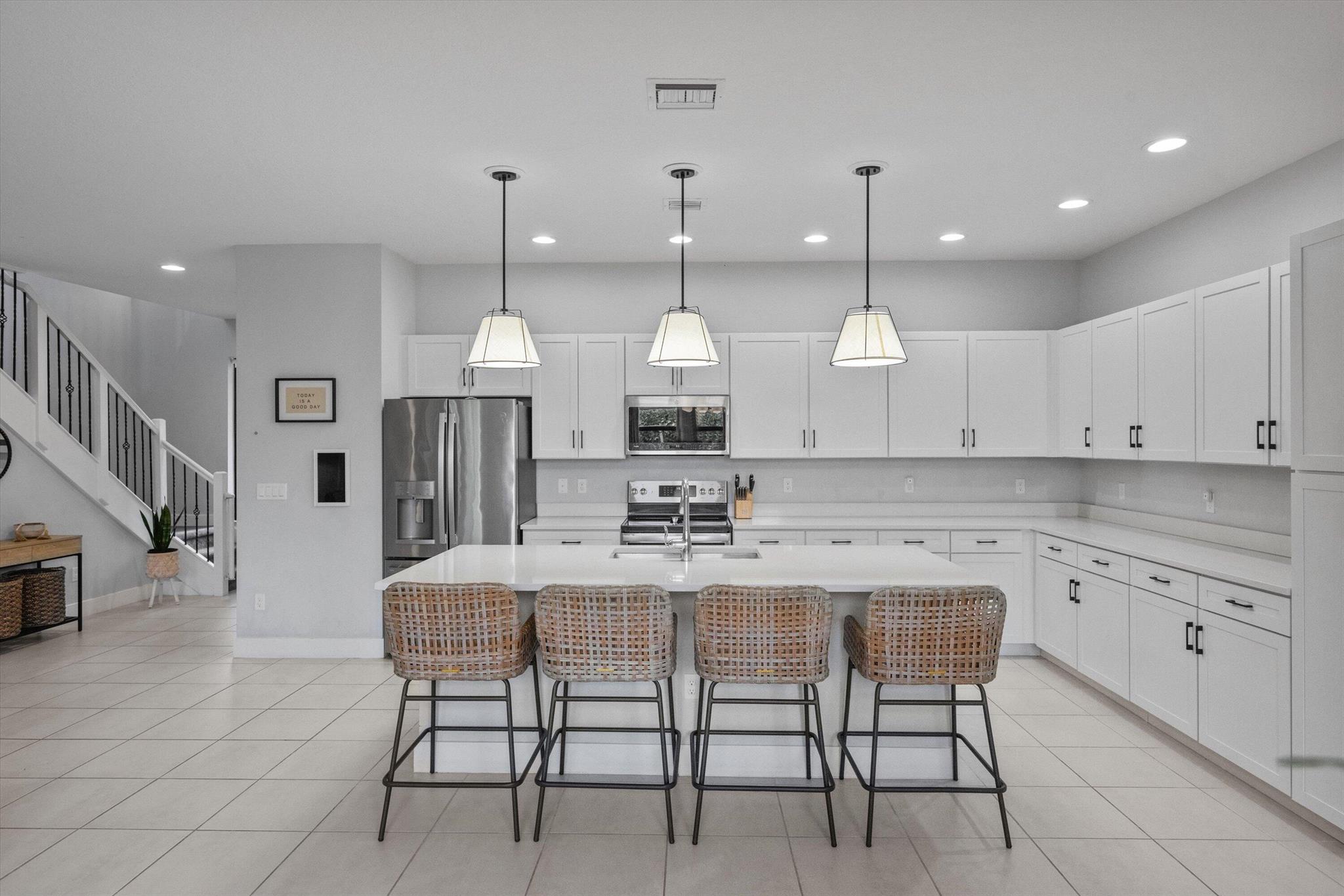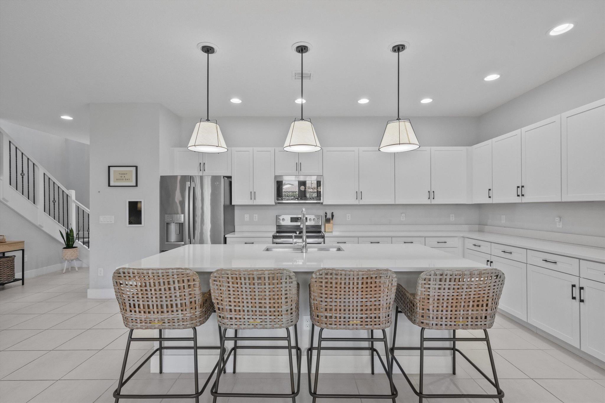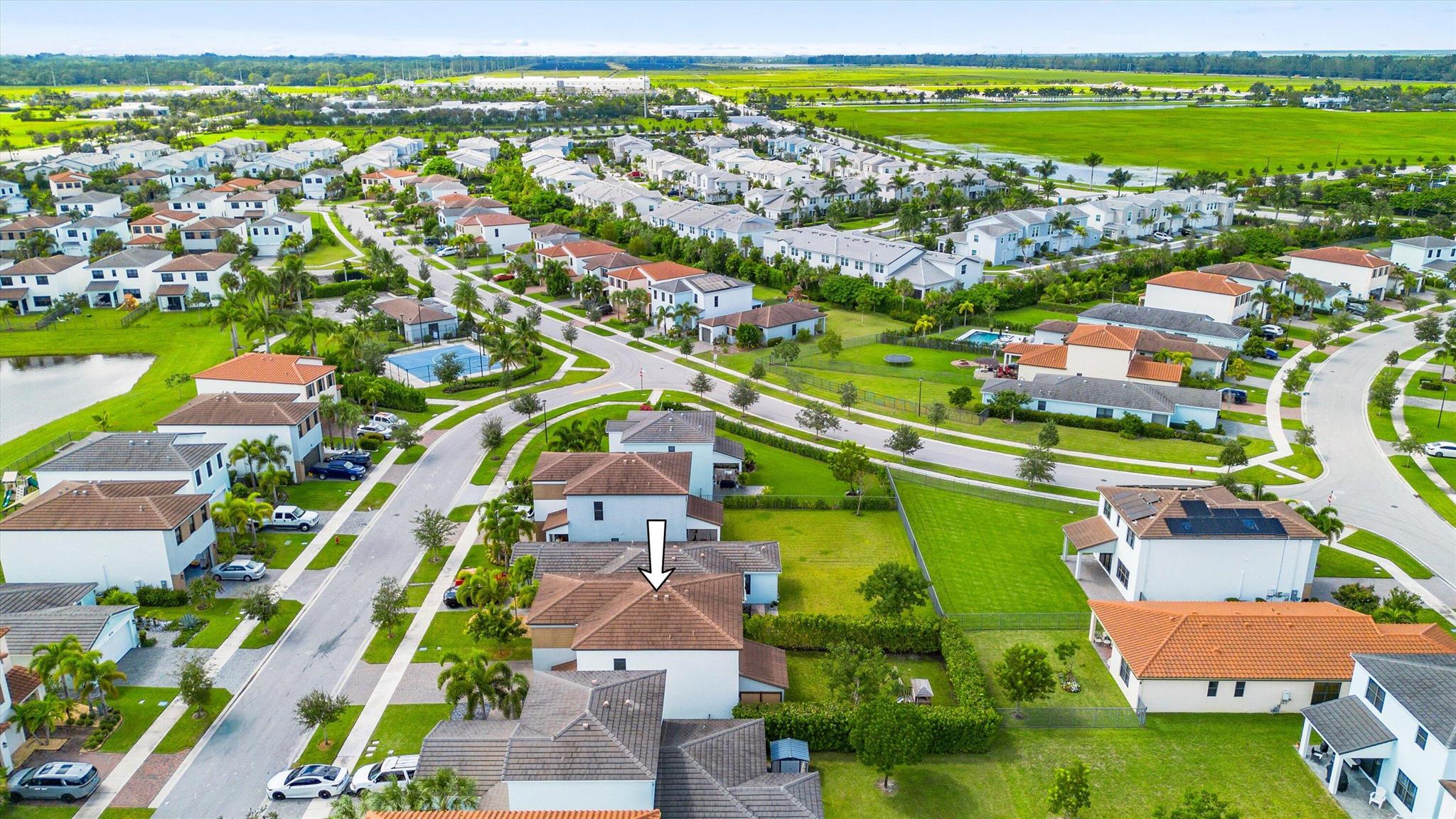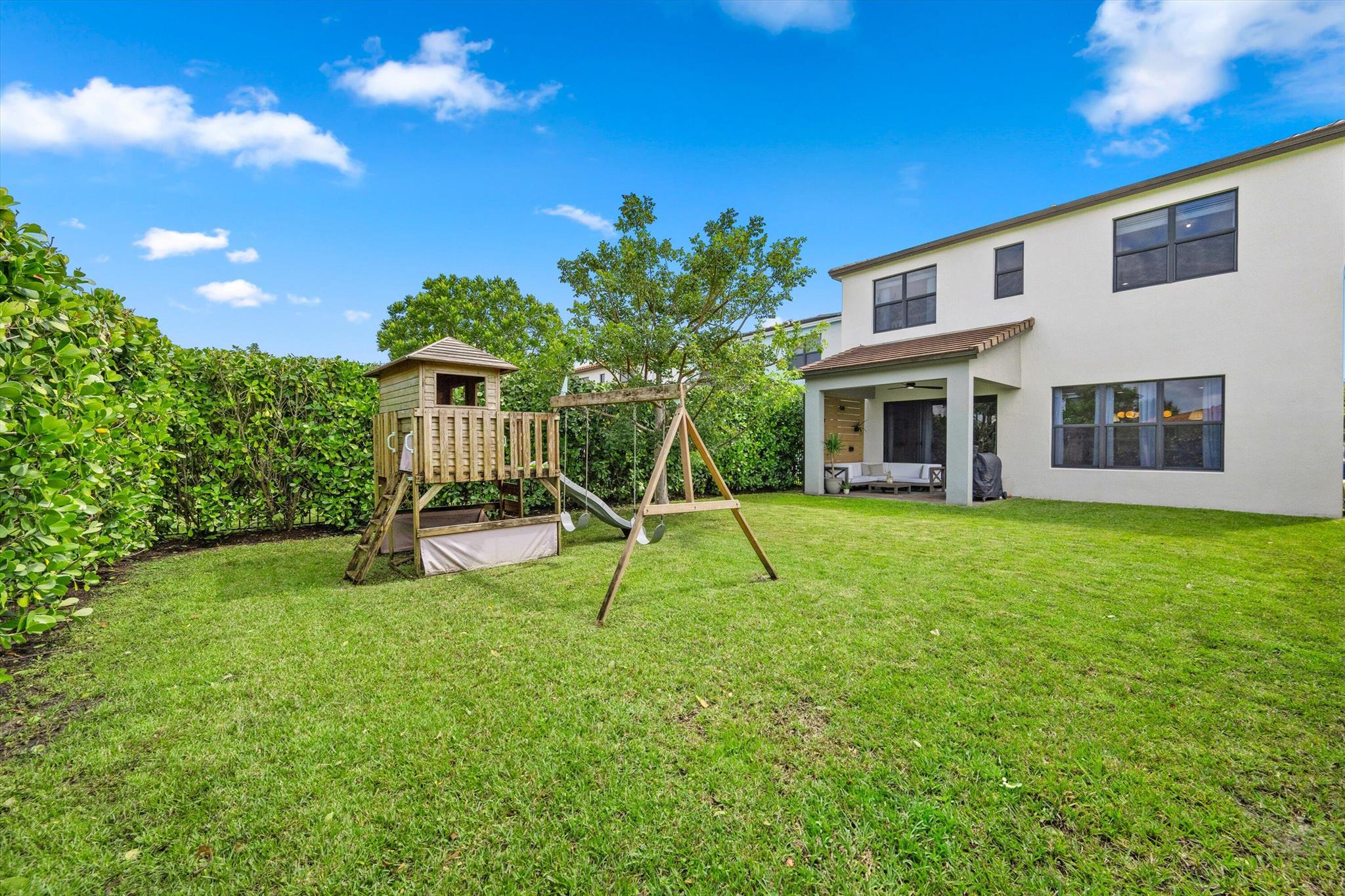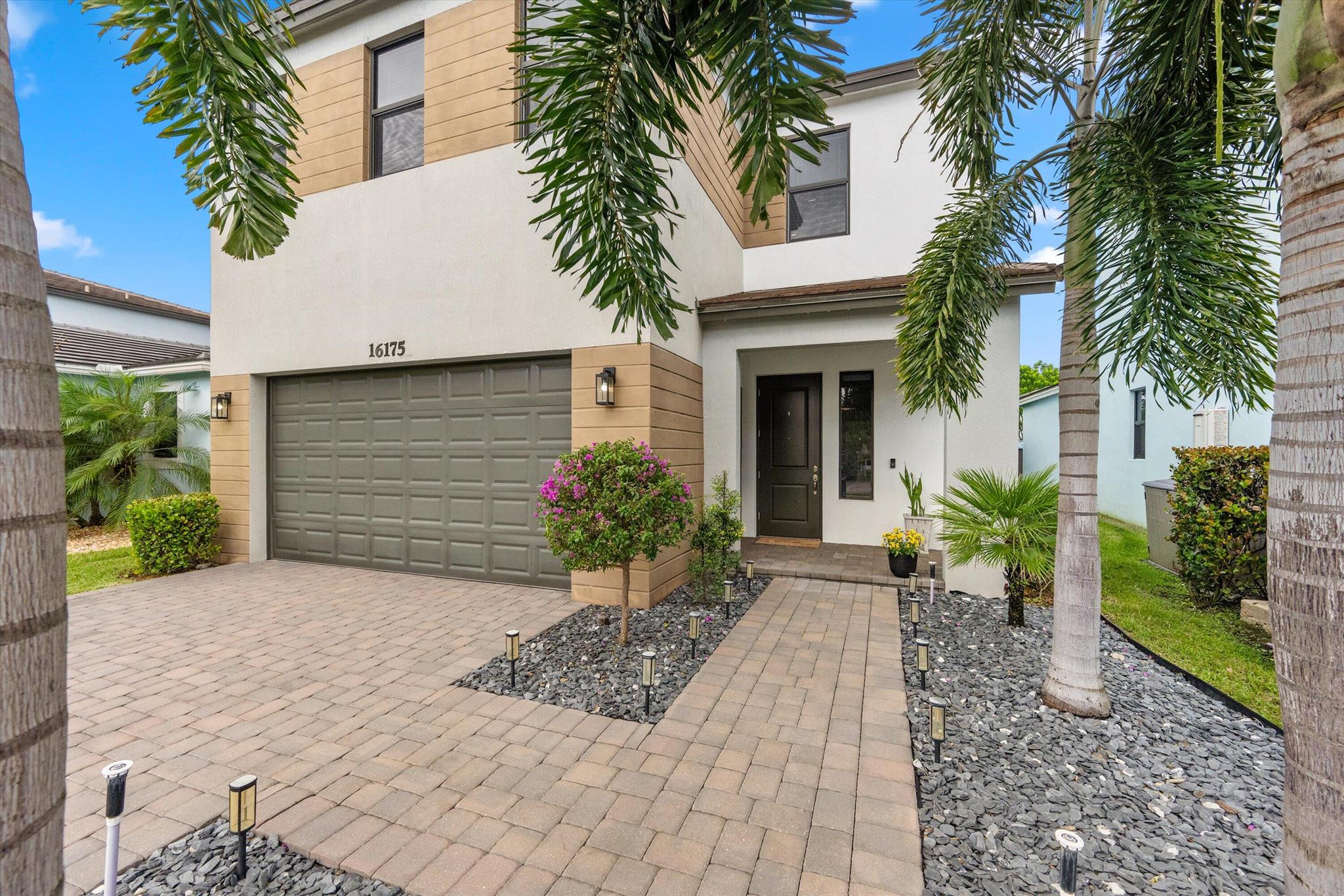 Welcome to this stunning two-story home located in the sought-after community of Sky Cove in Westlake, FL. This residence offers 3 spacious bedrooms, 2.5 bathrooms, a 2-car garage, and full impact windows throughout. From the moment you arrive, you'll be captivated by the breathtaking landscaping, oversized driveway, and massive yard, offering both curb appeal and functionality