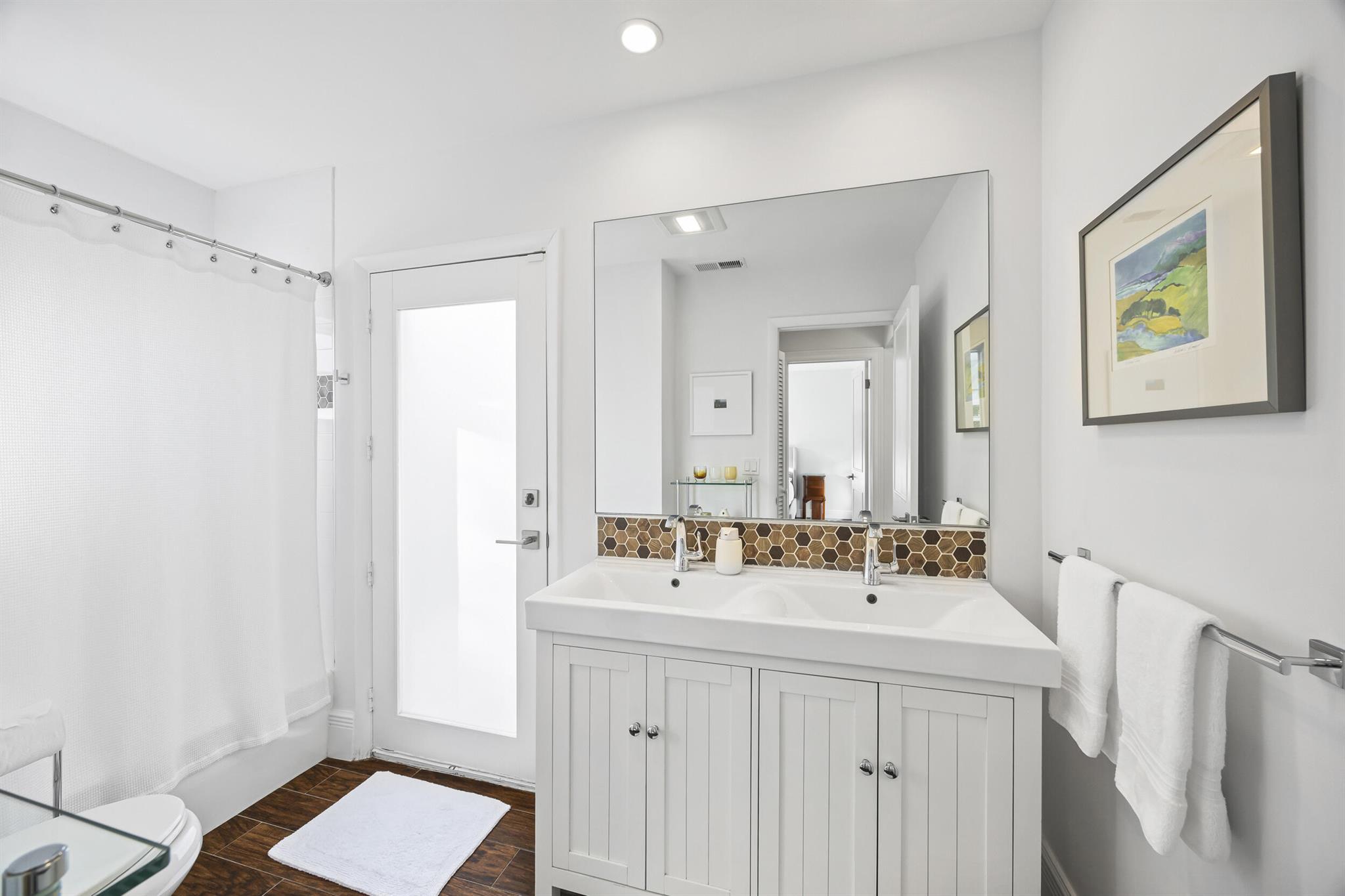 Charming and well-located CBS home in popular Tequesta Country Club. This updated 3-bedroom home is situated on a premier corner lot in a quiet, secluded part of the community. 40 Pinetree feels light, bright, and inviting. Recent improvements include an open kitchen, modernized bathrooms, wood-look tile flooring, and wood floors in bedrooms. Enormous, fenced-in back yard includes a firepit, travertine patio, and outdoor shower. Most windows are hurricane impact glass. Incredibly efficient, split floor plan makes this home feel bigger than the square footage. Useful office/den space and large indoor laundry room add value. Tequesta CC has a private boat ramp and day dock for residents. Golf cart-friendly community with direct access both Turtle Creek Club and Tequesta Country Club.