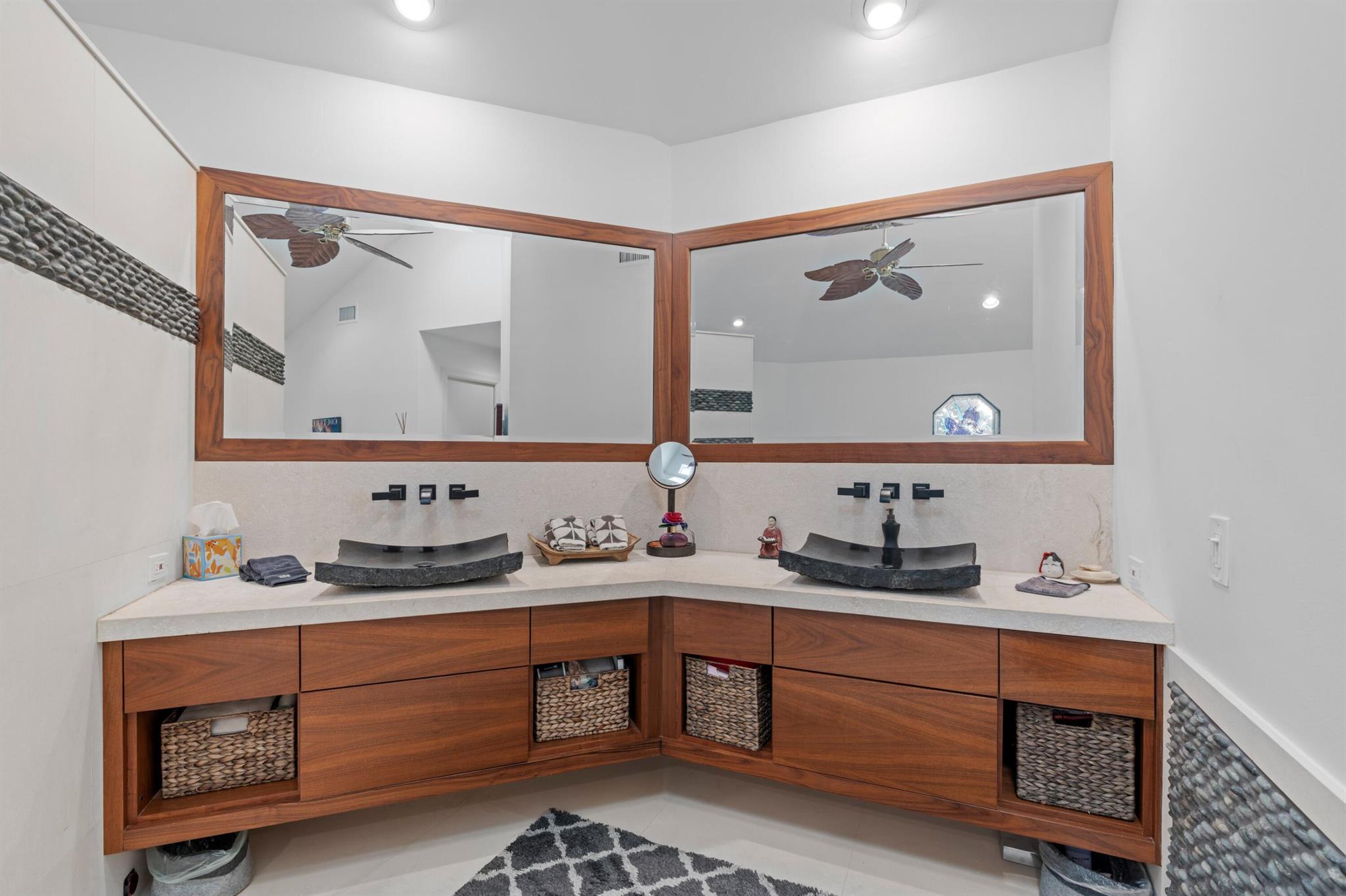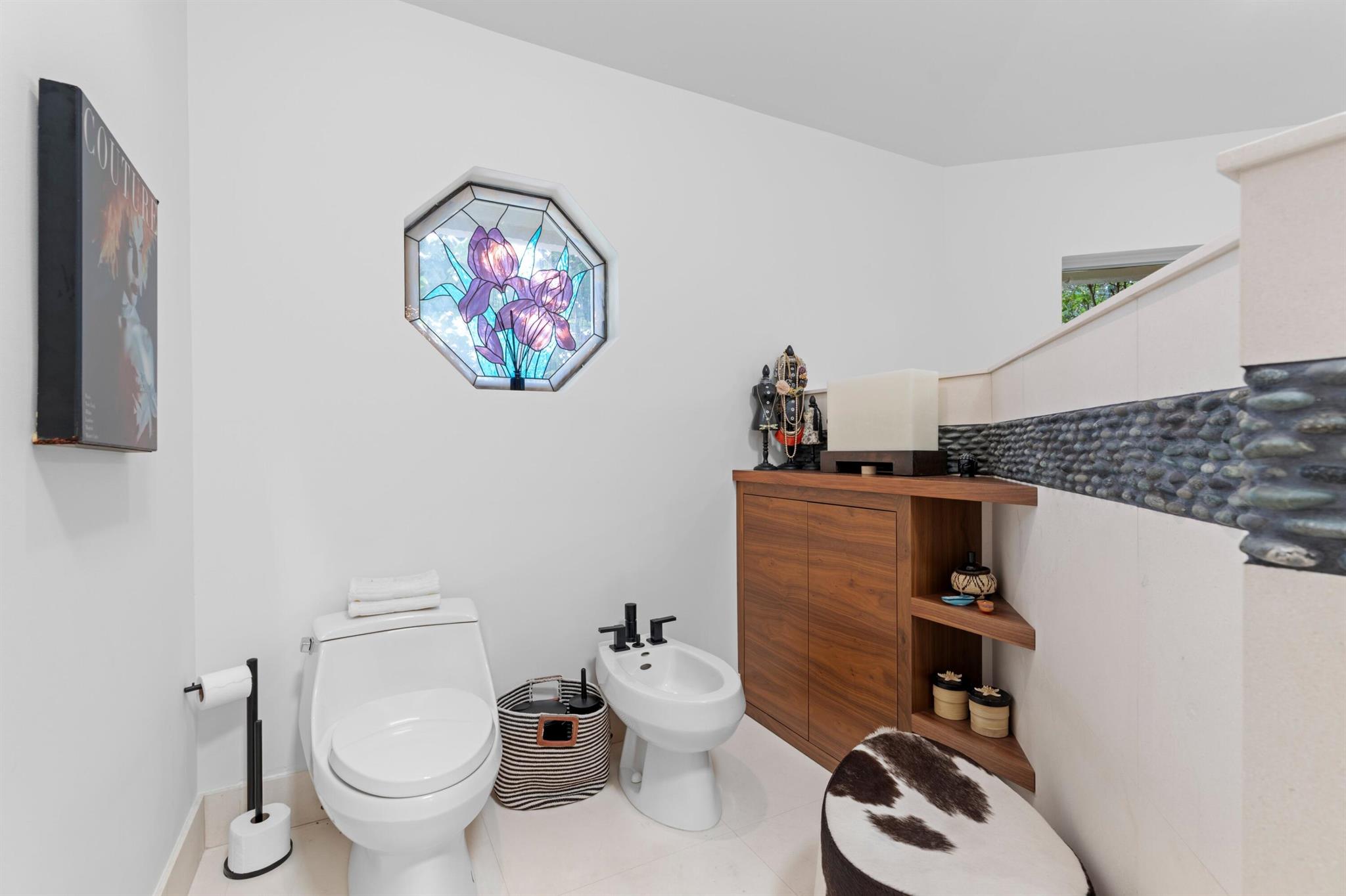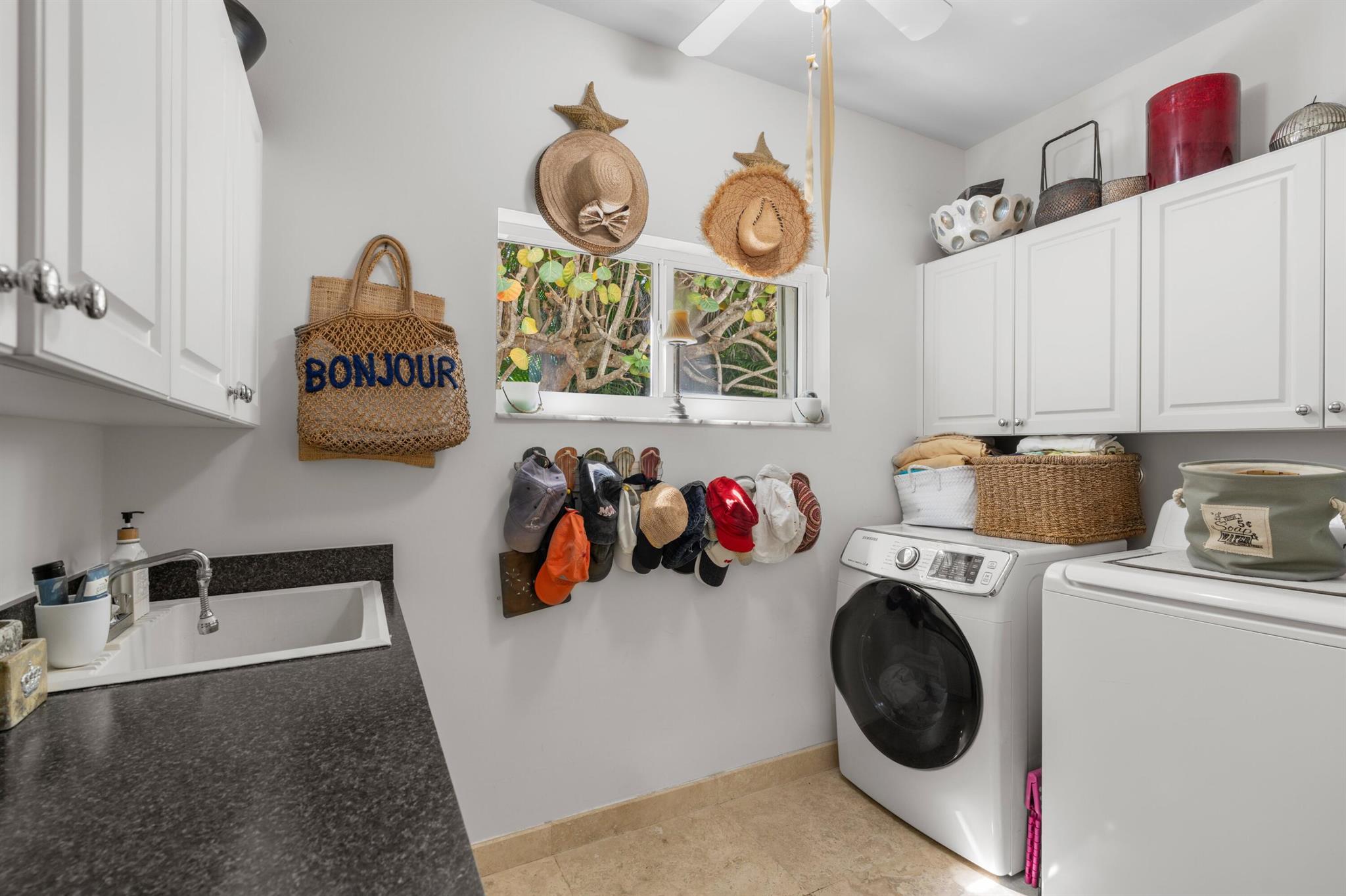 Exuding coastal sophistication, this lushly landscaped four-bedroom estate in prestigious Ocean Ridge combines modern elegance with timeless design. Dramatic vaulted ceilings, polished Saturnia floors, and a striking stone-mantel fireplace highlight the open living spaces, while walls of glass invite natural light and garden views. The expansive yard, surrounded by tropical landscaping with recent upgrades, creates a private oasis. Just three blocks from the beach, this storm-secure home features hurricane-impact windows and a generator, epitomizing refined coastal living.