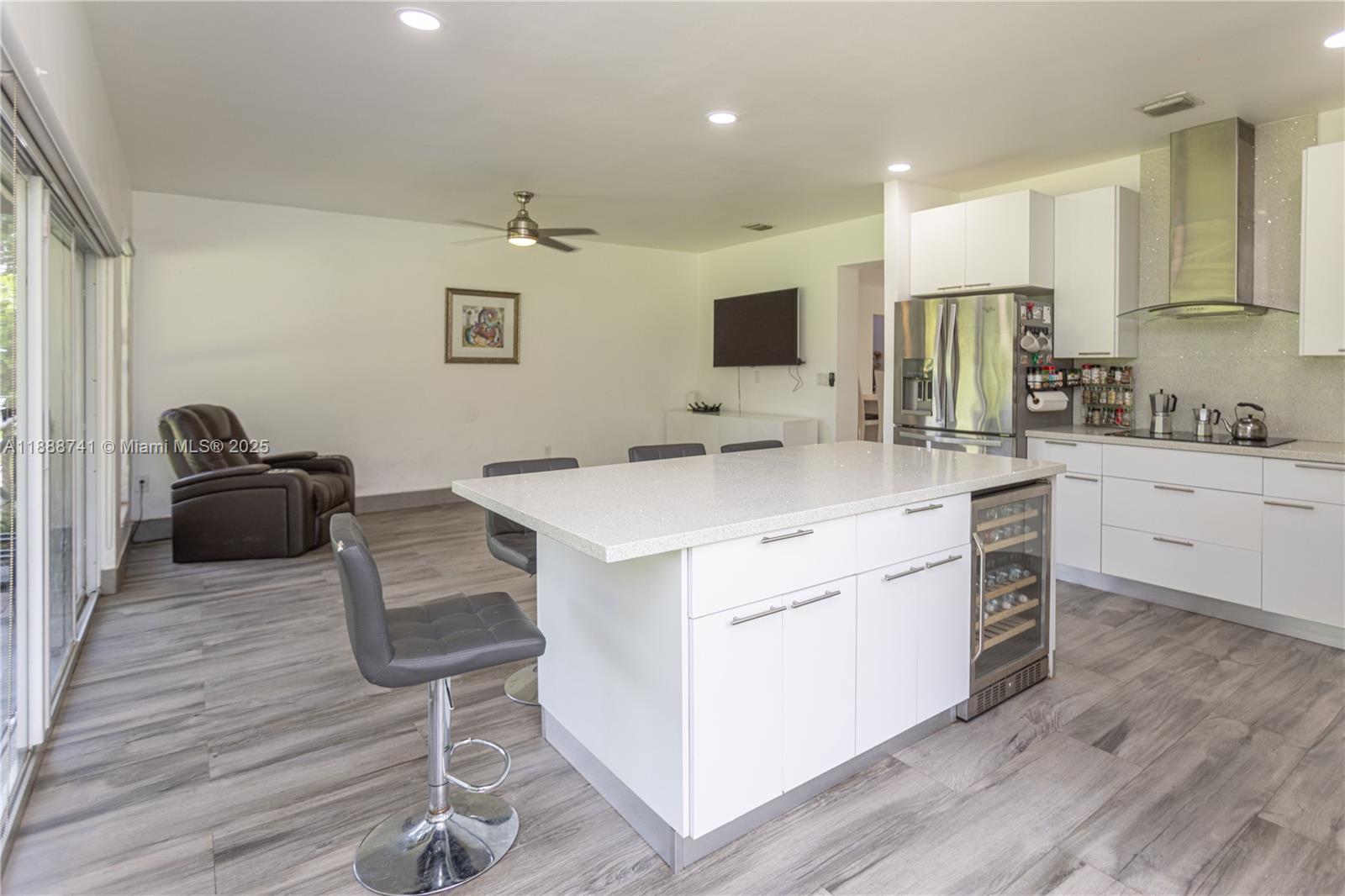 Beautifully renovated home sitting on a oversize lot in the heart of small Town Miami Springs in the premium area of the golf course. Discover a chef's kitchen with stainless steel appliances & white cabinetry and leading to a backyard featuring custom patio with fence and alley access perfect for RV/Boat, an in-ground pool, mango tree and is the perfect oasis for outdoor entertainment. Floors are ceramic, porcelain tile and wood. Other features include: front porch, hurricane impact windows and doors, newer roof in 2023, laundry room, exercise room, california closets, high ceilings. Located near aquatic center, playhouse, tennis court. Easy Access to highways, 30 mins to Beach, 10 mins to Miami Airport. This property is immaculate, well-cared for, and ready for new owners. Welcome home!